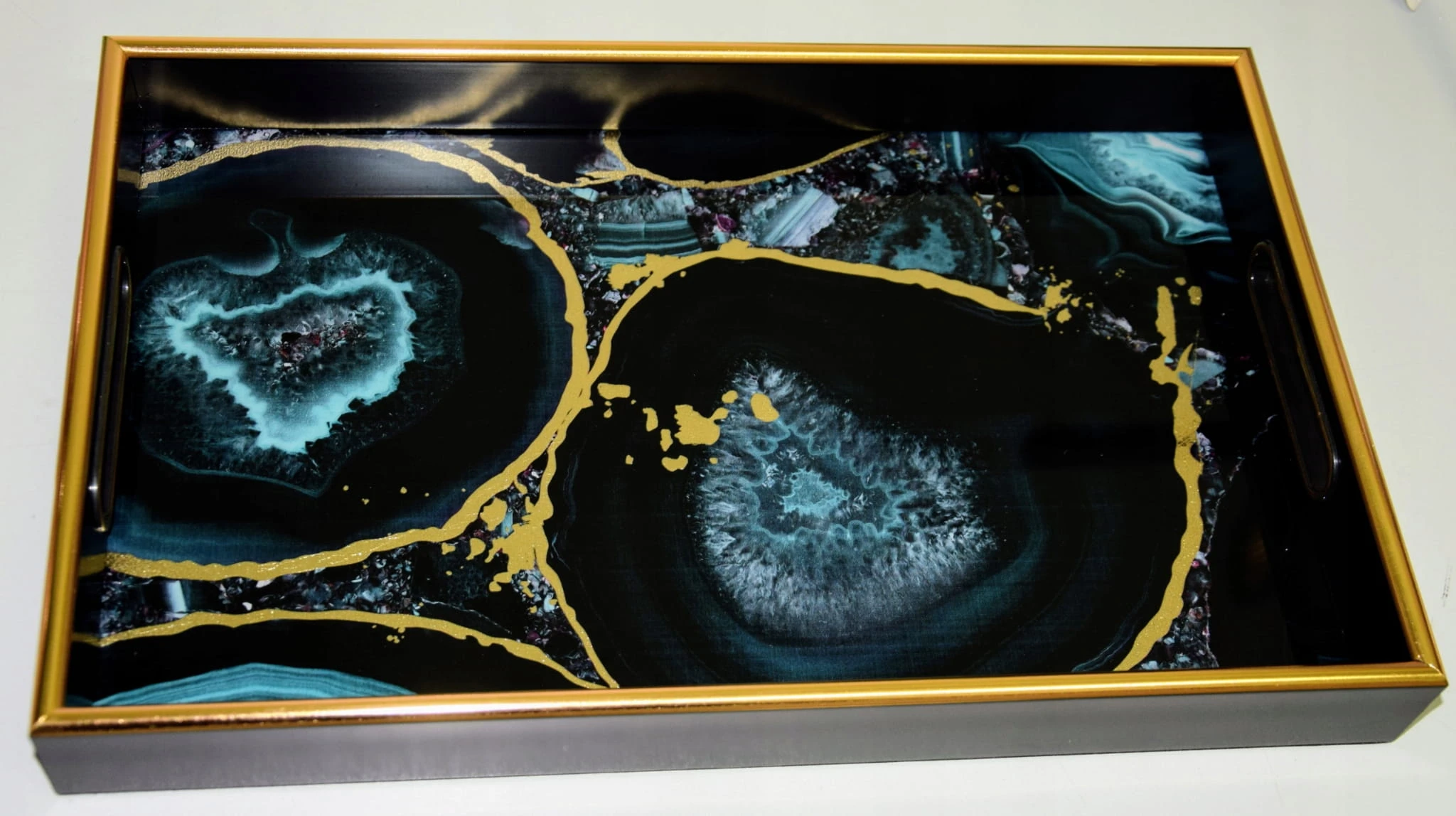 ELEGANCKA SZKLANA TACA IMITACJA KAMIENIA GRANATOWA