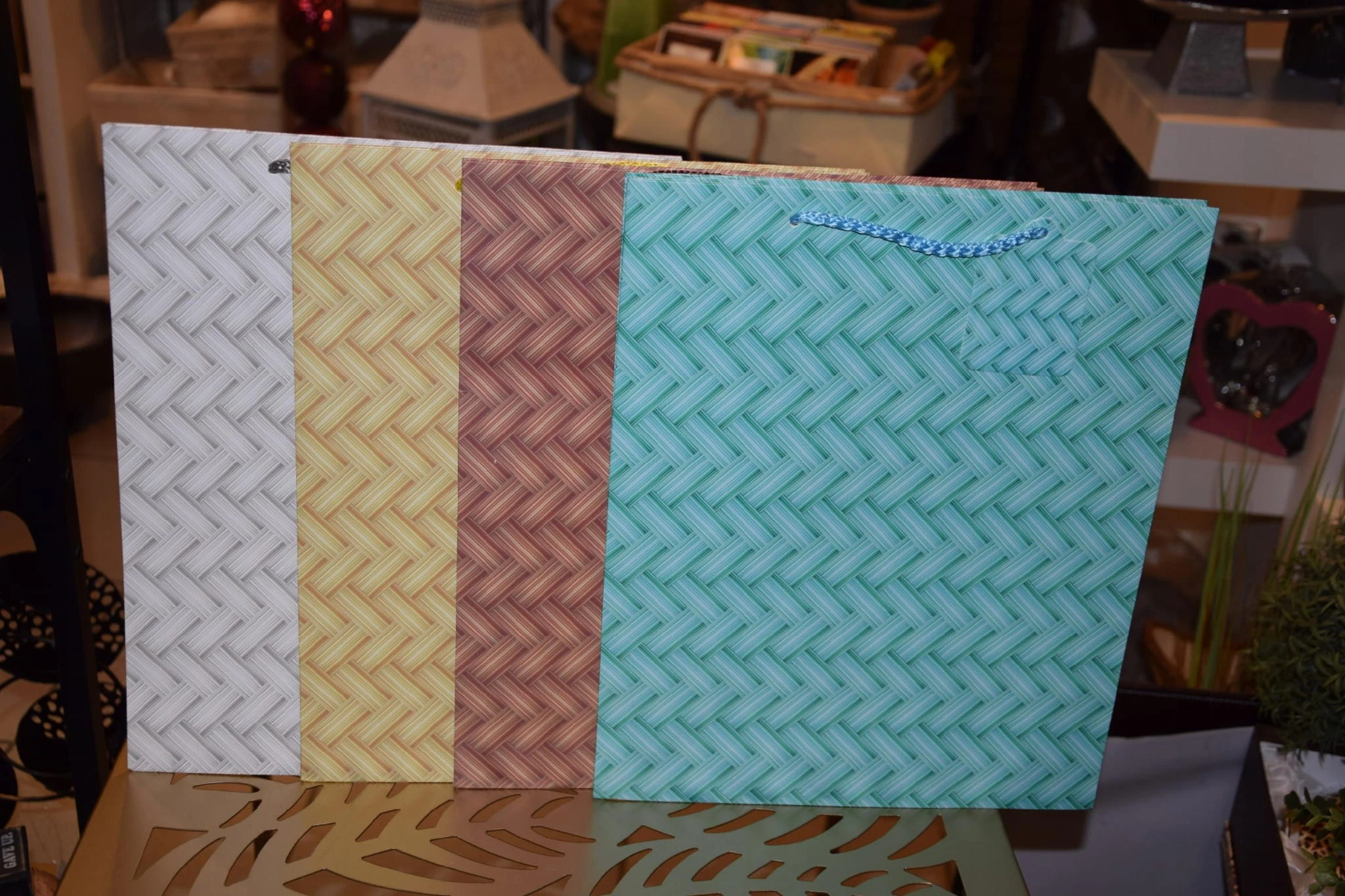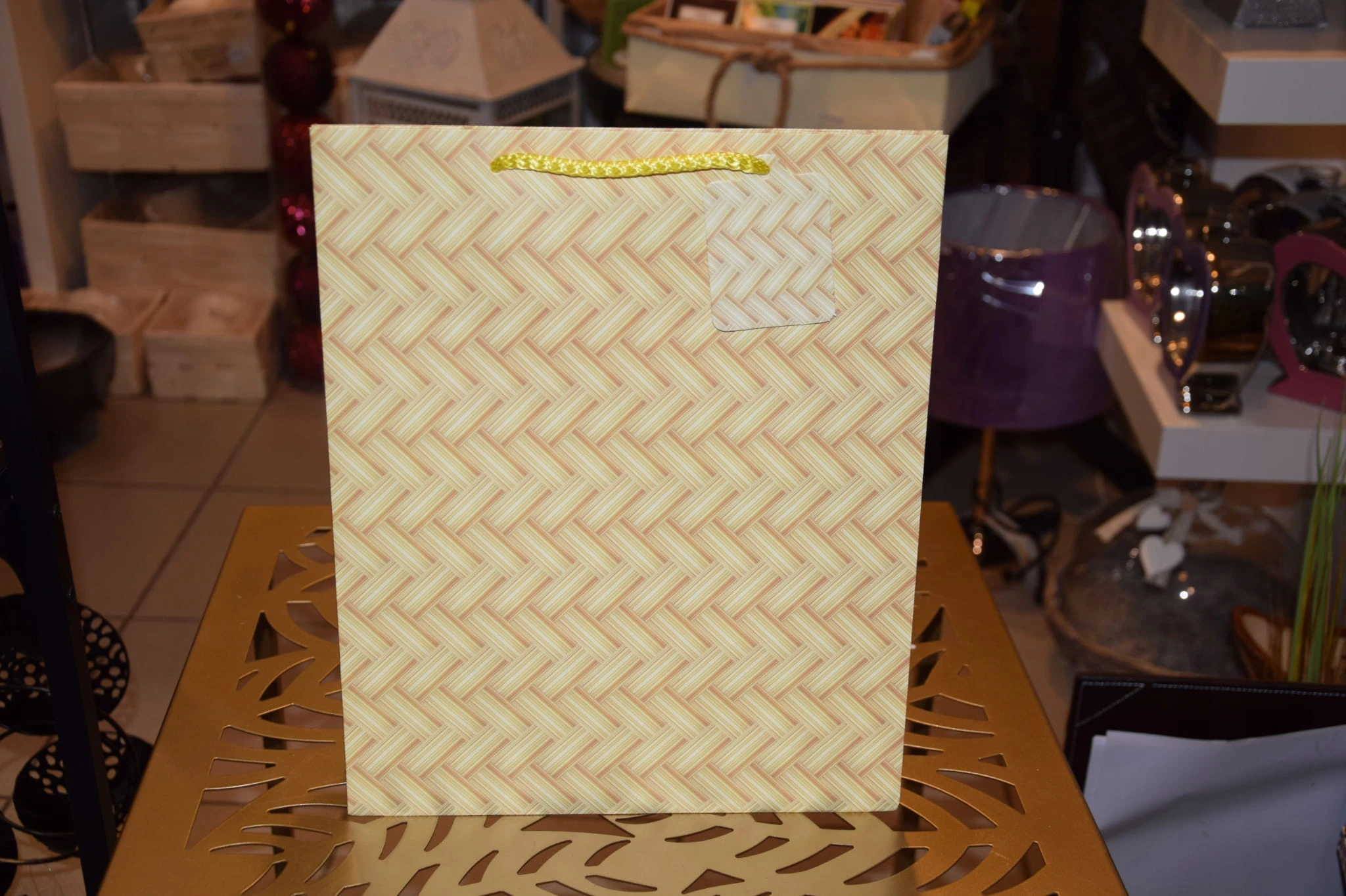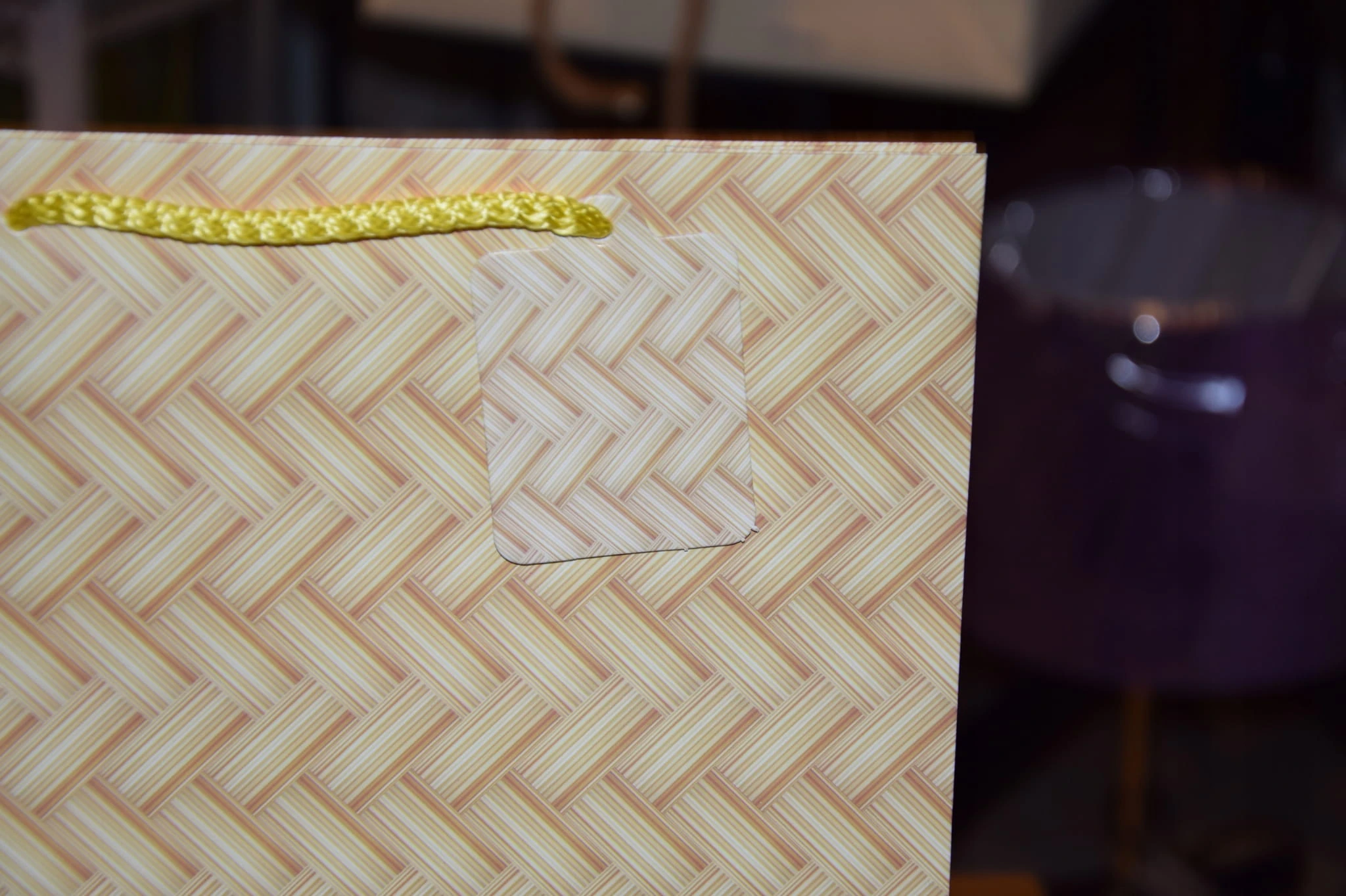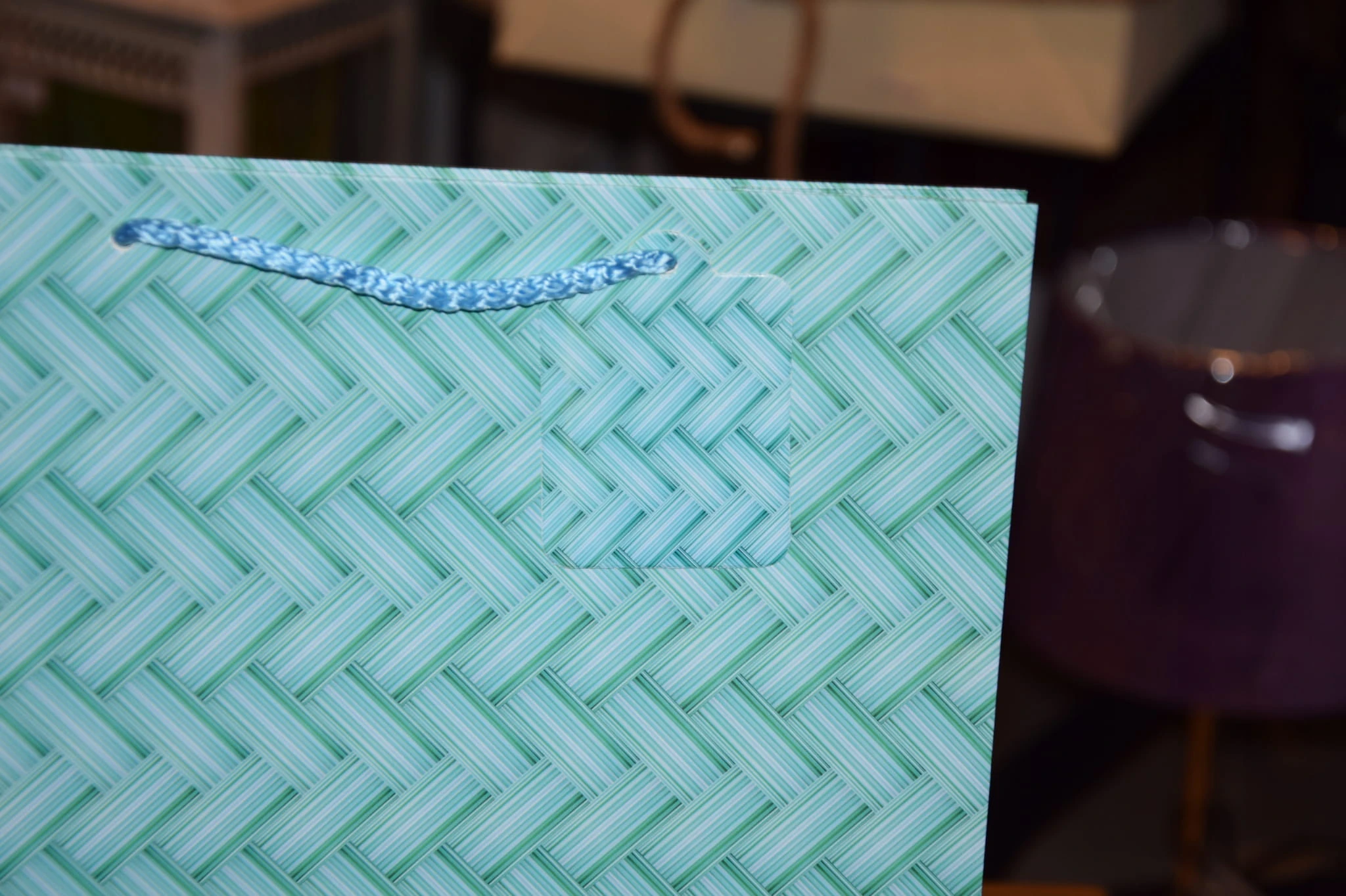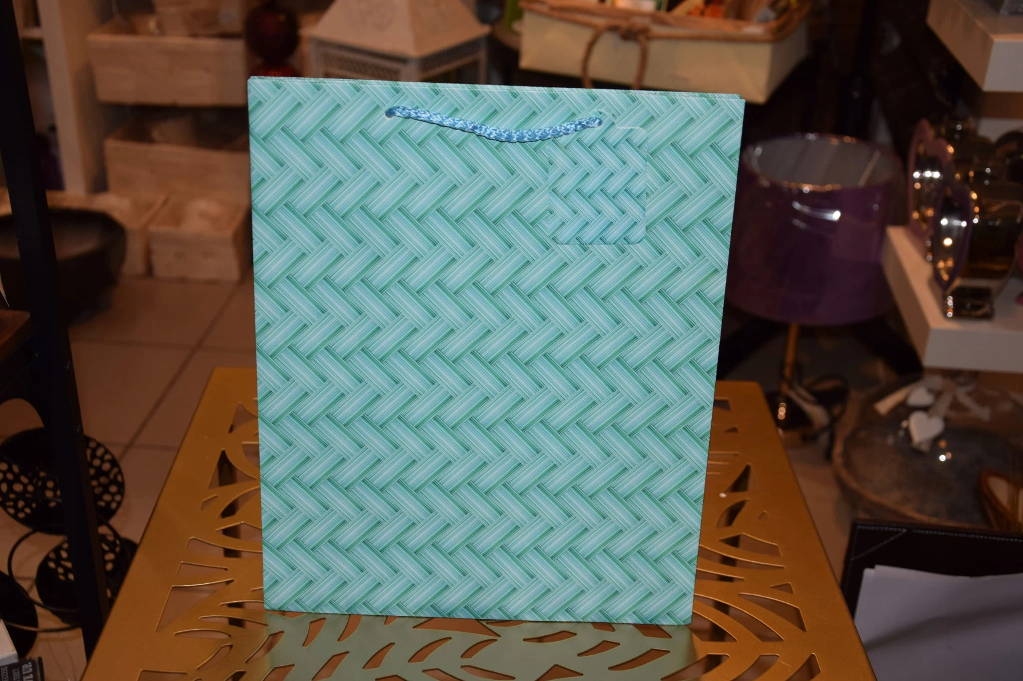 Elegancka torebka prezentowa zdobiona wyszukanymi, stonowanymi, regularnymi wzorami kolorystycznymi. Wykonana z wysokiej jakości, grubego papieru. Uchwyty wykonane są z dopasowanego kolorystycznie sznurka.
