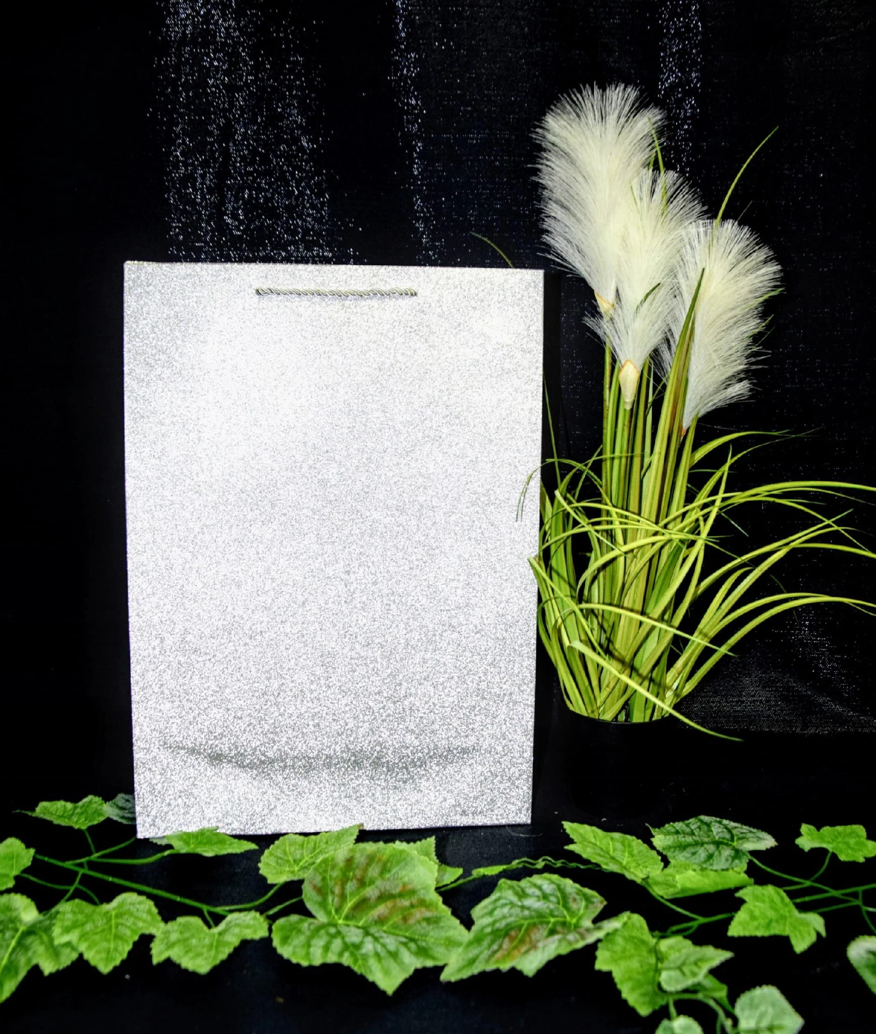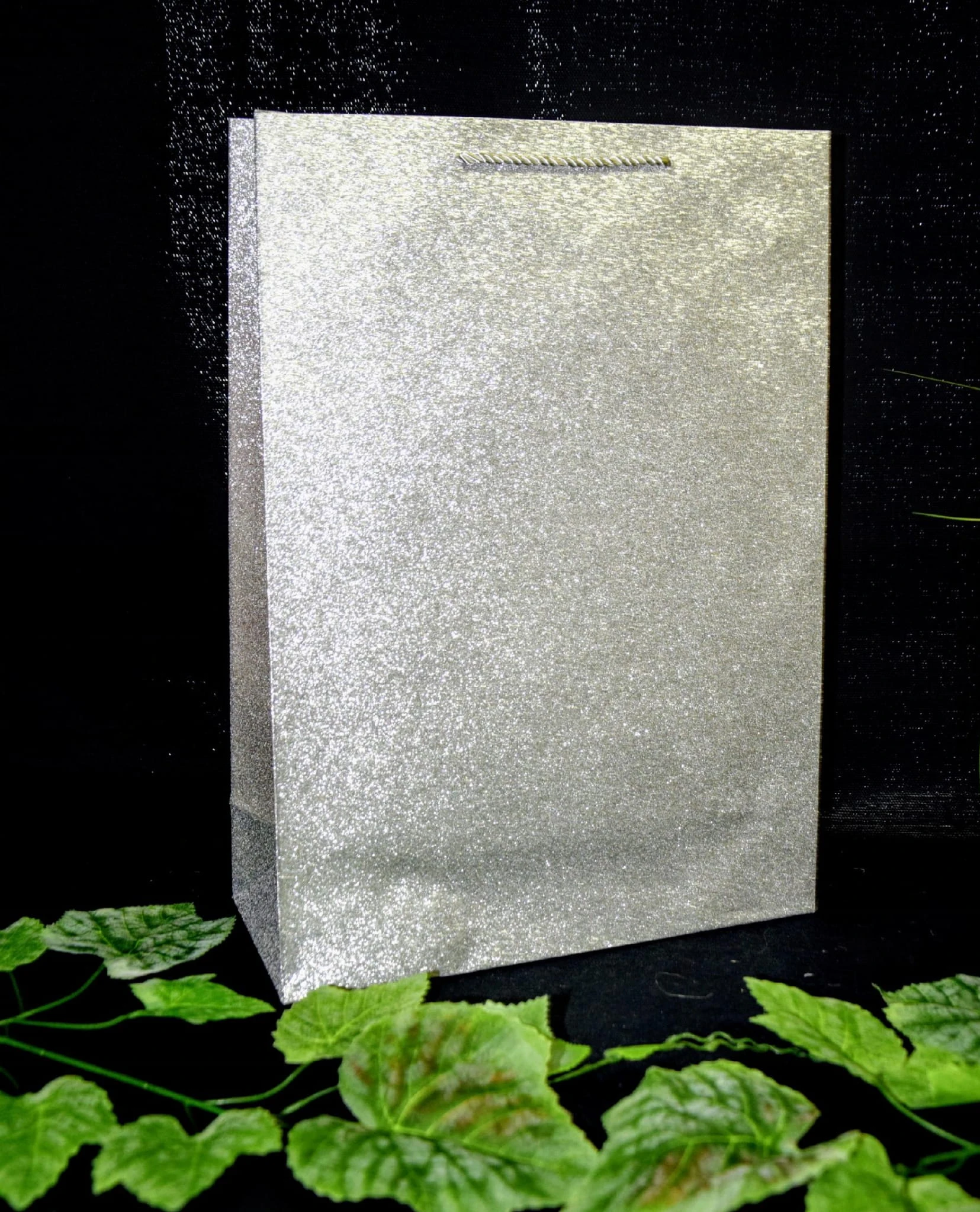 Elegancka torebka prezentowa z motywem piór. Wykonana z wysokiej jakości, grubego papieru. Uchwyty wykonane są z dopasowanego kolorystycznie sznurka.