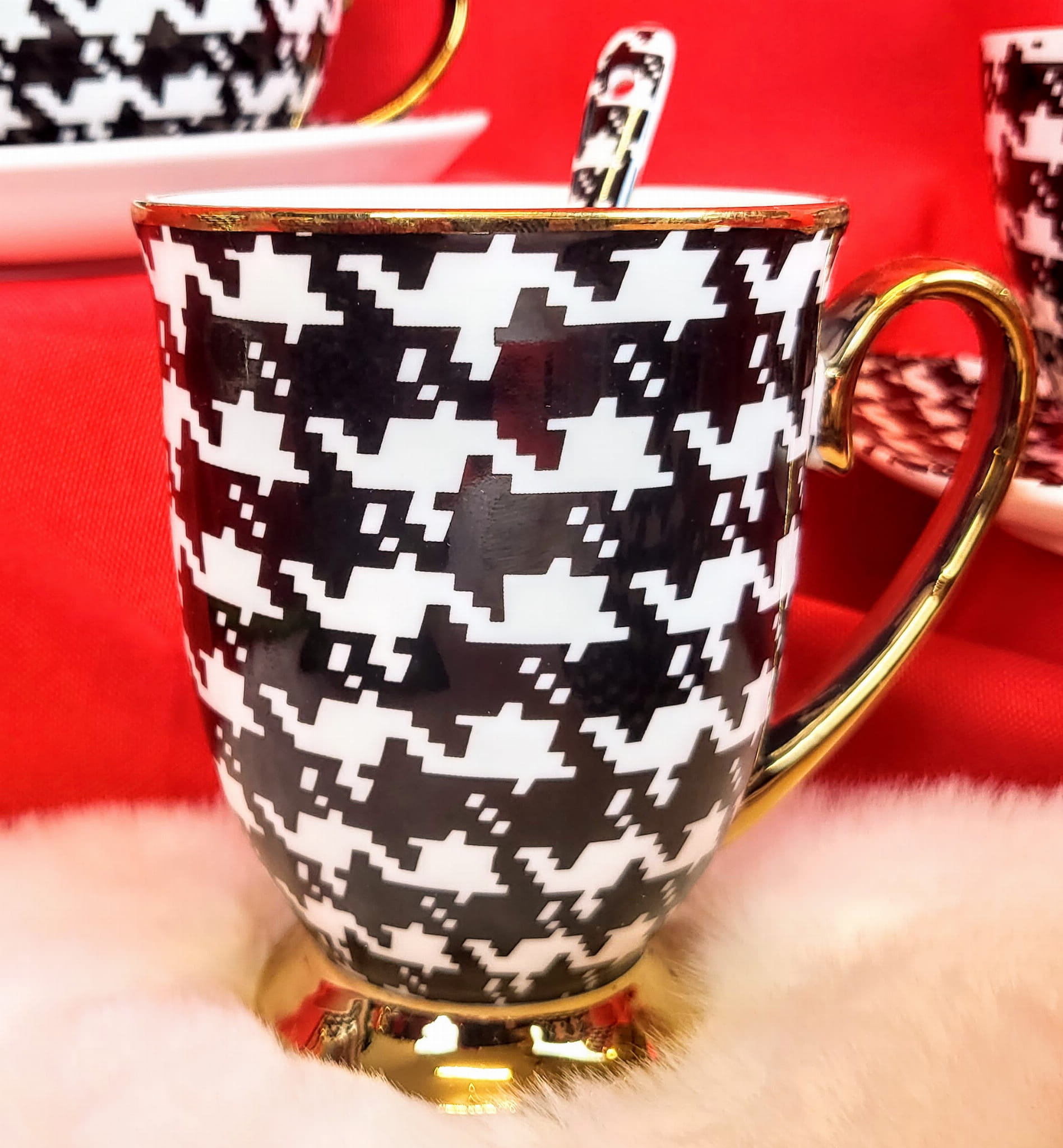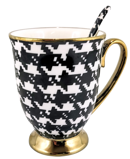 Ceramiczny kubek zdobiony wzorem pepitki.