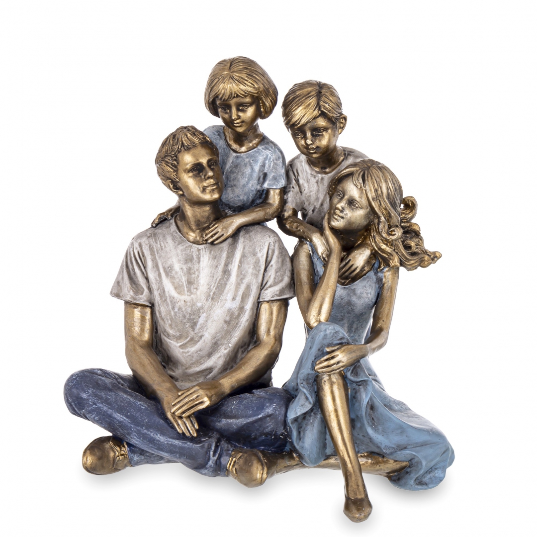 Wysokiej jakości figurka przedstawiająca rodzinę - dwoje rodziców i dwoje dzieci.Niebanalna dekoracja do domu, którą możesz wykorzystać do całorocznej aranżacji.Polecamy na prezent lub dodatek do prezentu z okazji Ślubu i rocznicy Ślubu, Dnia Mamy, Dnia Taty, na Chrzest a także jako podarunek na każdą inną okazję dla bliskiej osoby.