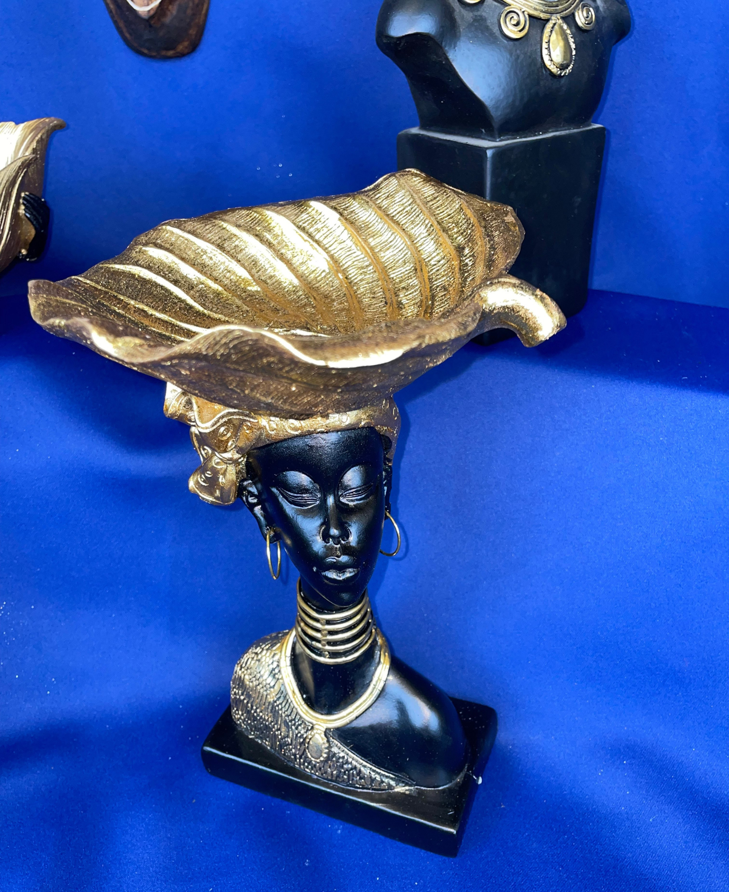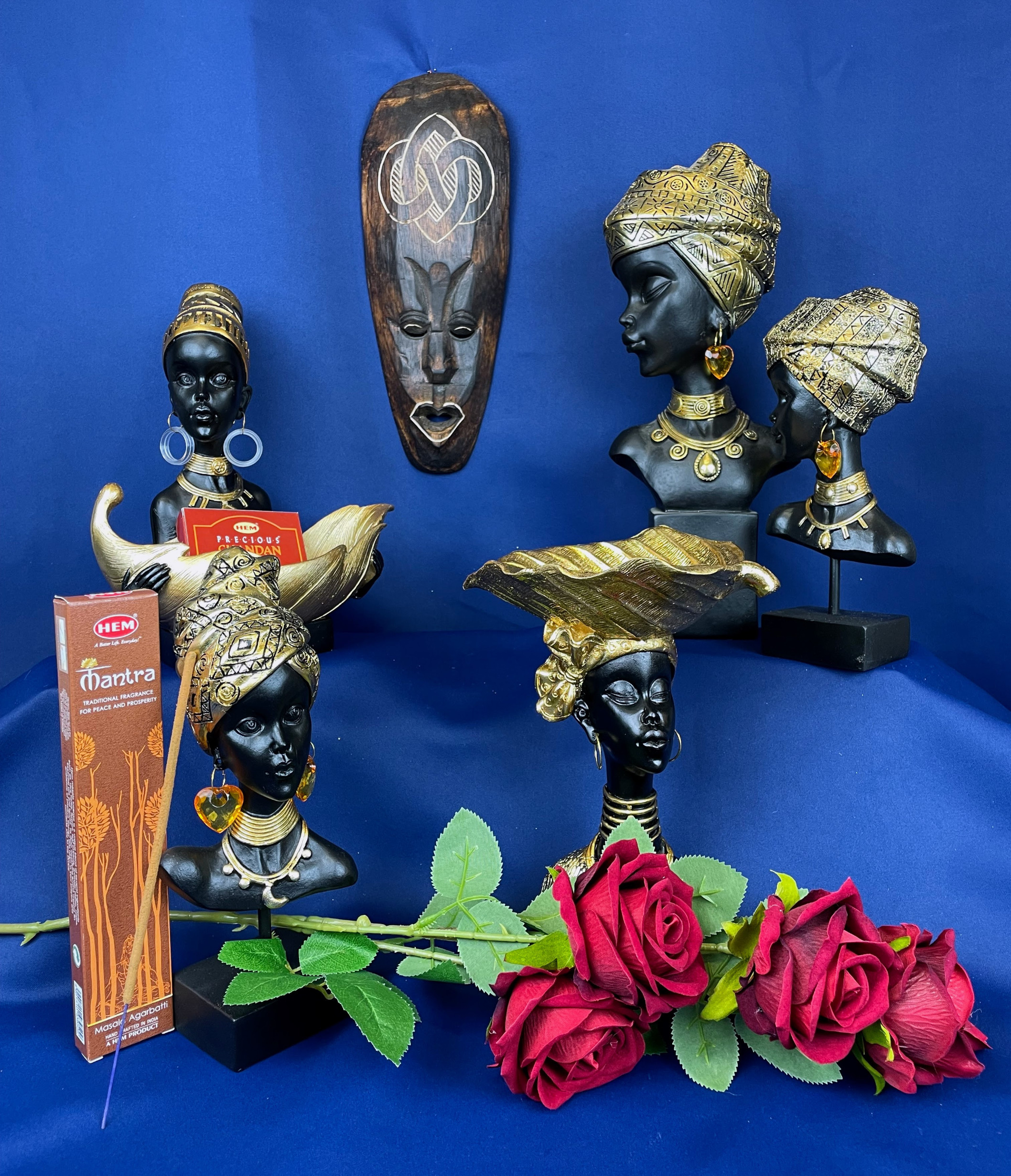 Kolekcja eleganckich figurek przedstawiających afrykańskie piękności umieszczone na podstawie. Ich żywa, a jednocześnie elegancka kolorystyka pozwala nadać wnętrzom niepowtarzalnego stylu i charakteru.