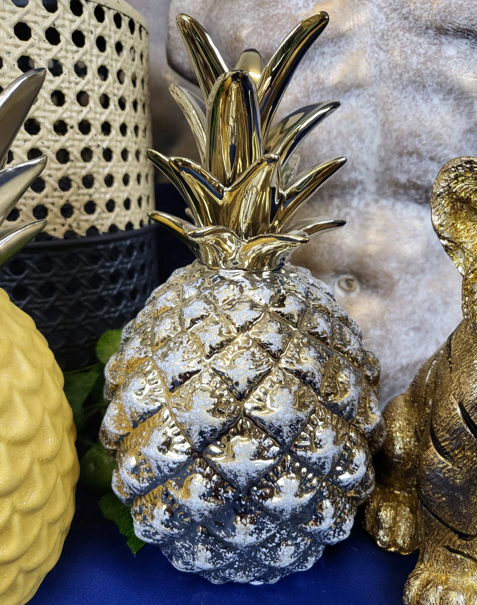 FIGURKA ANANAS DEKORACYJNY ZŁOTY PRZECIERANY 19,5C