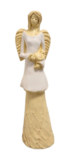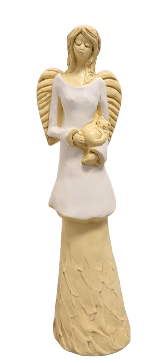 FIGURKA ANIOŁ STOJĄCY Z KOTEM BIAŁY 37CM HAND MADE
