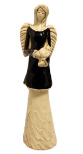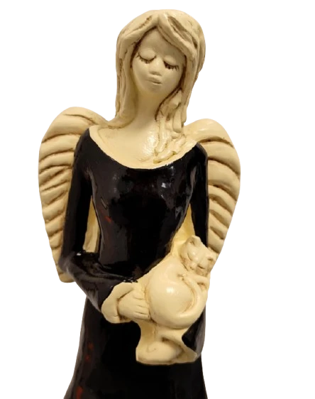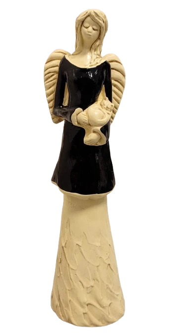FIGURKA ANIOŁ STOJĄCY Z KOTEM CZARNY 37CM HAND MADE