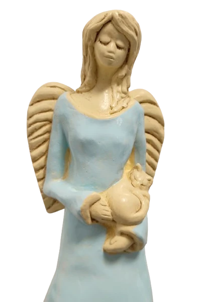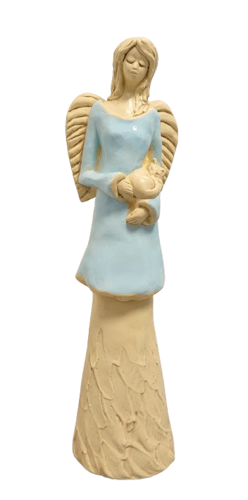 FIGURKA ANIOŁ STOJĄCY Z KOTEM NIEBIESKI 37CM HAND MADE