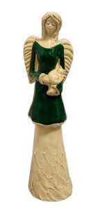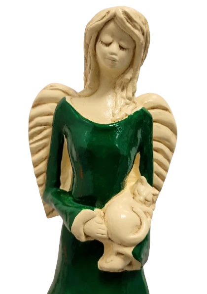 FIGURKA ANIOŁ STOJĄCY Z KOTEM ZIELONY 37CM HAND MADE