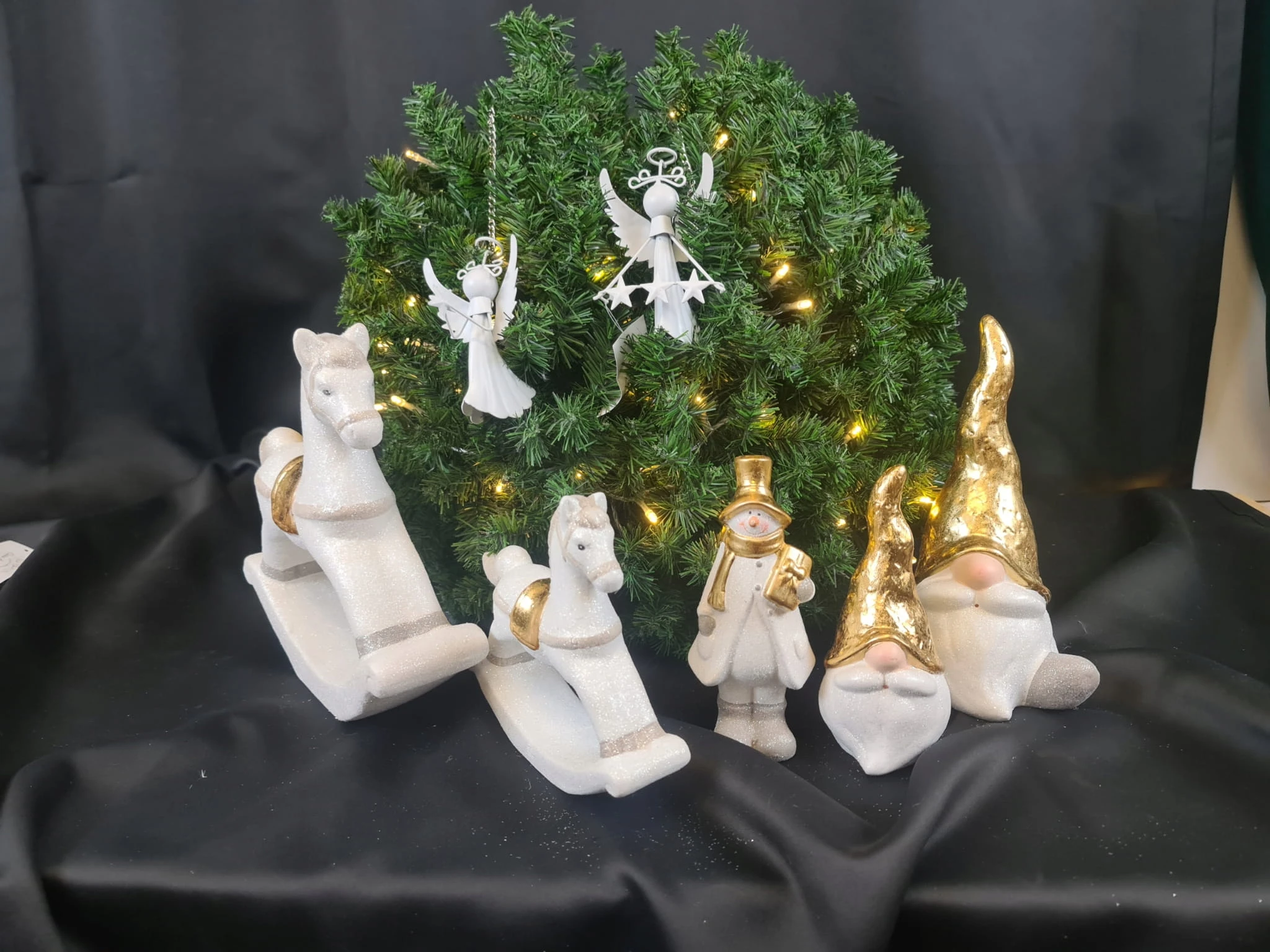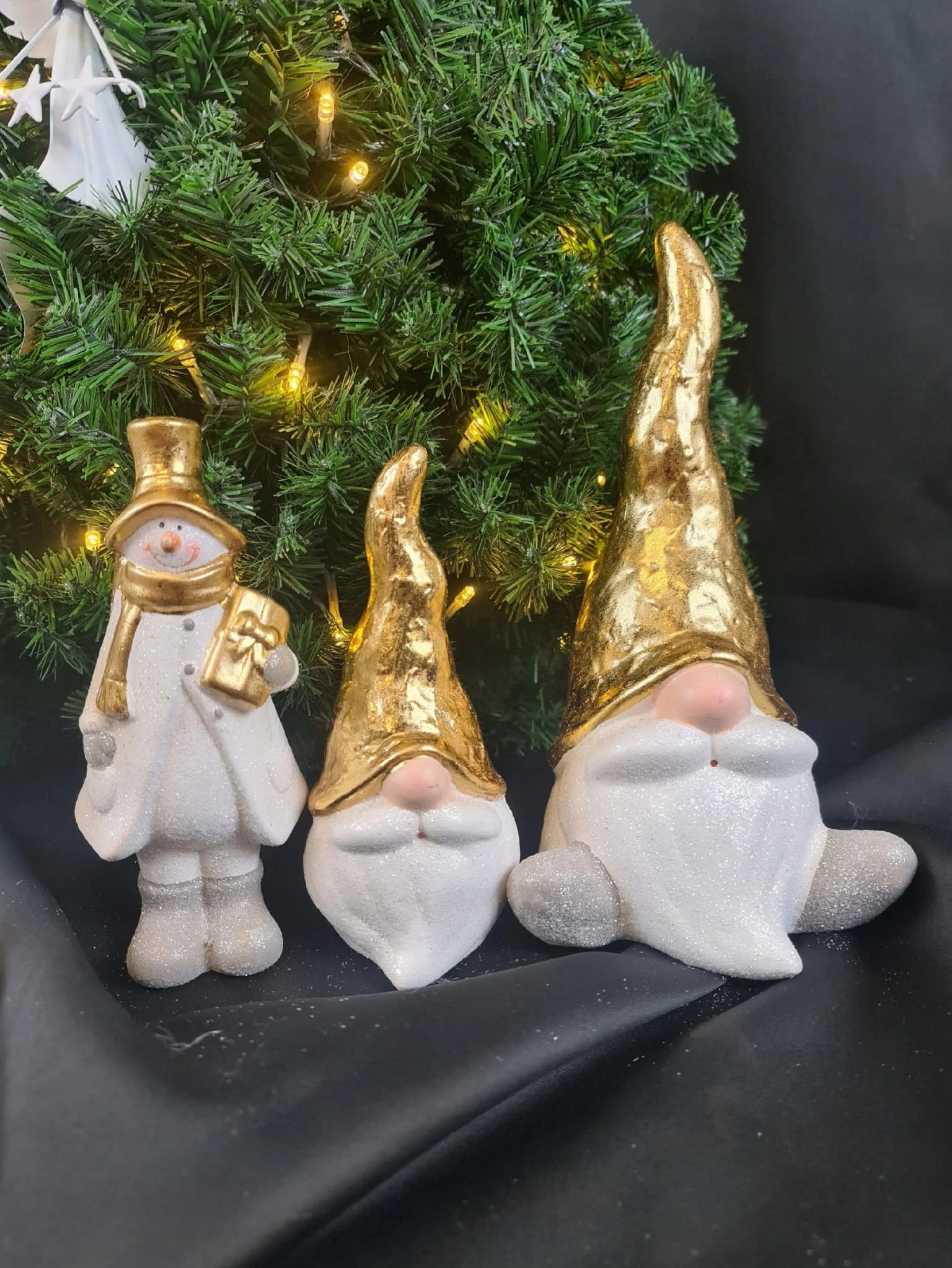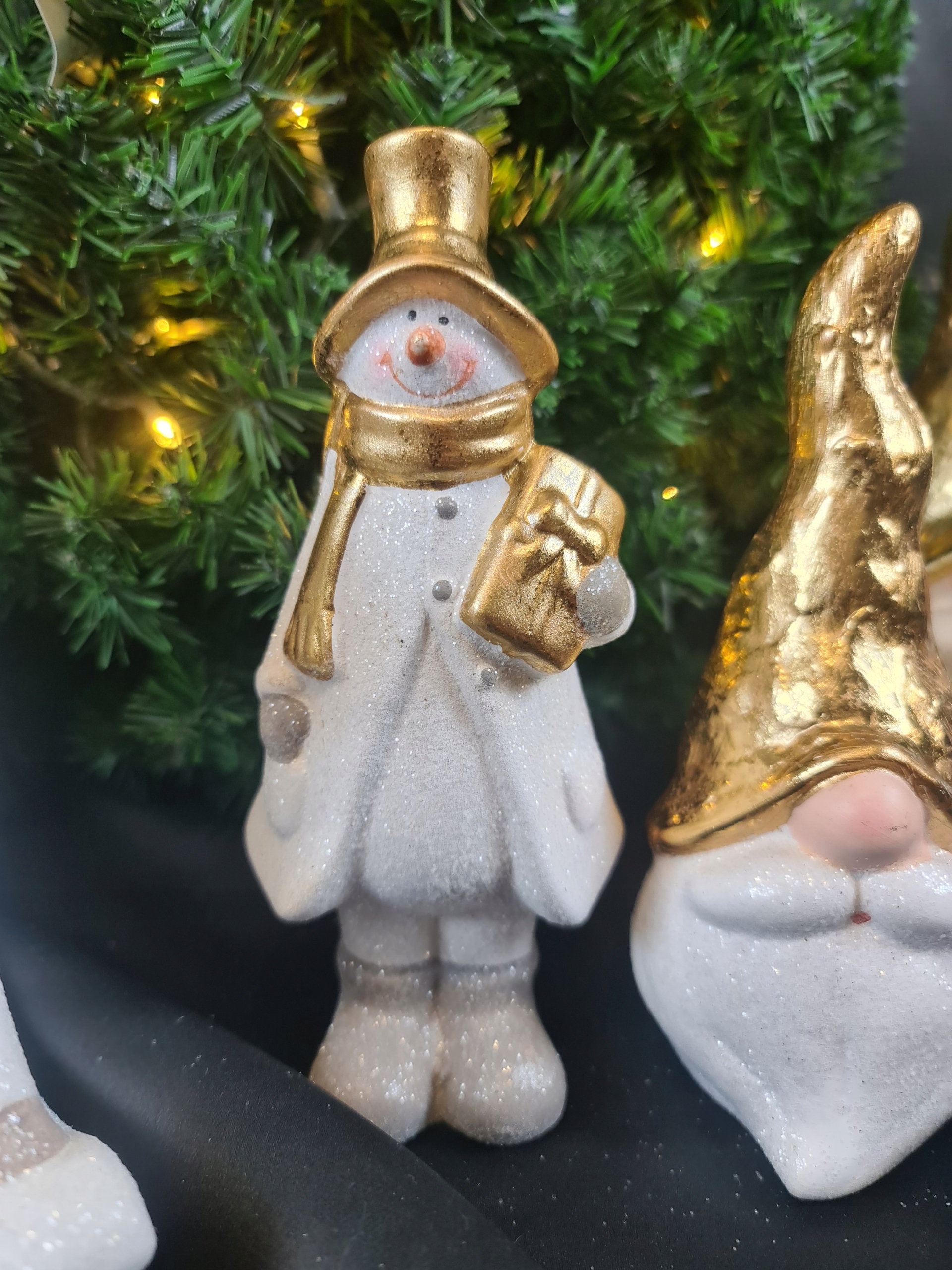 FIGURKA BAŁWANEK CERAMICZNY ZE ZŁOTYM KAPELUSZEM