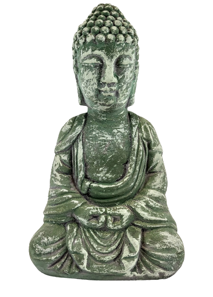 FIGURKA BUDDA BETONOWA ZIELONA POSTARZANA