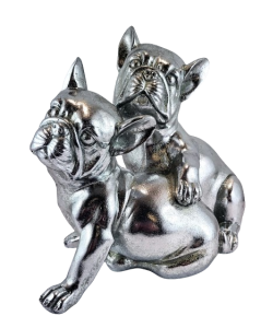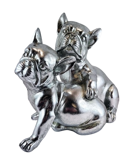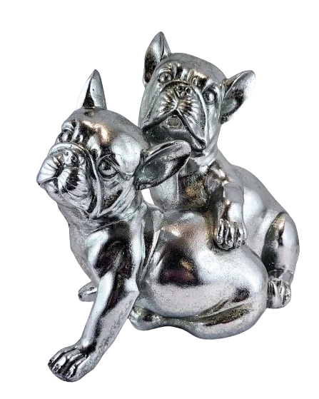 Ta piękna figura dwóch siedzących, przytulonych piesków rasy Buldog Francuski to prawdziwy klejnot dla miłośników psów. Buldogi Francuskie to rasa psów o charakterystycznej budowie ciała, krótkiej sierści i wyrazistym, przyjacielskim wyglądzie. Są to psy bardzo towarzyskie, łagodne i przyjacielskie, które cieszą się popularnością na całym świecie. Ta figurka została wykonana z najwyższej jakości cementu, co gwarantuje jej wytrzymałość i trwałość na lata. Jej gładka struktura i wyjątkowa stylistyka przyci ągają uwagę i dodają elegancji każdemu pomieszczeniu. Figurka została pokryta pięknym srebrnym kolorem, który dodaje jej blasku i uroku. Figurka została wykonana przez renomowaną firmę w Anglii, co stanowi gwarancję jej wysokiej jakości i unikalnego desi gnu. Figurka dwóch przytulonych piesków rasy Buldog Francuski jest idealnym prezentem dla miłośników tej rasy psów, jak również dla osób, które kochają piękne i oryginalne ozdoby. Figurka jest spakowana w białe tekturowe pudełko, na którego zdjęciu znajd uje się figurka znajdująca się w środku. W ten sposób z łatwością można zapakować ją na prezent lub przetransportować w bezpieczny sposób. To wyjątkowa okazja, aby mieć tak piękną figurkę w swojej kolekcji.