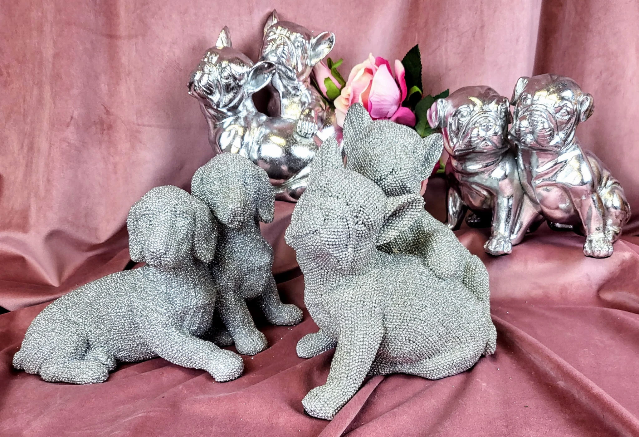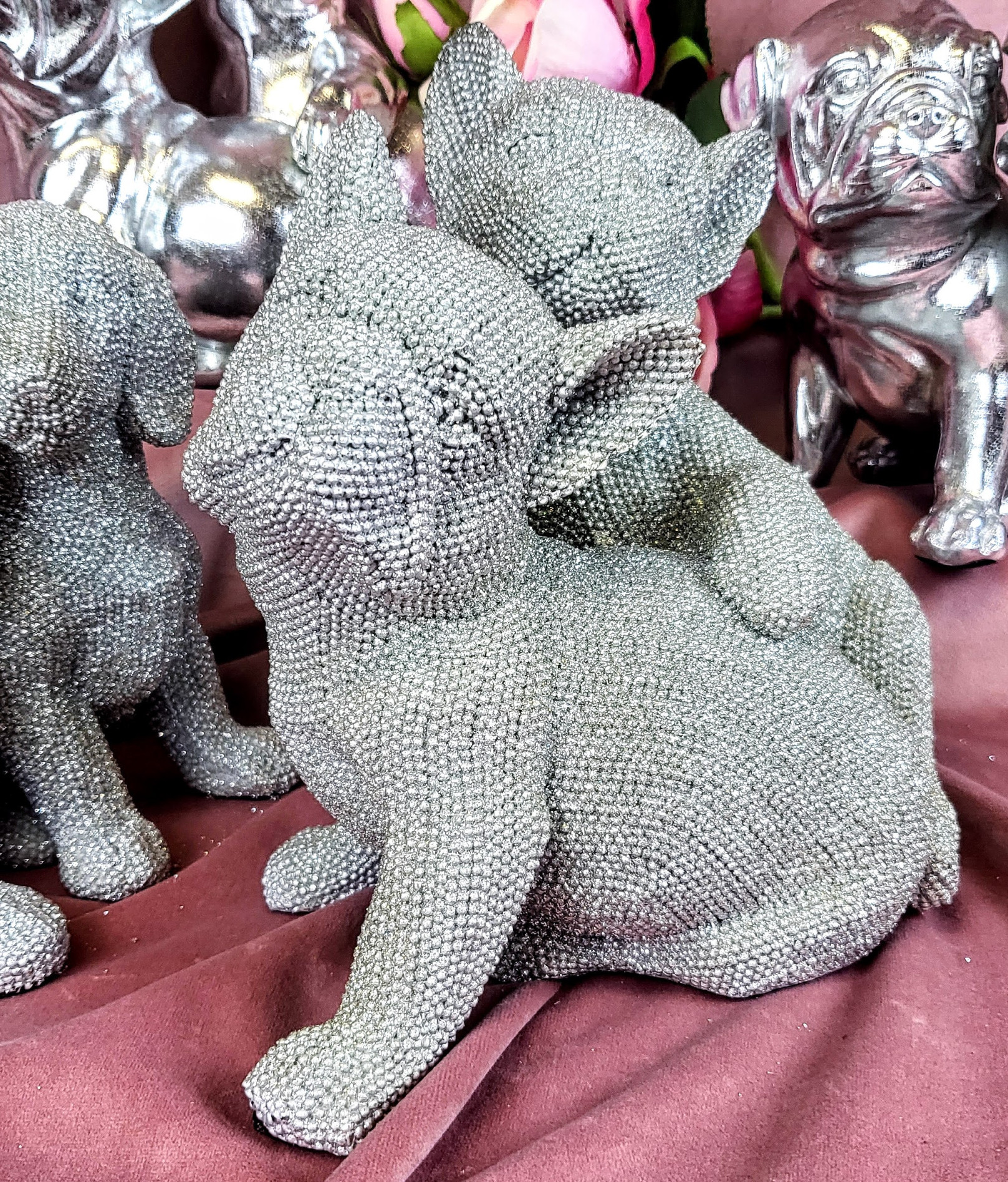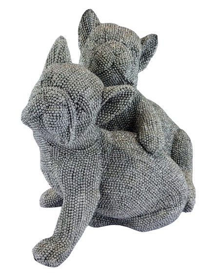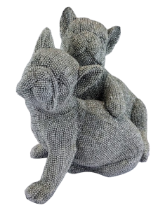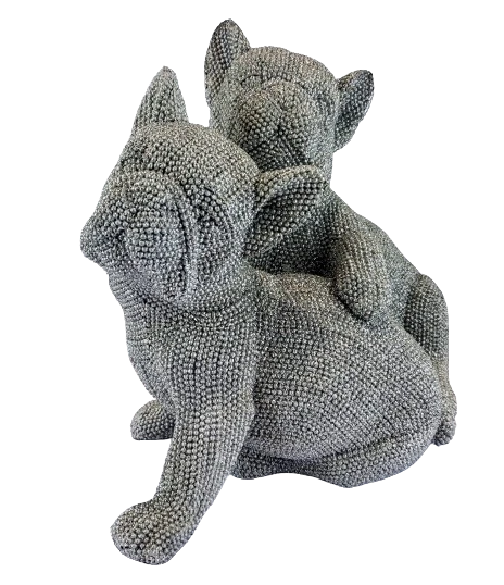 Ta urocza dekoracyjna figura siedzących i obejmujących się buldogów francuskich to nie tylko wspaniały sposób na dodanie uroku i stylu do Twojego domu, ale także wyjątkowy prezent dla miłośnika zwierząt. Buldogi francuskie są jedną z najbardziej uroczych i sympatycznych ras psów na świecie, z charakterystycznymi krótkimi pyszczkami i zwartą sylwetką. Są to inteligentne i oddane psy, które wprost uwielbiają towarzystwo ludzi. Ta figura została wykonana z trwałego cementu, co gwarantuje jej długą żywotnoś ć i odporność na warunki atmosferyczne. Ozdobna struktura figury dodaje elegancji i stylu, a brokat pokrywający figurkę dodaje mu blasku i atrakcyjności. Jest to idealny wybór dla tych, którzy szukają czegoś, co przyciągnie uwagę i doda uroku każdemu pomi eszczeniu. Figurka została wykonana w renomowanej firmie w Anglii, co daje gwarancję wysokiej jakości wykonania i dbałości o każdy szczegół. Dodatkowo, spakowana jest w białe tekturowe pudełko ze zdjęciem figurki znajdującej się w środku, co sprawia, że ??jest to idealny prezent dla każdego, kto ceni sobie piękno i styl. Ta figurka to wspaniały sposób na dodanie stylu i elegancji do Twojego domu lub biura, a jednocześnie idealny prezent dla miłośników zwierząt i kolekcjonerów ozdób.