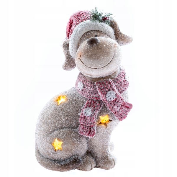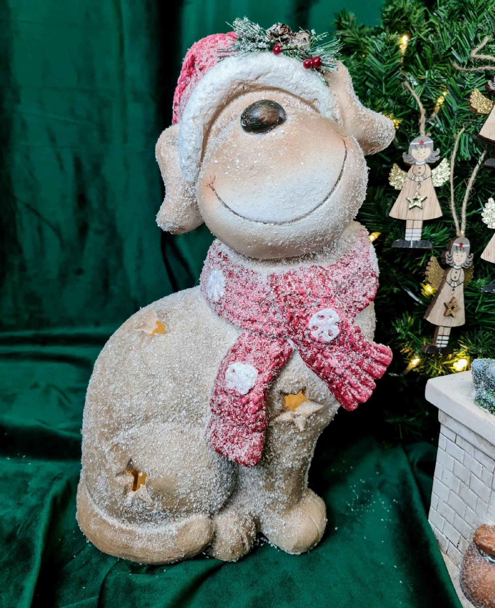 Świąteczna figurka uśmiechniętego psa z wbudowanym oświetleniem ledowym będzie stanowiła wyjątkowe uzupełnienie bożonarodzeniowych dekoracji.Będzie pilnował prezentów przy choince ;-)