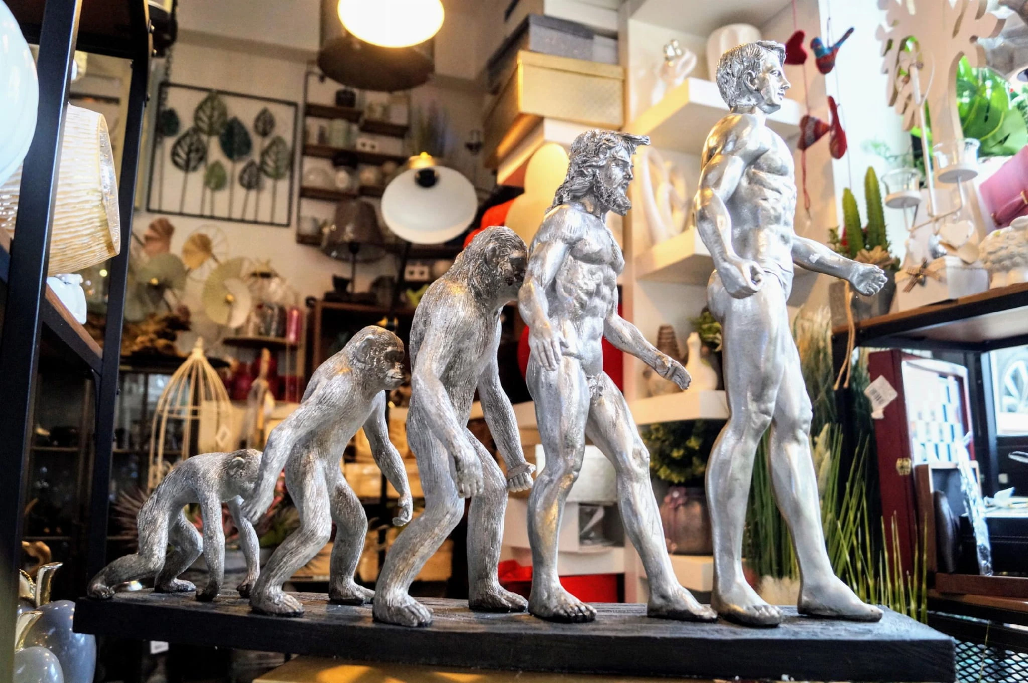 Figurka z tworzywa przedstawiająca ewolucję człowieka.