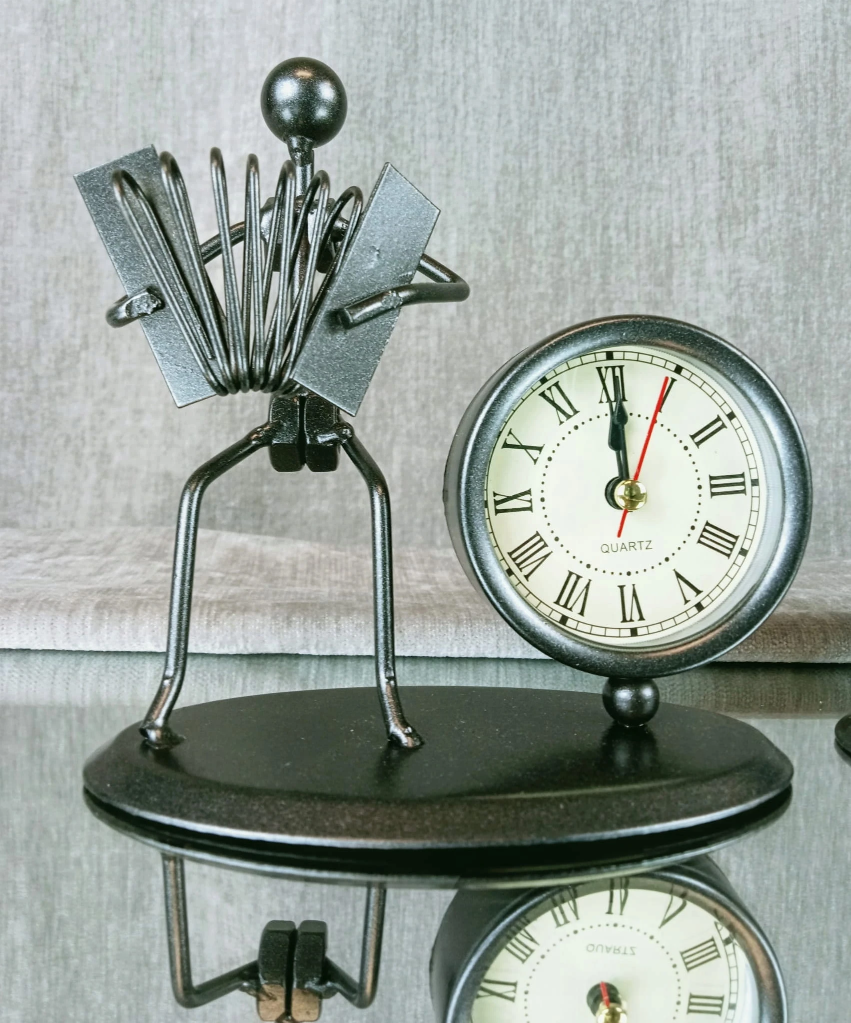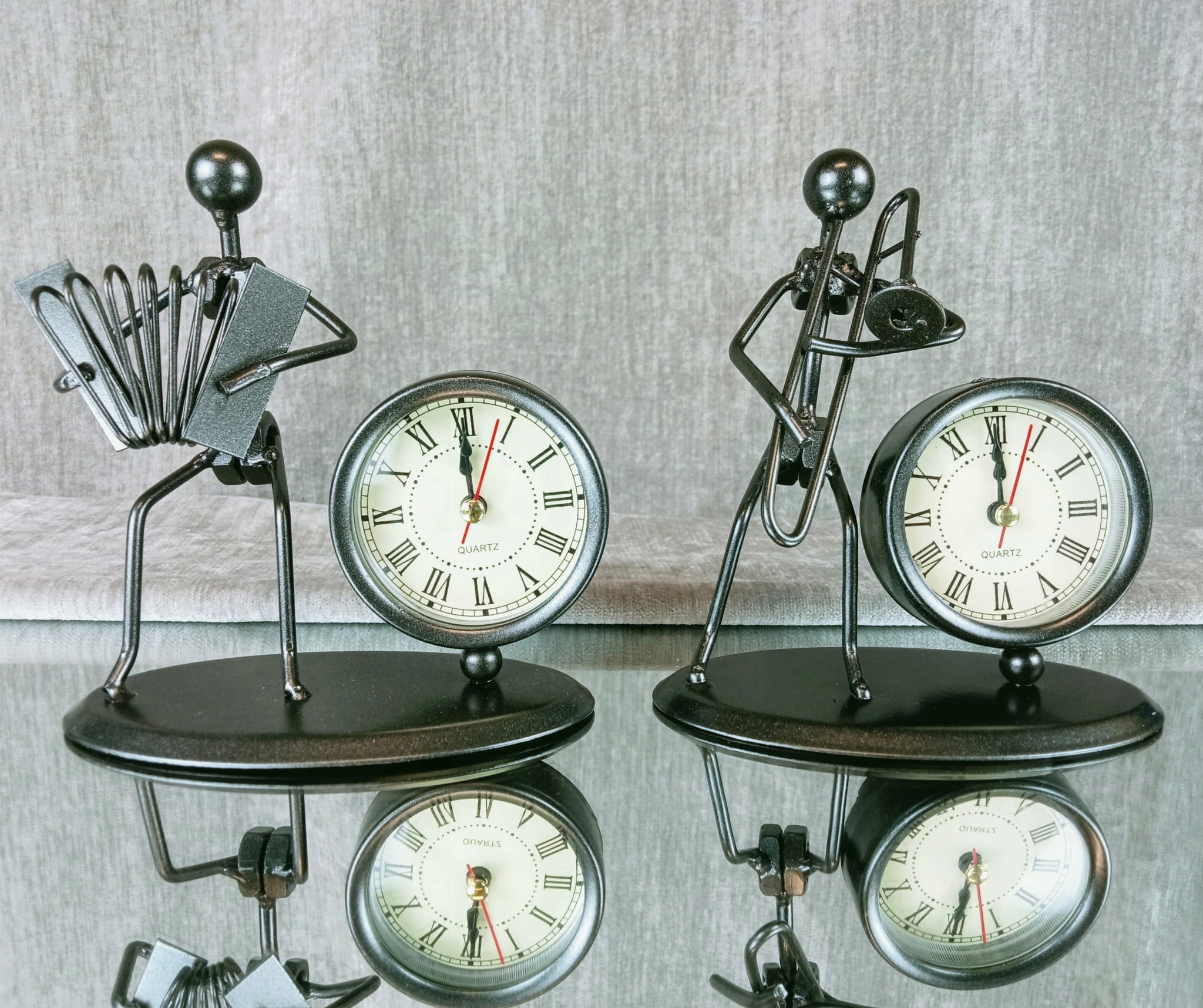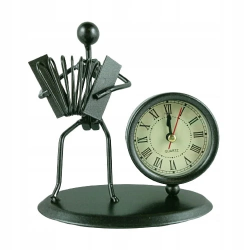 Figurka muzyka z zegarem pięknie prezentuje się w pomieszczeniach w stylu art déco lub industrialnym. Jest to również ciekawy dodatek do wnętrz eklektycznych. Muzyk świetnie sprawdzi się jako prezent na różne okazje.