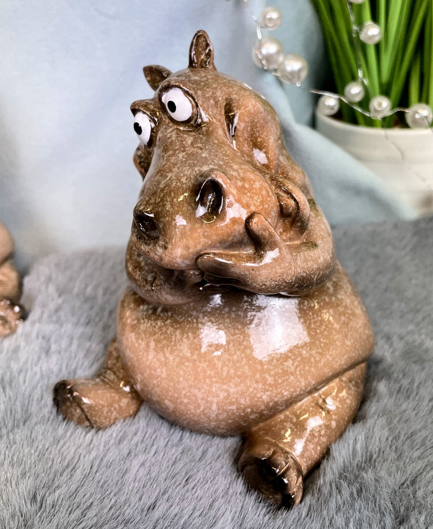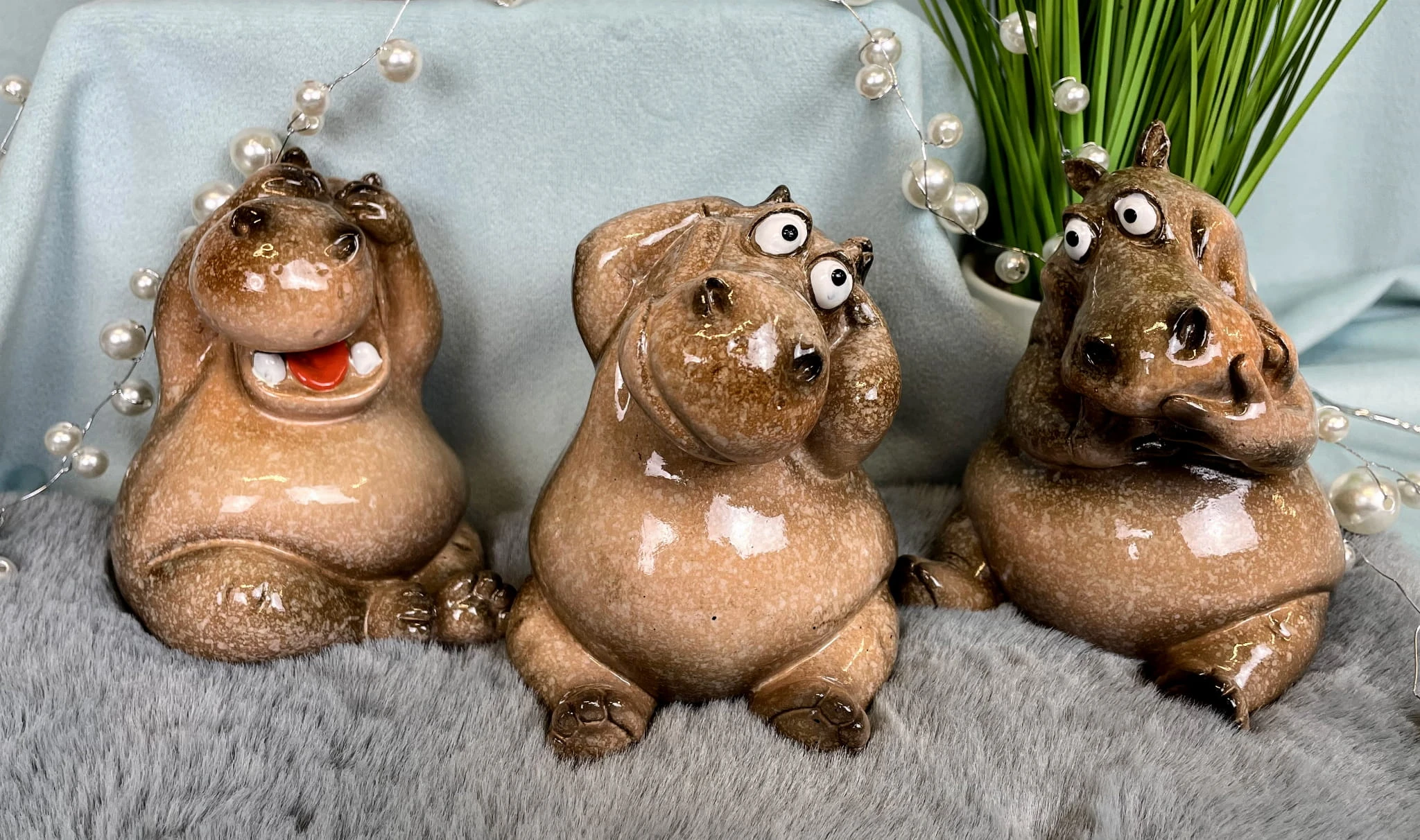 Zabawna figurka hipopotama z serii "Nie mówię, nie widzę, nie słyszę", która ożywi każdą półkę czy biurko.
