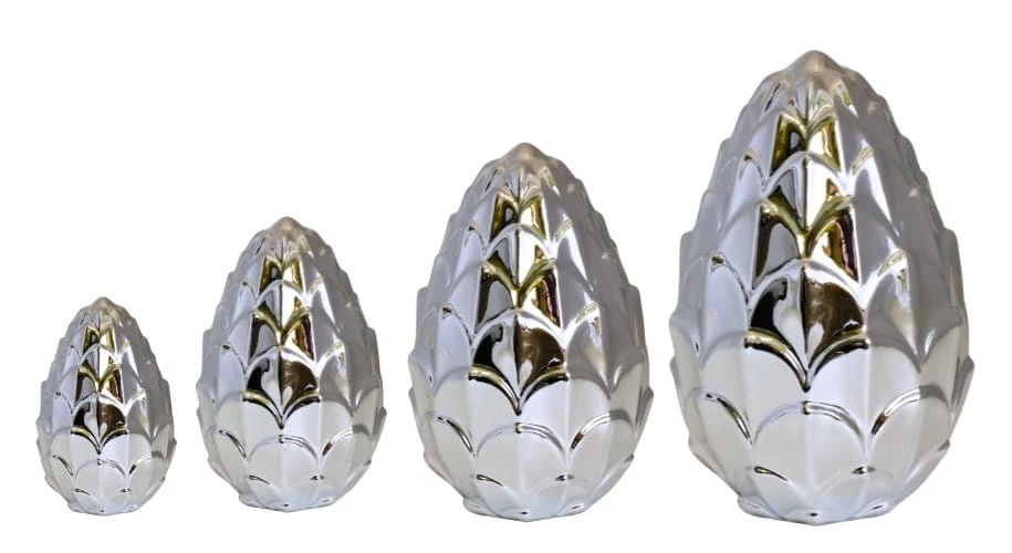 Figurka karczoch w kolorze srebrnym. Jeden z najmodniejszych dodatków w tym sezonie. Idealnie wkomponuje się we wnętrza eklektyczne czy też glamour.