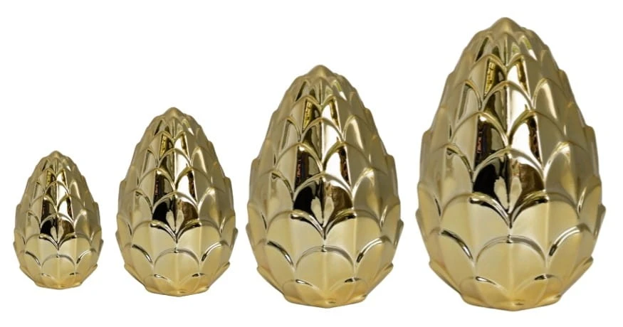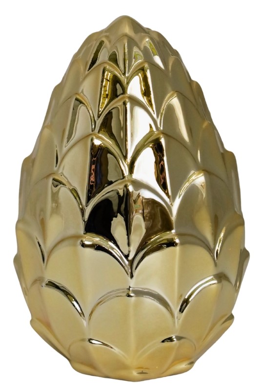 Figurka karczoch w kolorze złotym. Jeden z najmodniejszych dodatków w tym sezonie. Idealnie wkomponuje się we wnętrza eklektyczne czy też glamour.