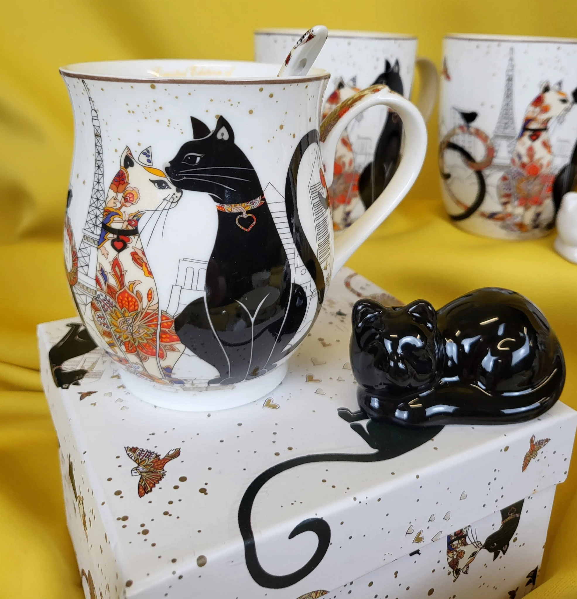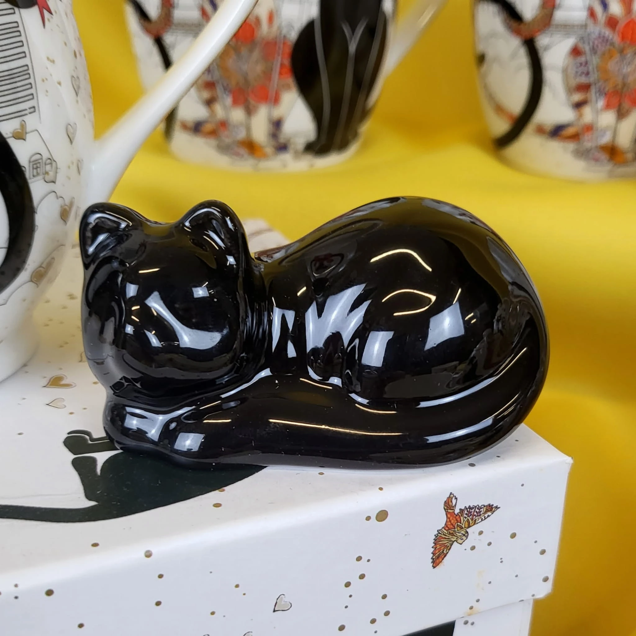 Ceramiczna figurka w kształcie uroczego kotka w białym lub czarnym kolorze.