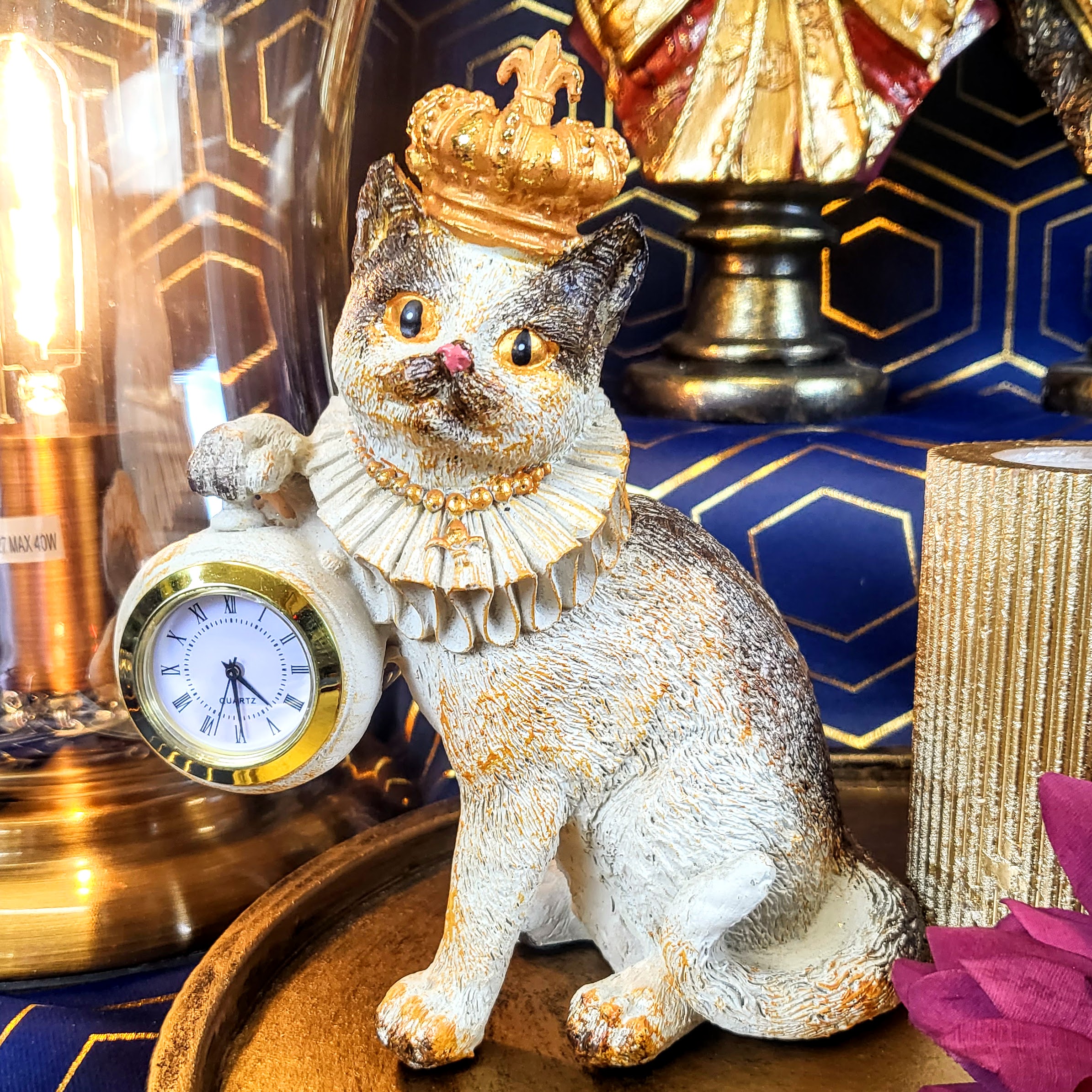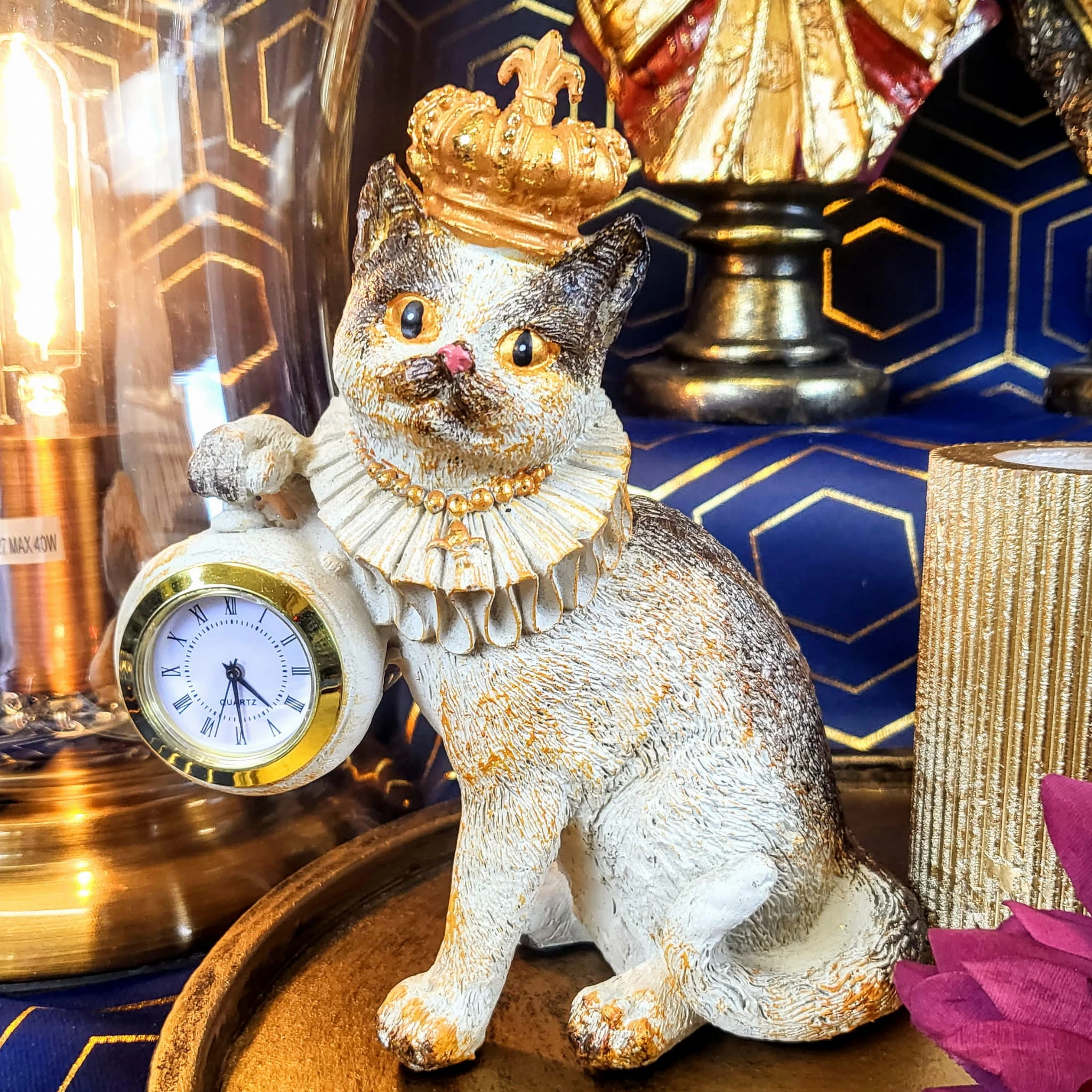 Piękna figurka z wizerunkiem kota wykonana z polyresinu. Sprawdzi się jako ozdoba mieszkania w stylu klasycznym, jak i nowoczesnym. Jej niepowtarzalny design sprawi że nikt nie przejdzie obok niej obojętnie.