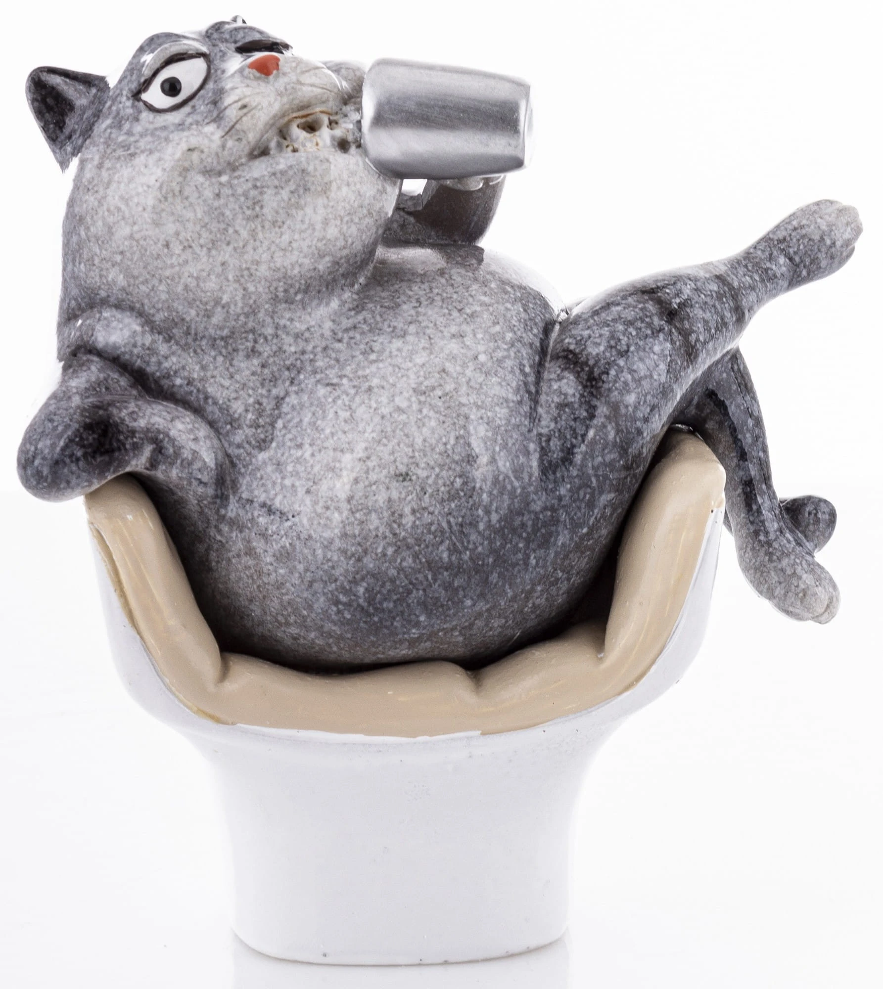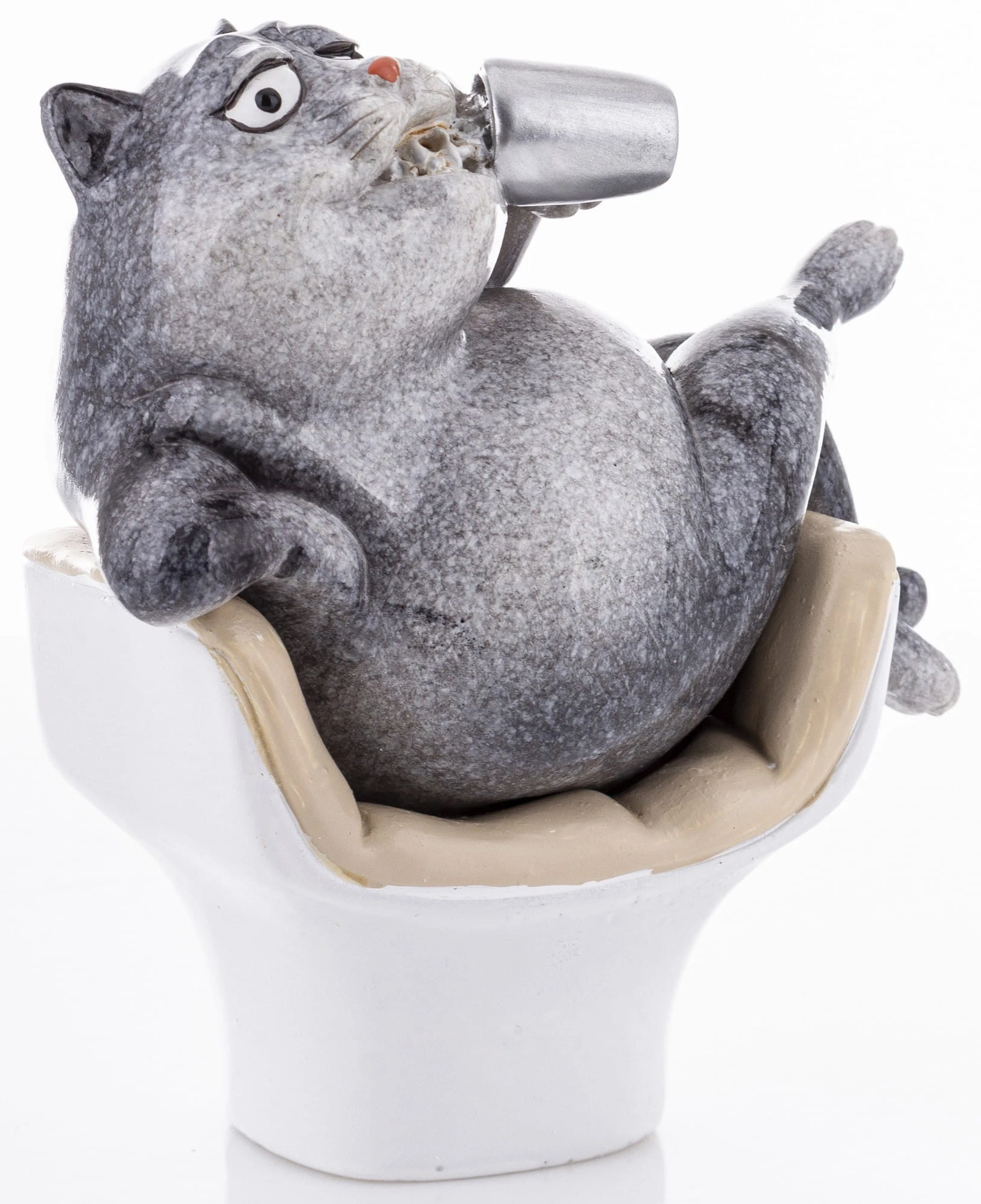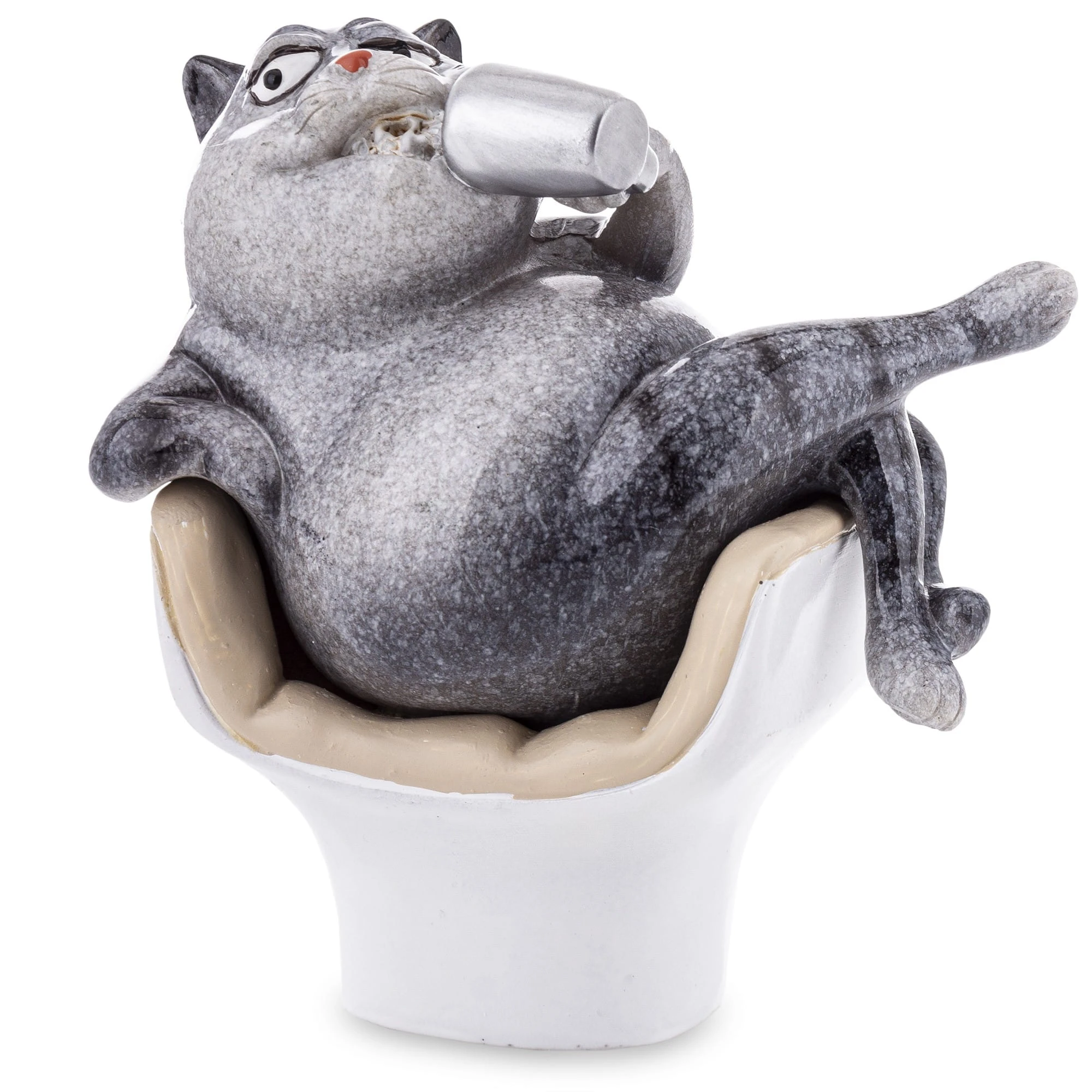 FIGURKA KOTA SIEDZĄCEGO W FOTELU I TRZYMAJĄCEGO KUBEK