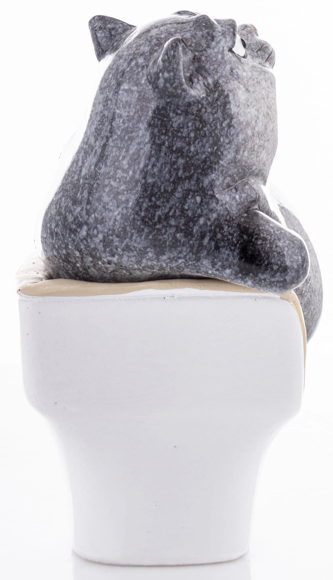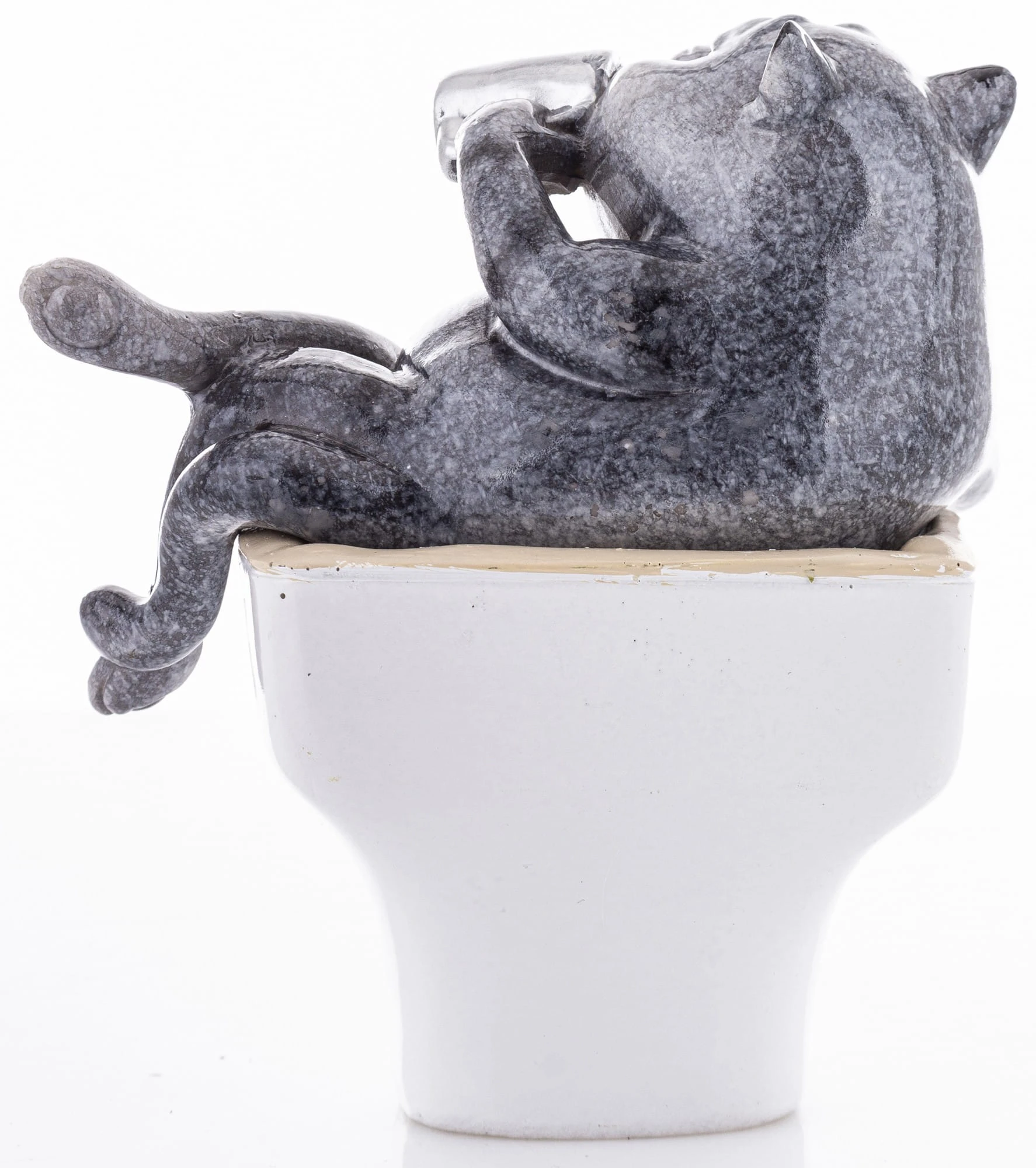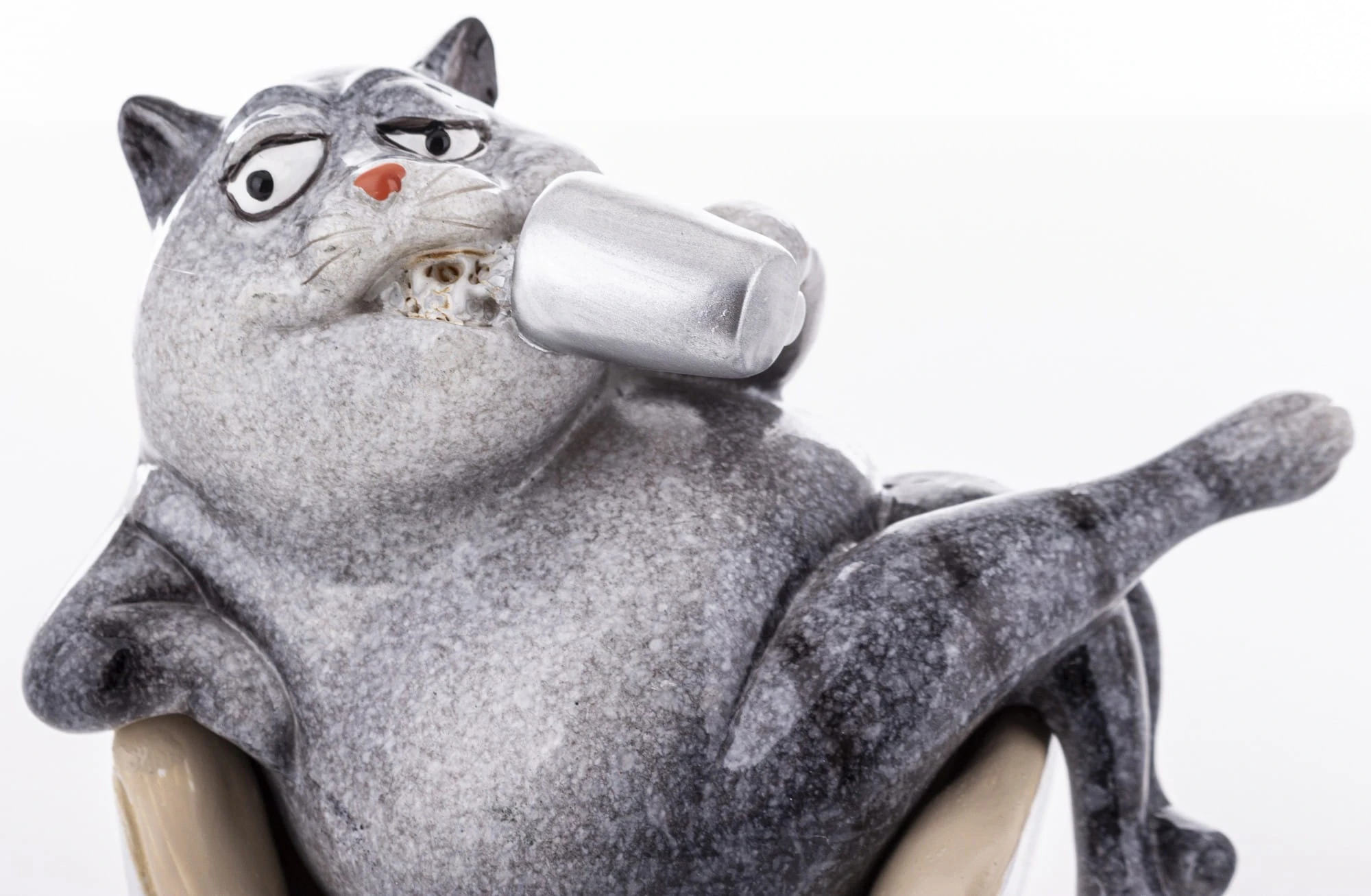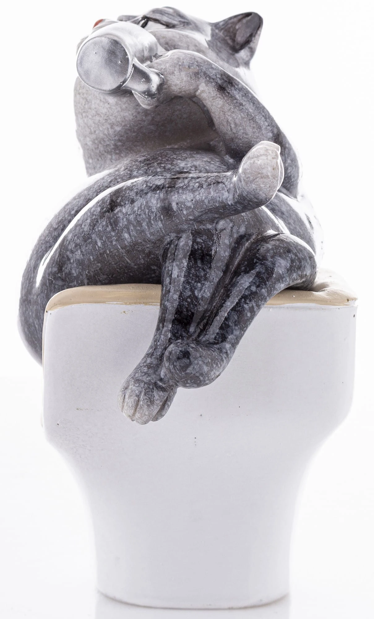 FIGURKA KOTA SIEDZĄCEGO W FOTELU I TRZYMAJĄCEGO KUBEK