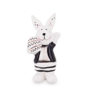 FIGURKA KRÓLIK BIAŁO CZARNY Z JAJKIEM 8,5x4,5x3