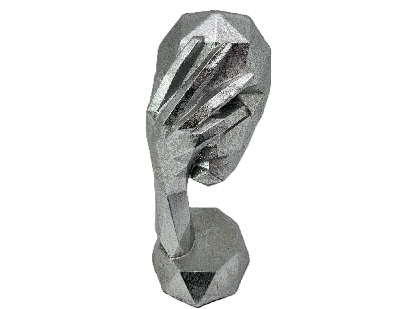 FIGURKA MASKA 20X8X9 SREBRNA GEOMETRYCZNA