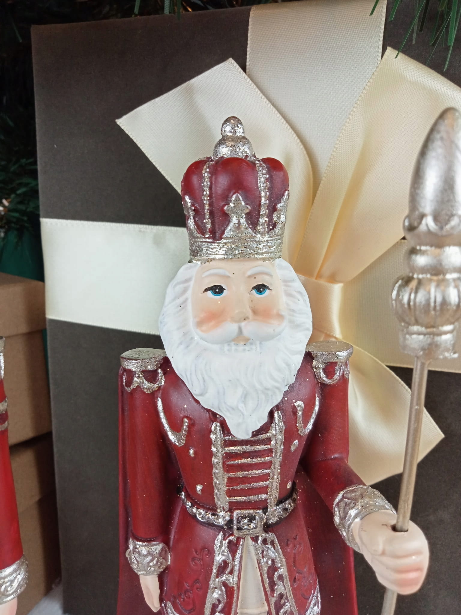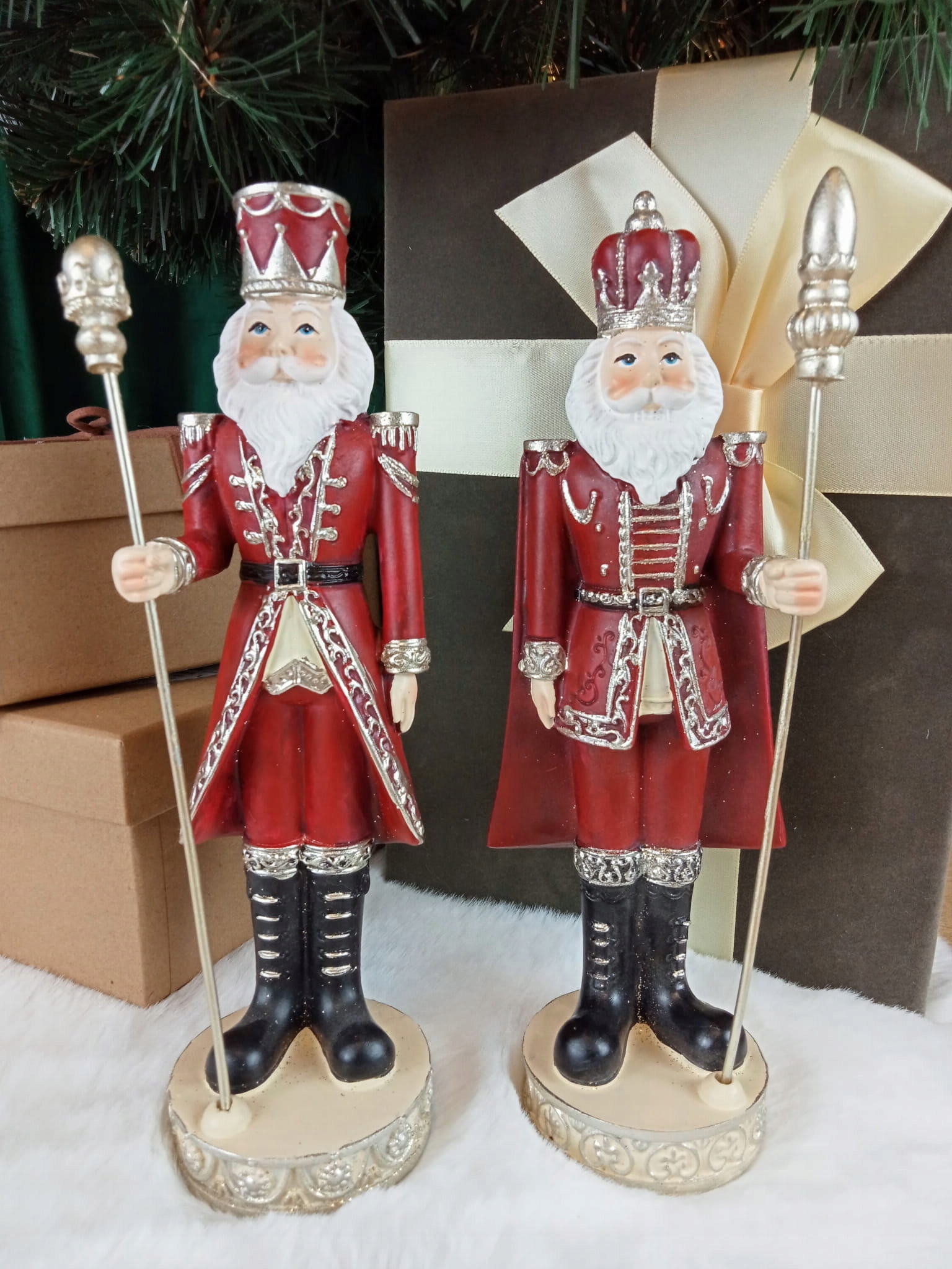 Klasyczna dekoracja świąteczna z tworzywa sztucznego. Wspaniały mikołaj w łagodnych i spokojnych kolorach stworzy nastrój dawnych czasów i wzbogaci tradycyjny świąteczny wystrój.