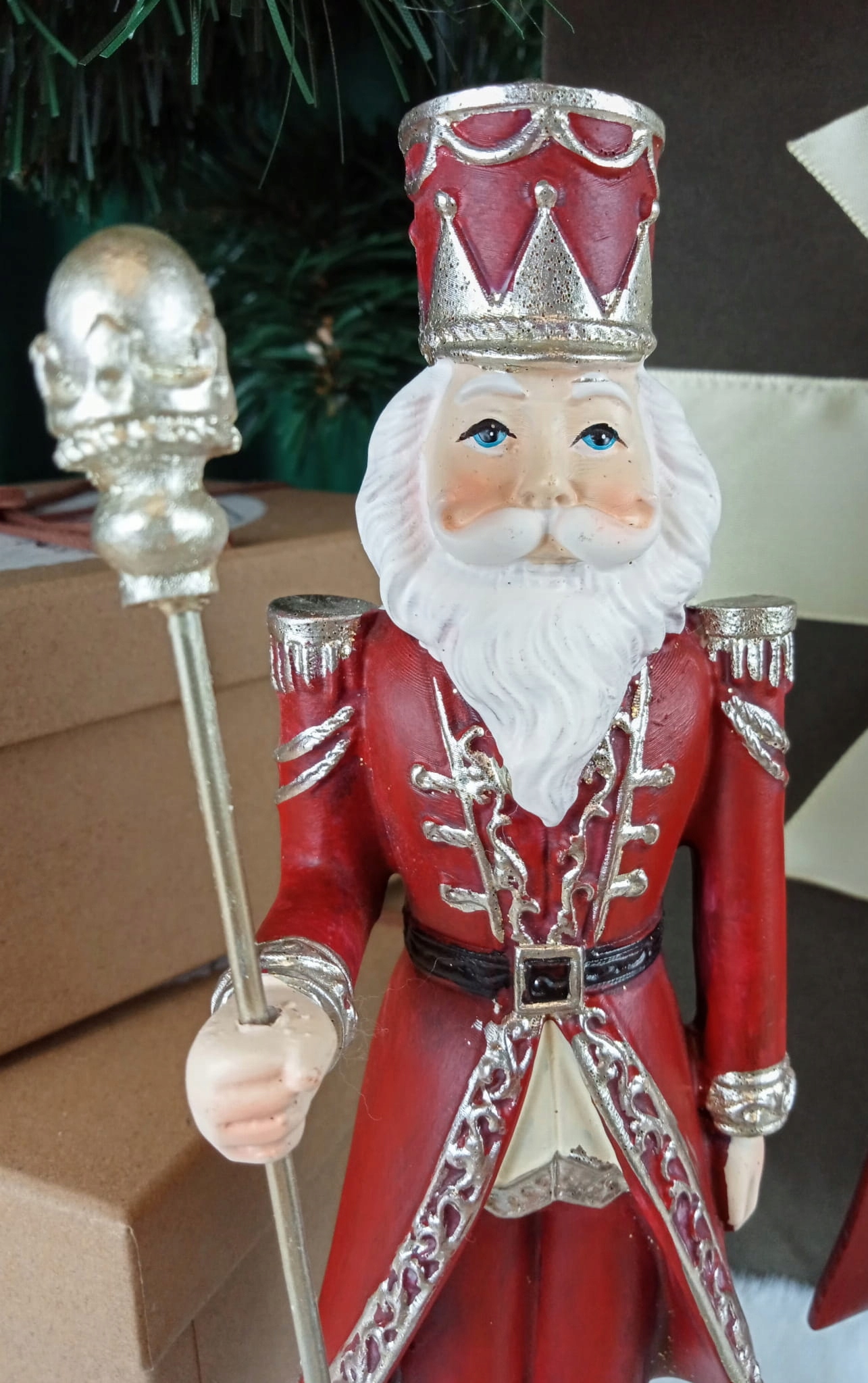 Klasyczna dekoracja świąteczna z tworzywa sztucznego. Wspaniały mikołaj w łagodnych i spokojnych kolorach stworzy nastrój dawnych czasów i wzbogaci tradycyjny świąteczny wystrój.