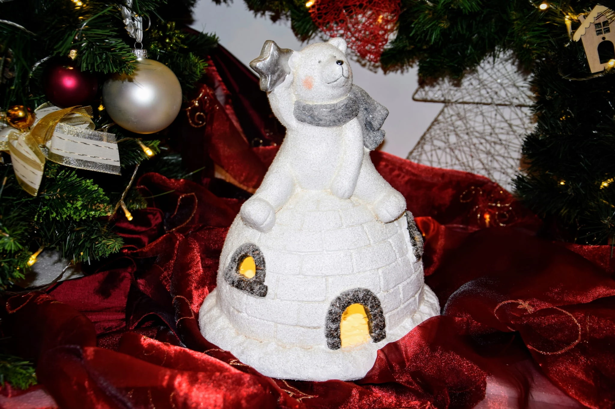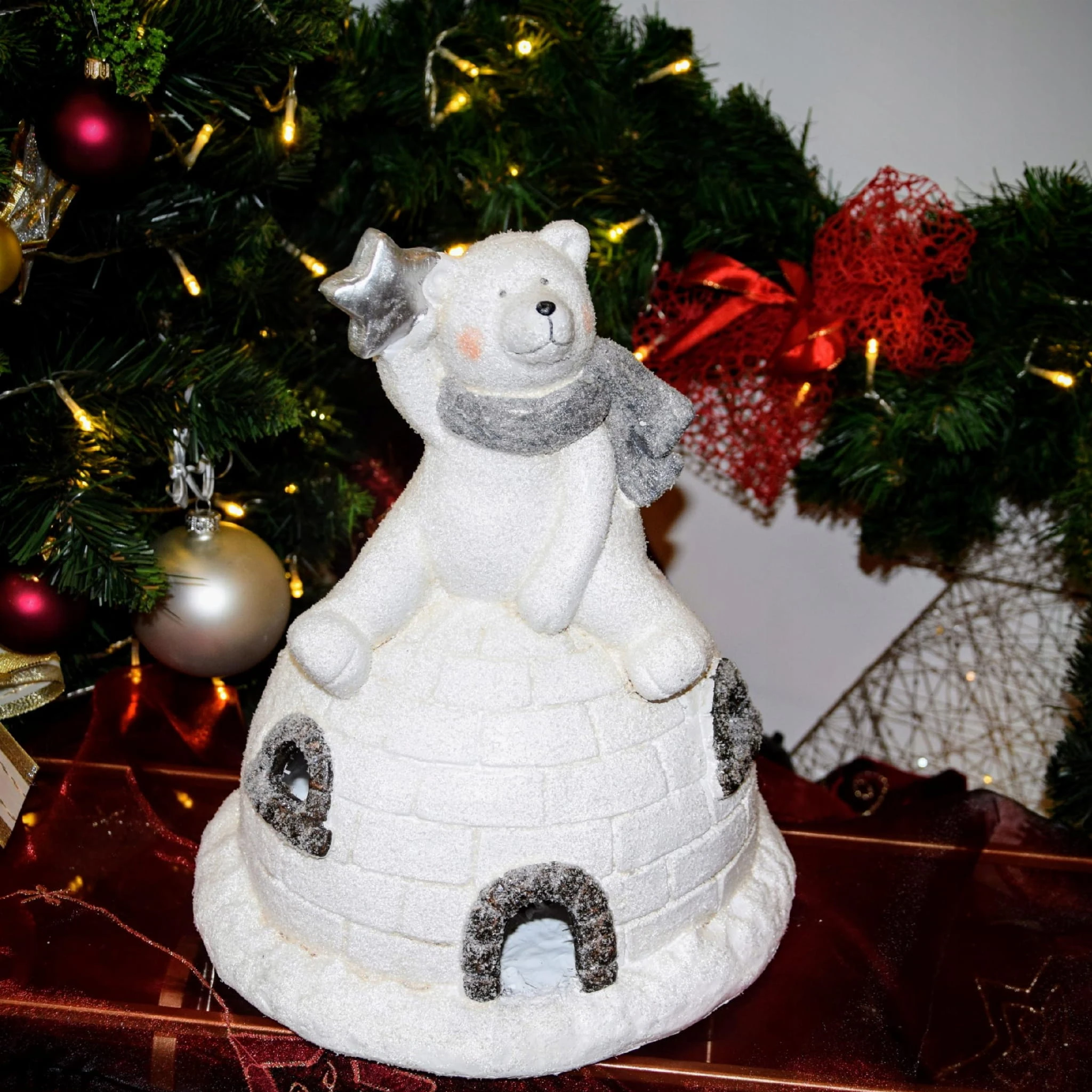 FIGURKA MIŚ NA IGLOO LED, H 30 CM