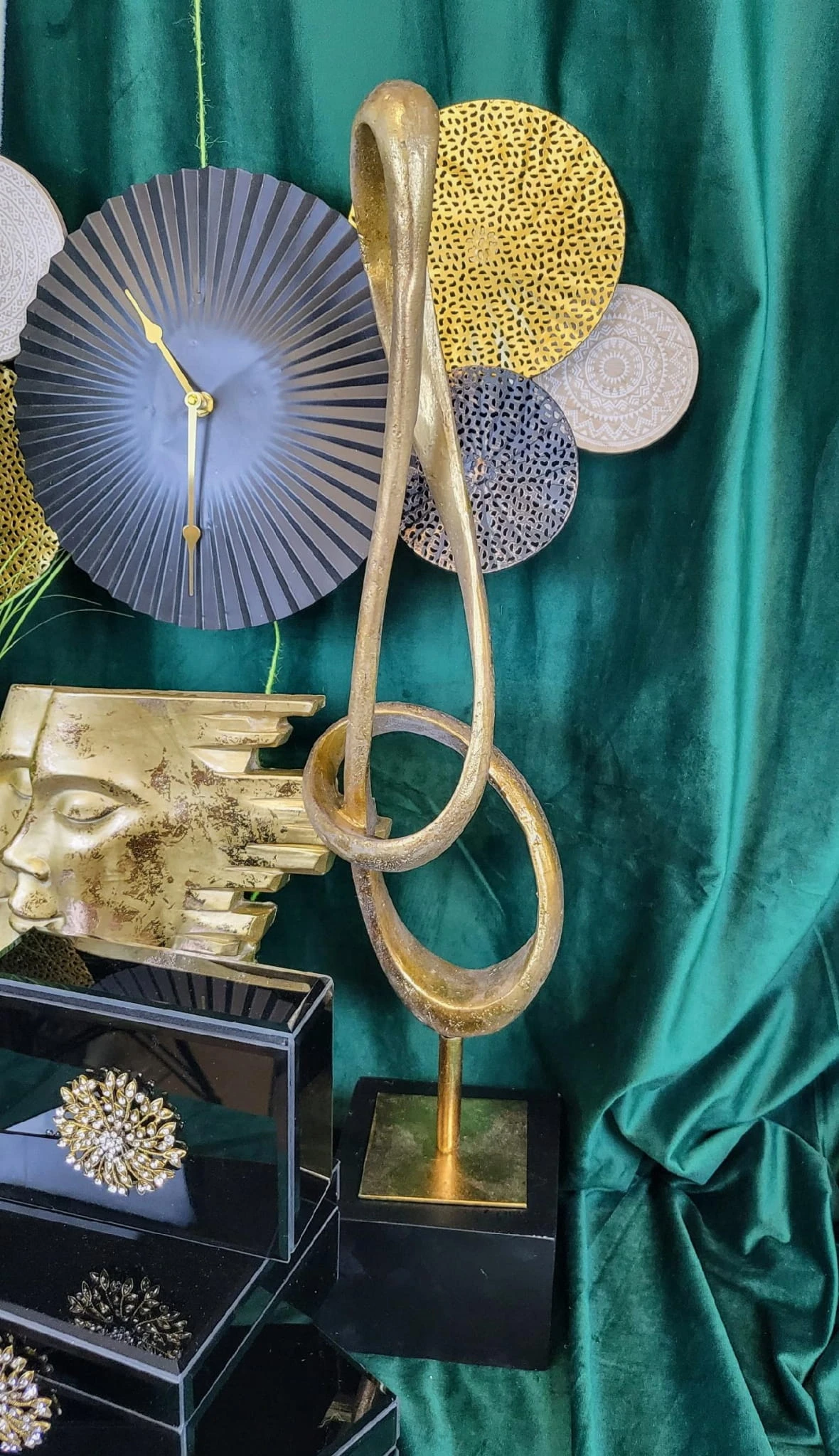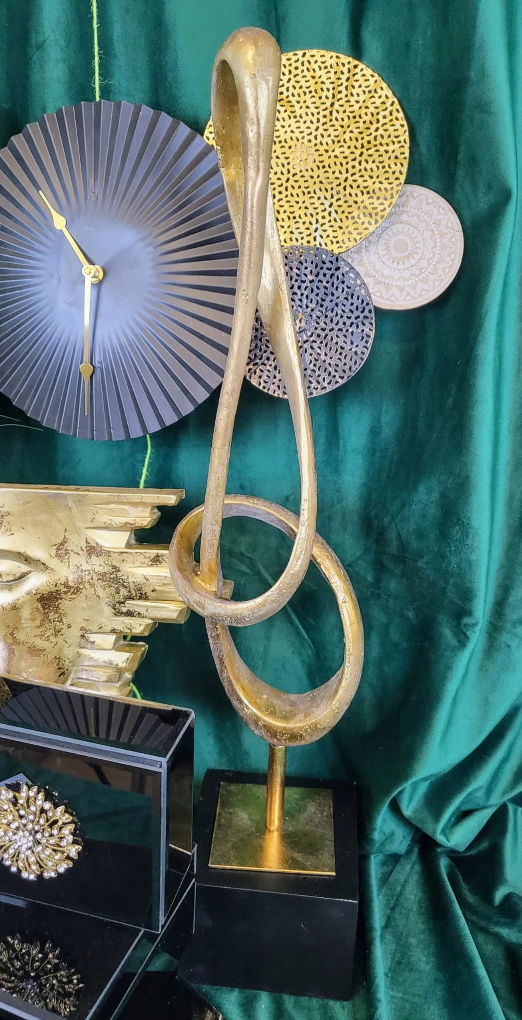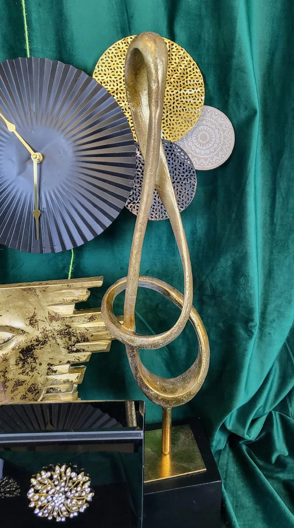Złota figurka nuty wykonana z dbałością o szczegóły z trwałego tworzywa. Dekoracyjna nuta ozdobi biuro, salon czy sypialnię. Realistyczna rzeźba jest idealnym elementem dekoracyjnym dla miłośników muzyki i oryginalnych dekoracji.