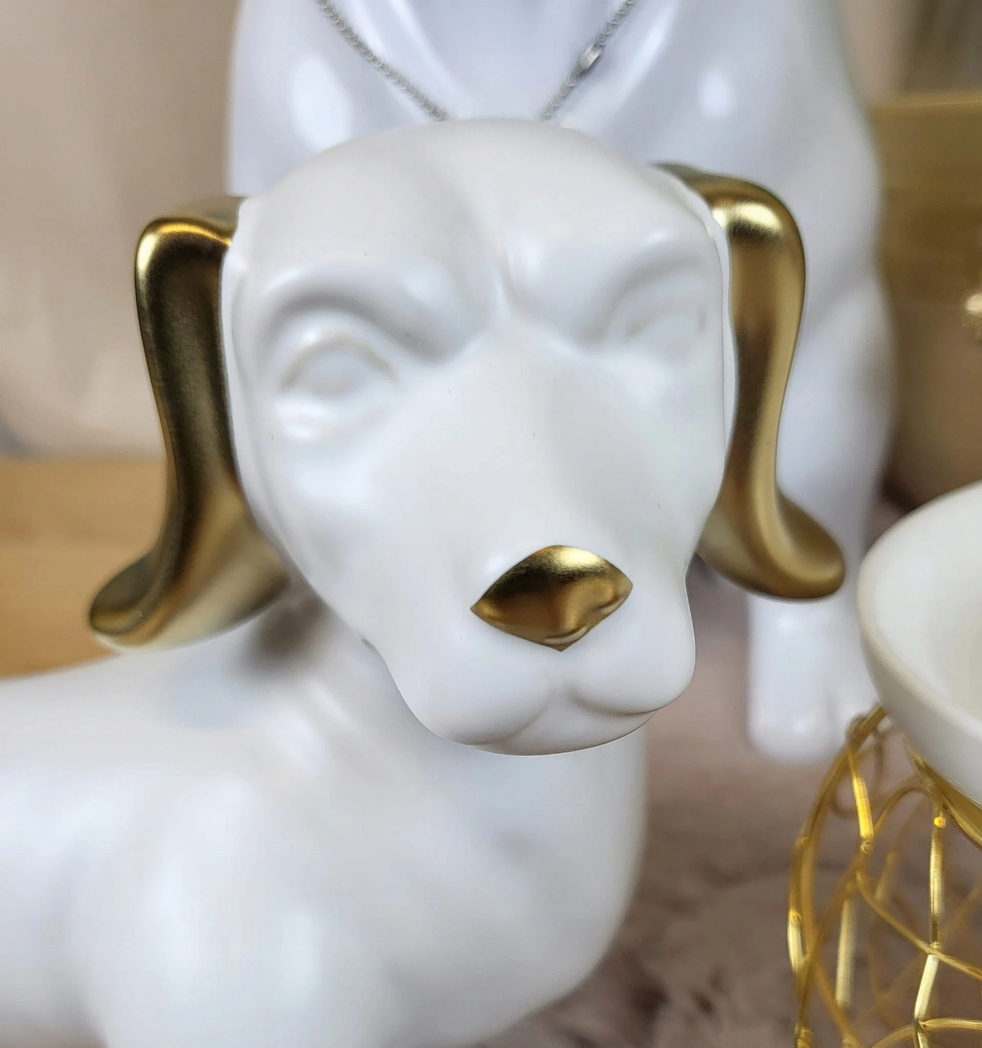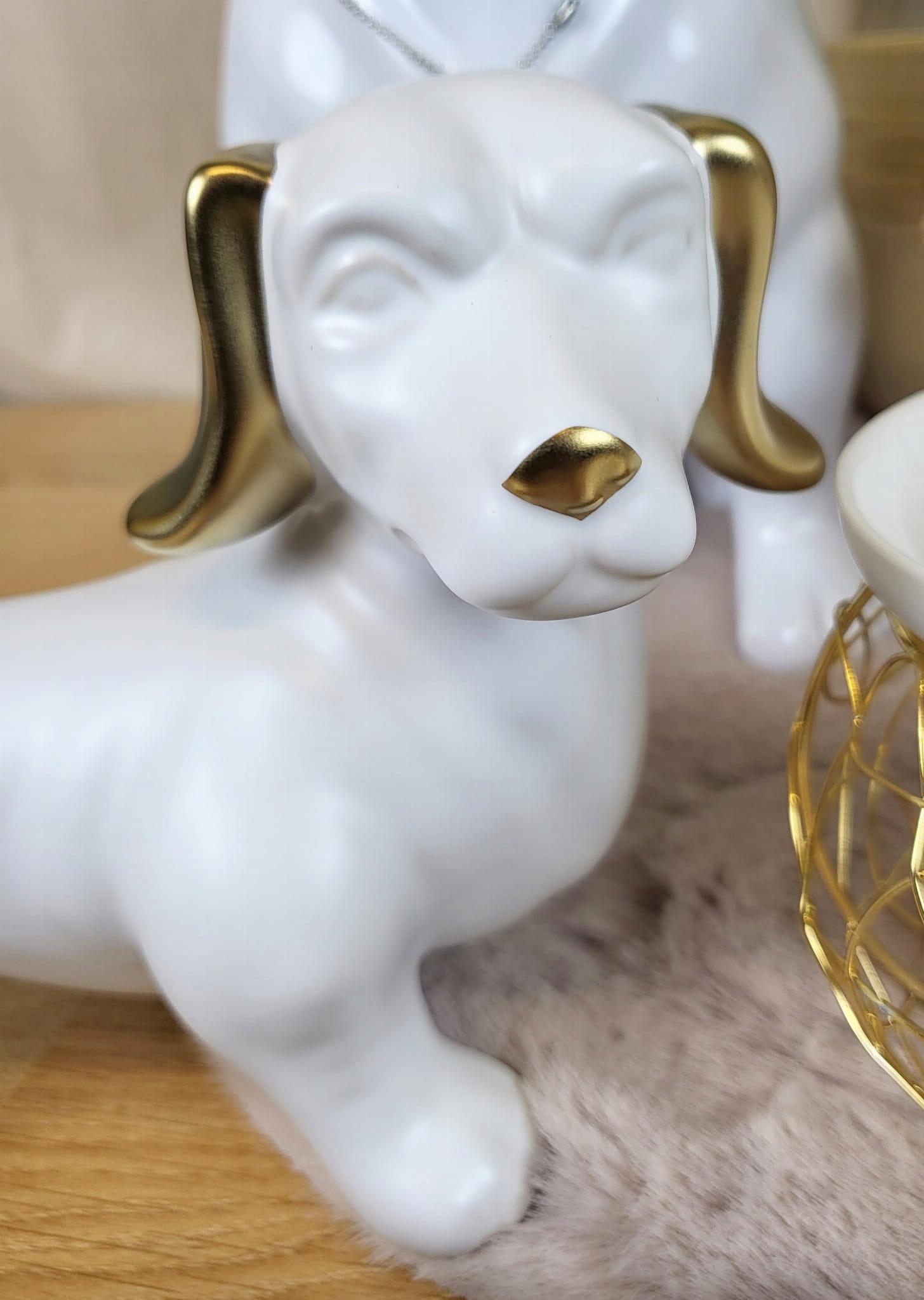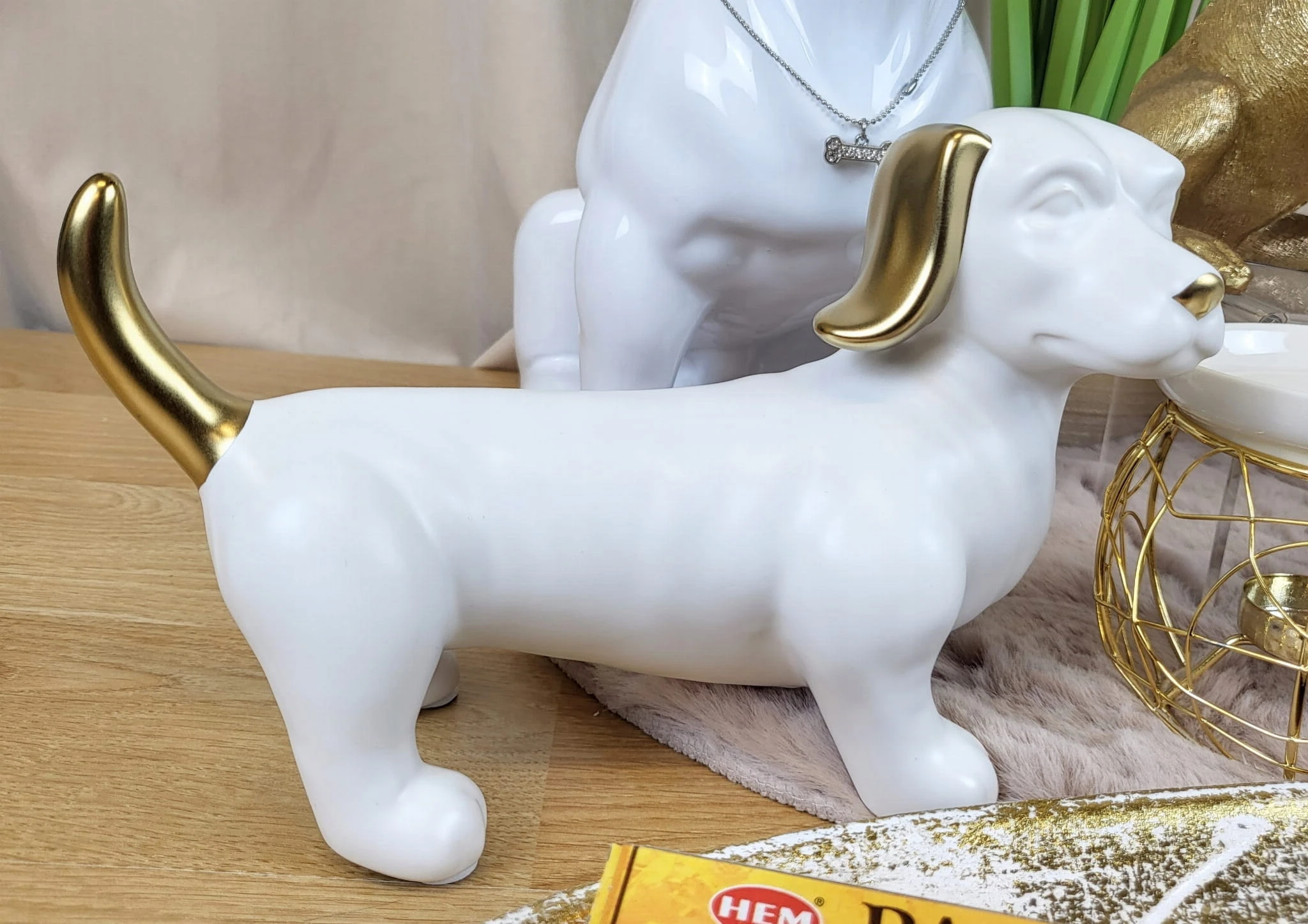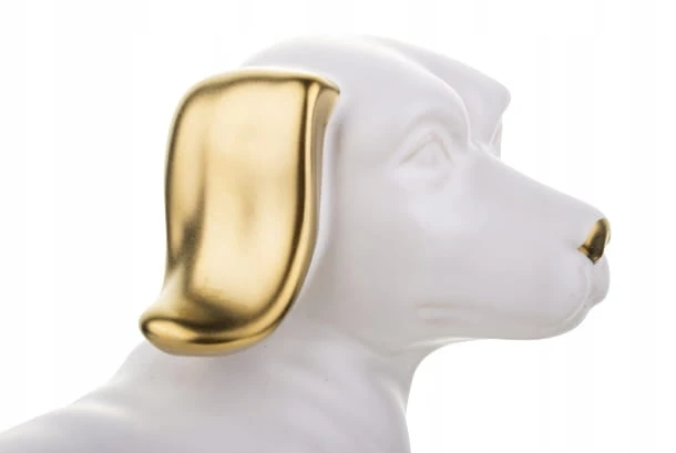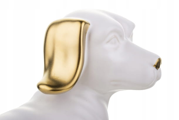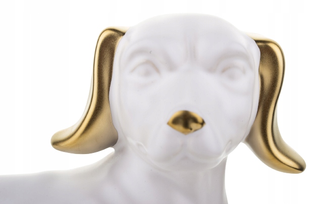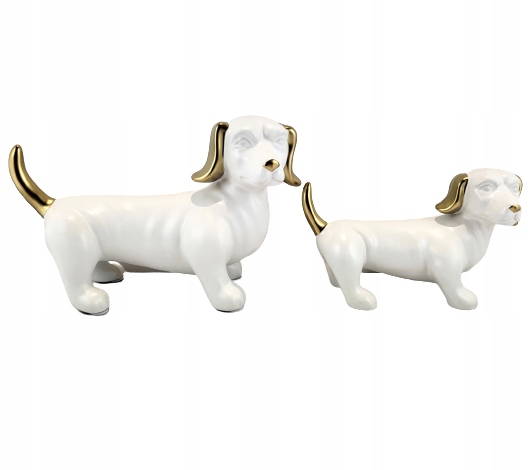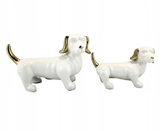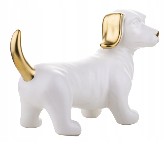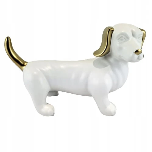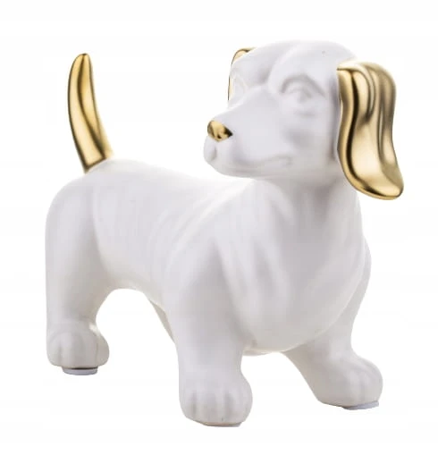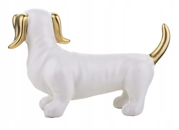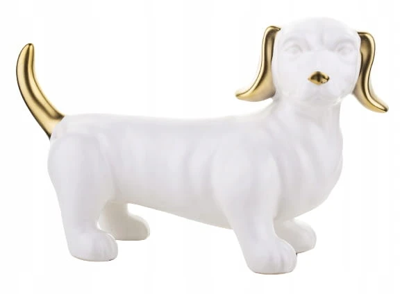 FIGURKA OZDOBA PIES JAMNIK BIAŁO ZŁOTY