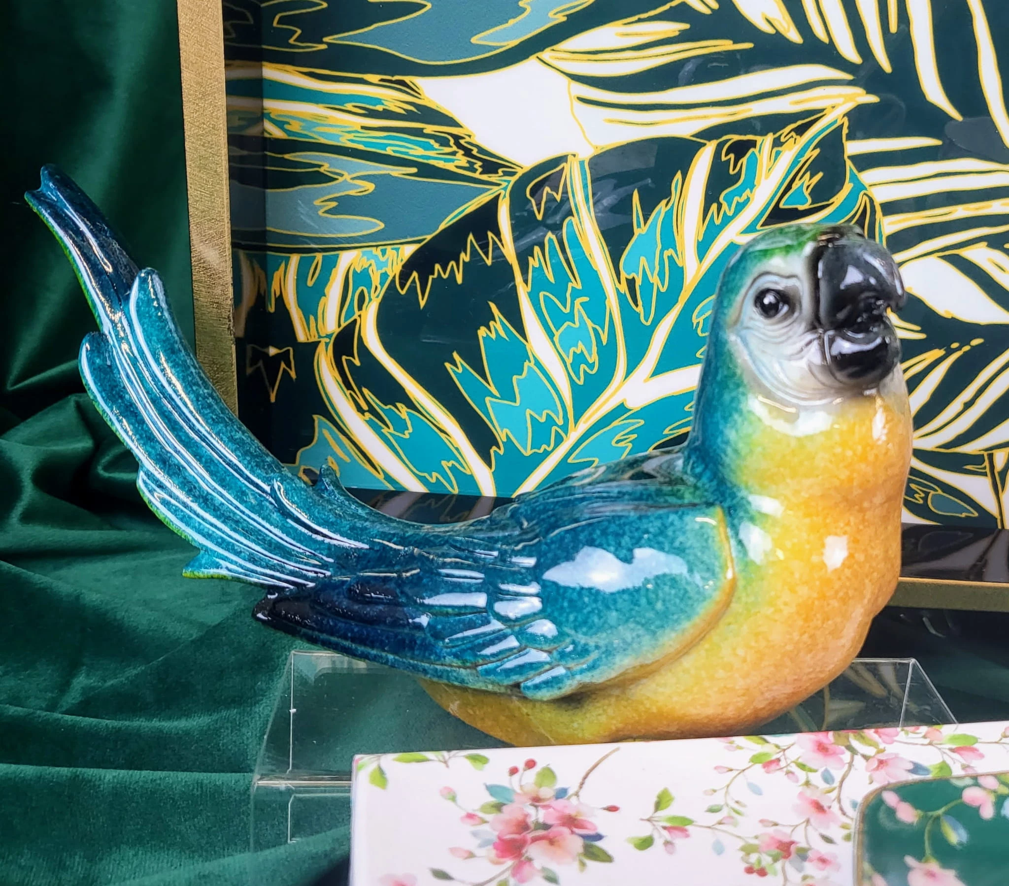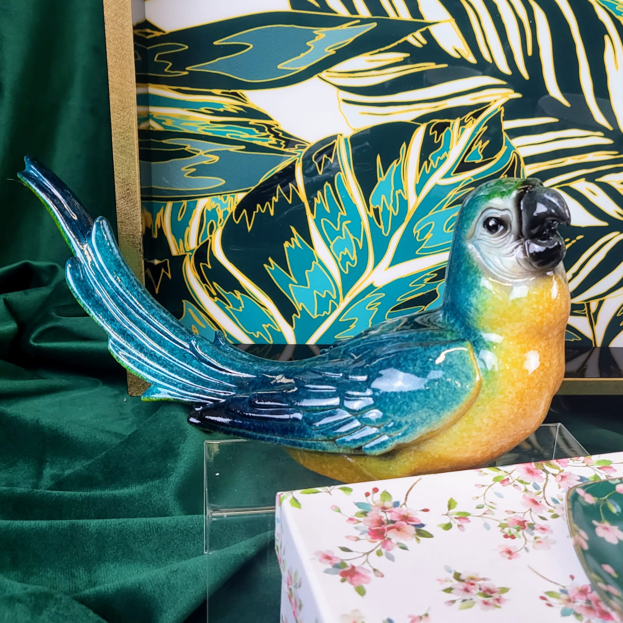 Papuga będzie piękną ozdobą w każdym wnętrzu. Na pewno każdy odwiedzający dom zwróci uwagę na tak ciekawą ozdobę. Kolorowa figurka papugi wykonana z dbałością o szczegóły z trwałego tworzywa. Dekoracyjna papuga ozdobi biuro, salon czy sypialnię. Realistyczna figurka jest idealnym elementem dekoracyjnym dla miłośników przyrody i oryginalnych dekoracji. Figurka papugi to także doskonały prezent dla ornitologa.