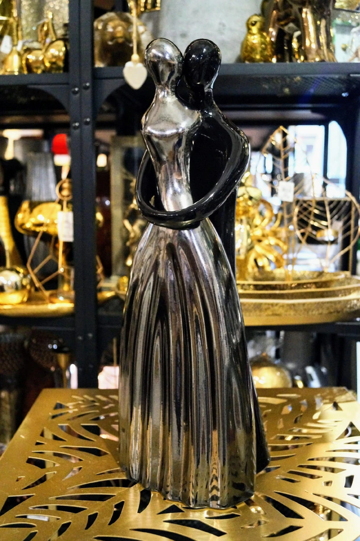 Ceramiczna figurka przedstawiająca zakochaną parę.