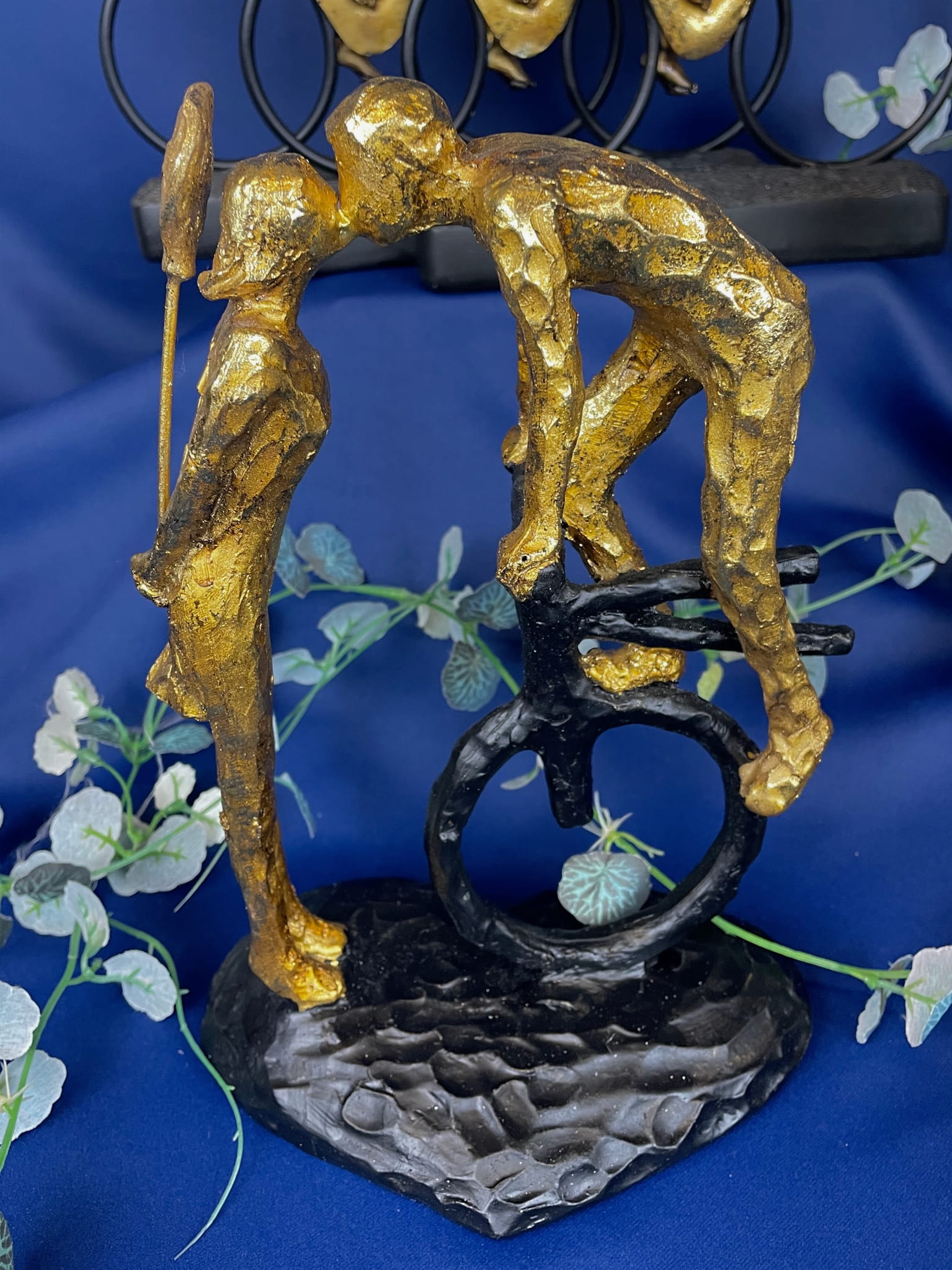 Oryginalna figurka z wizerunkiem pary w kolorze złota. Sprawdzi się jako ozdoba mieszkania w stylu klasycznym, jak i nowoczesnym. Jej niepowtarzalny design sprawi, że nikt nie przejdzie obok niej obojętnie. Doskonały prezent dla przyjaciela.