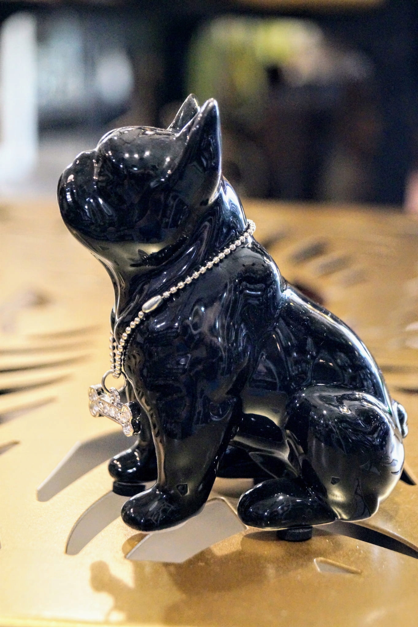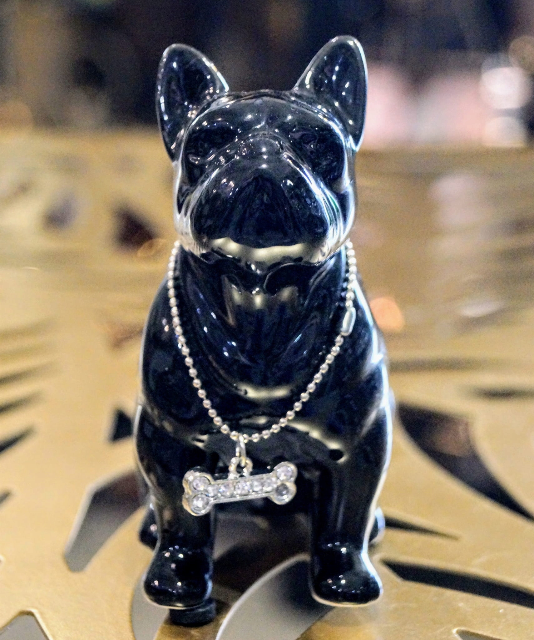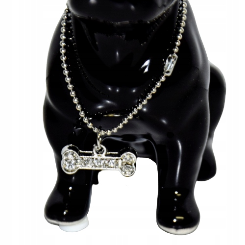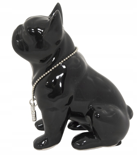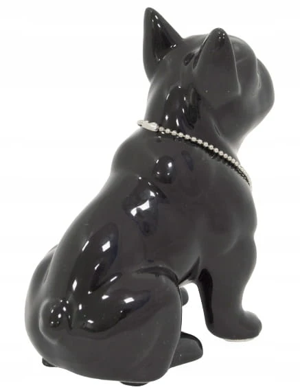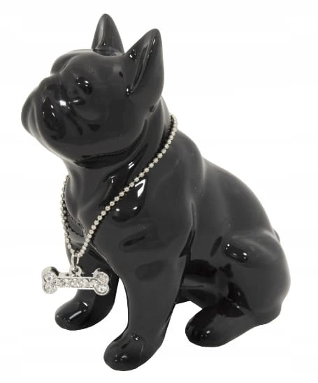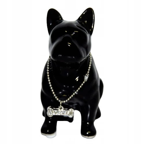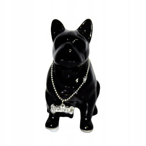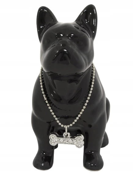 FIGURKA PIES BULDOG CZARNY Z NASZYJNIKIEM
