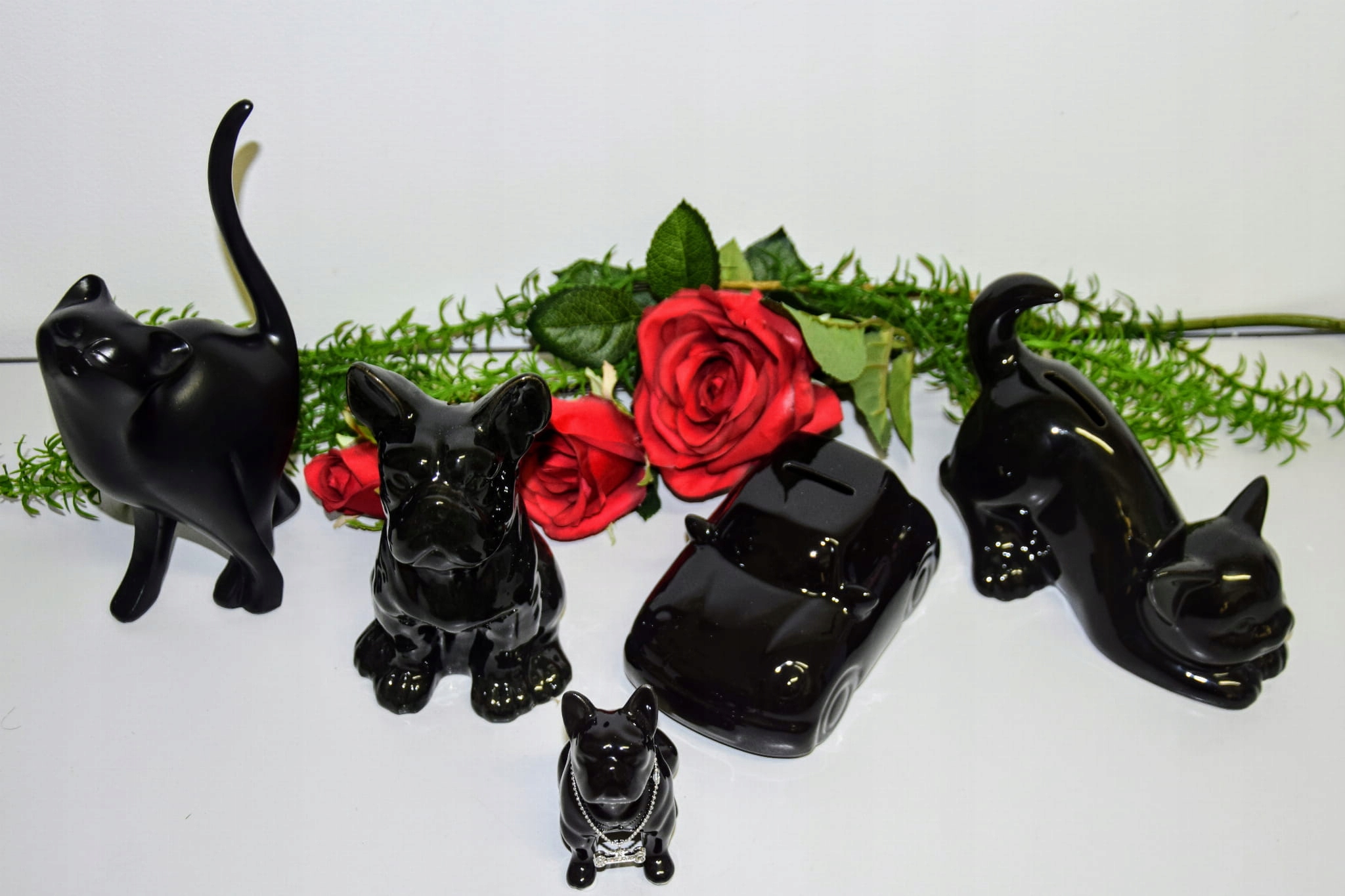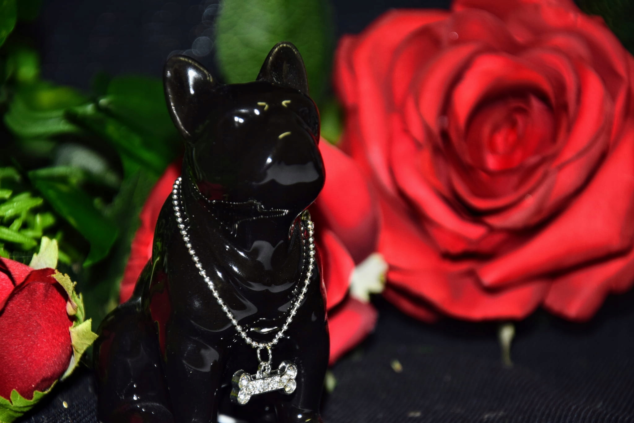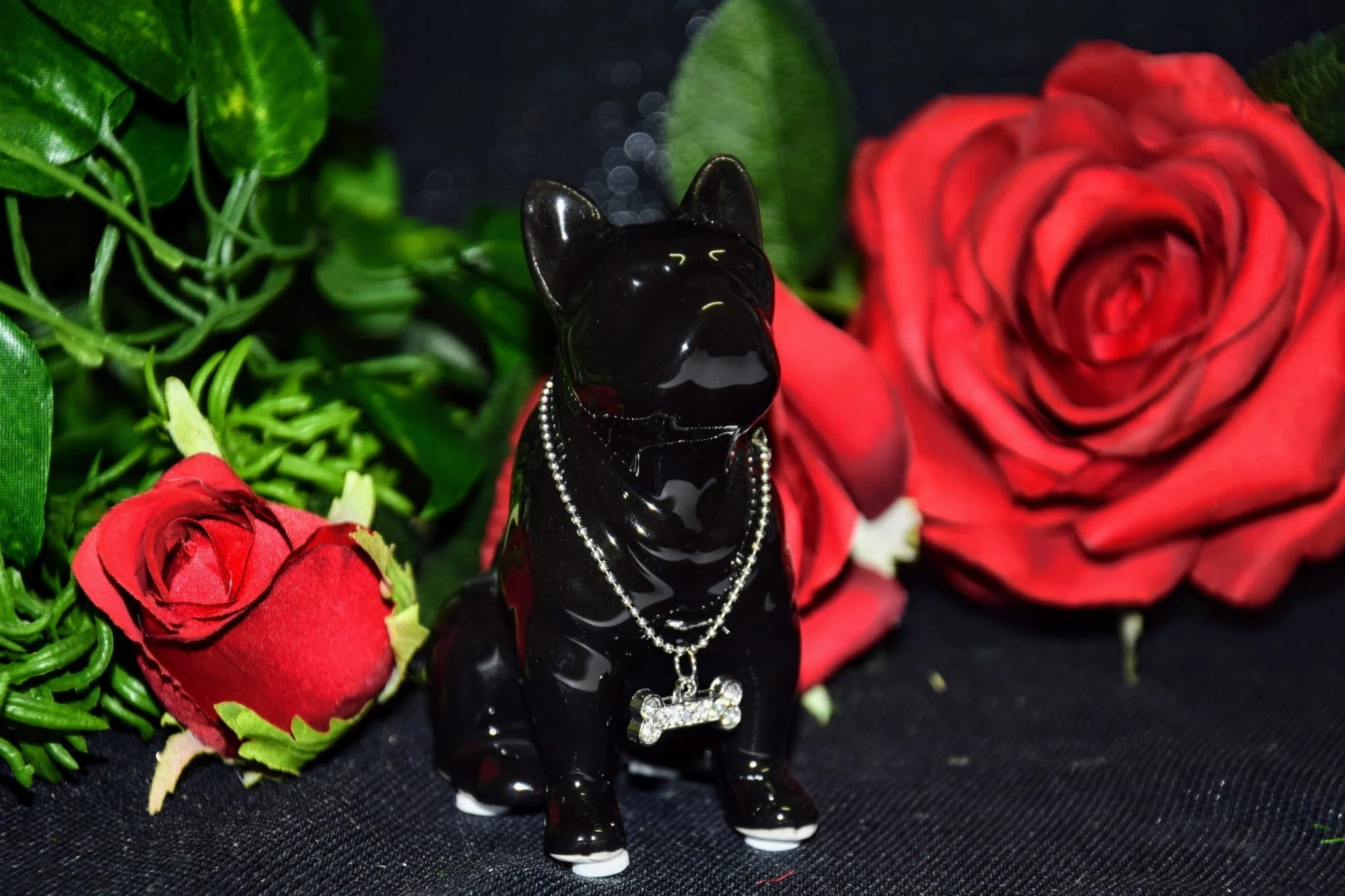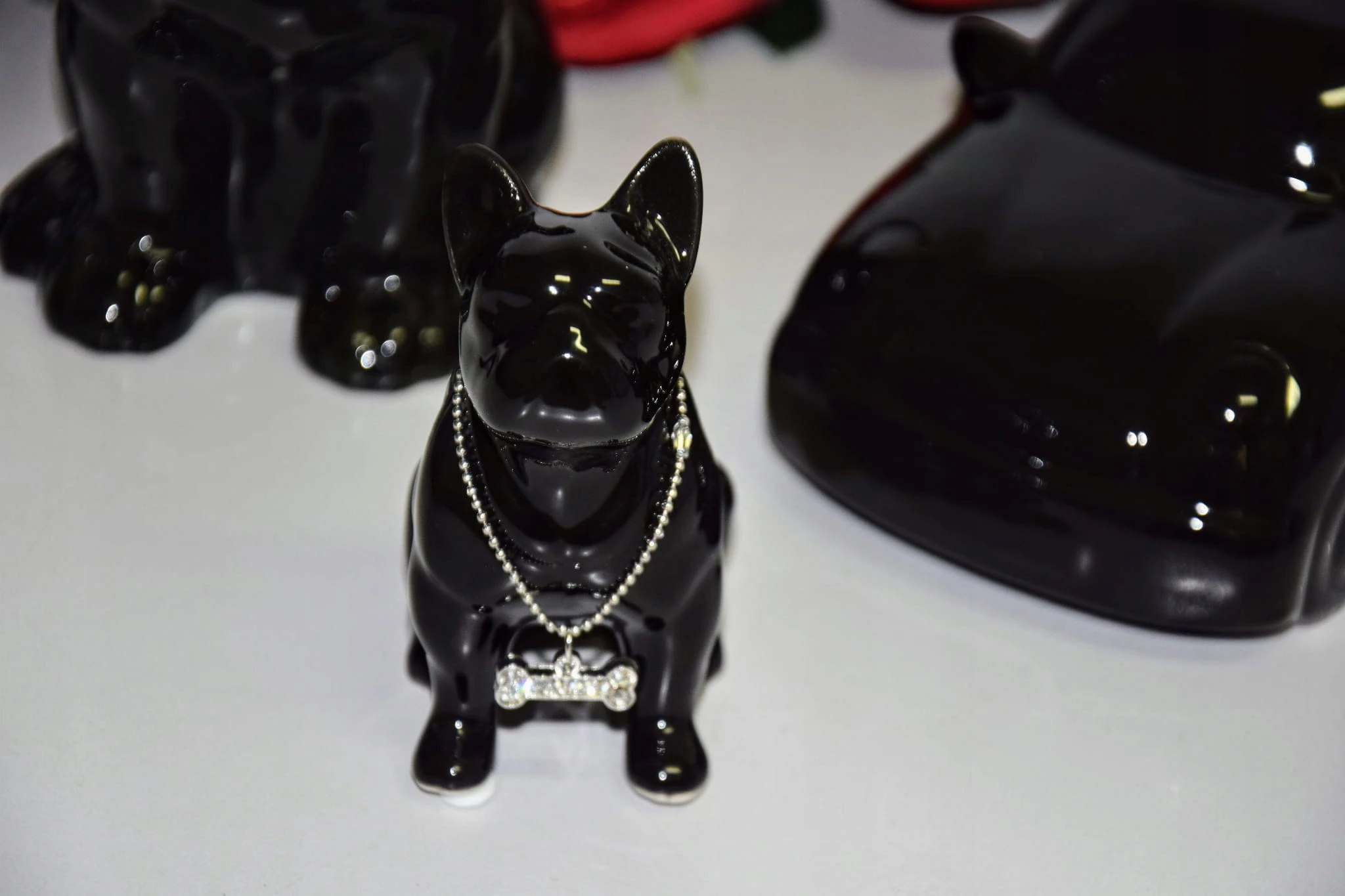 FIGURKA PIES BULDOG CZARNY Z NASZYJNIKIEM