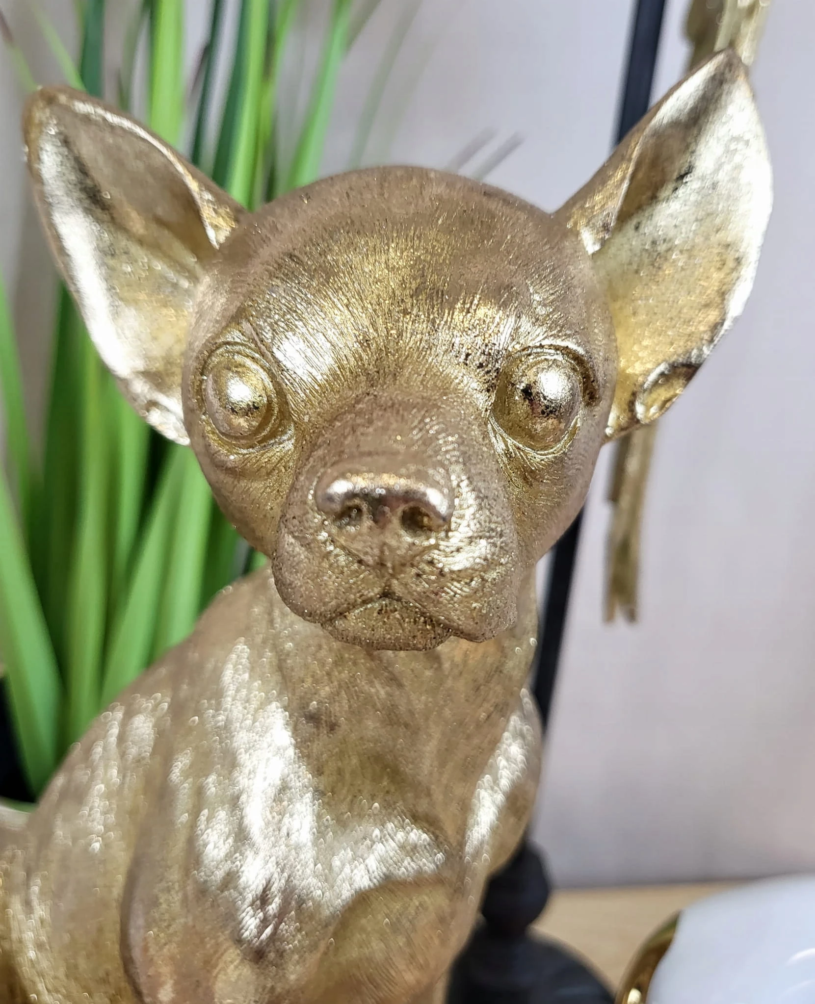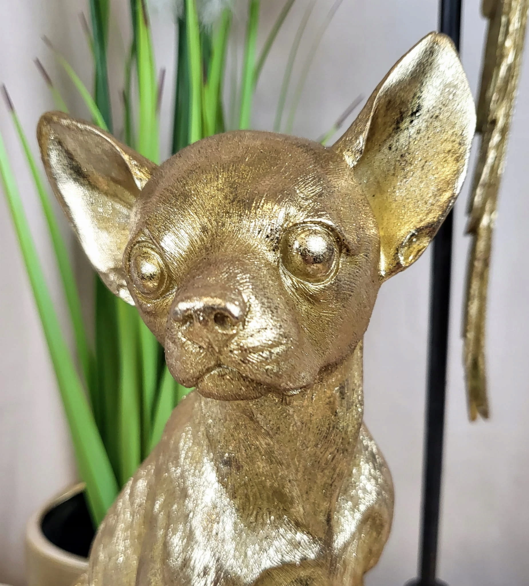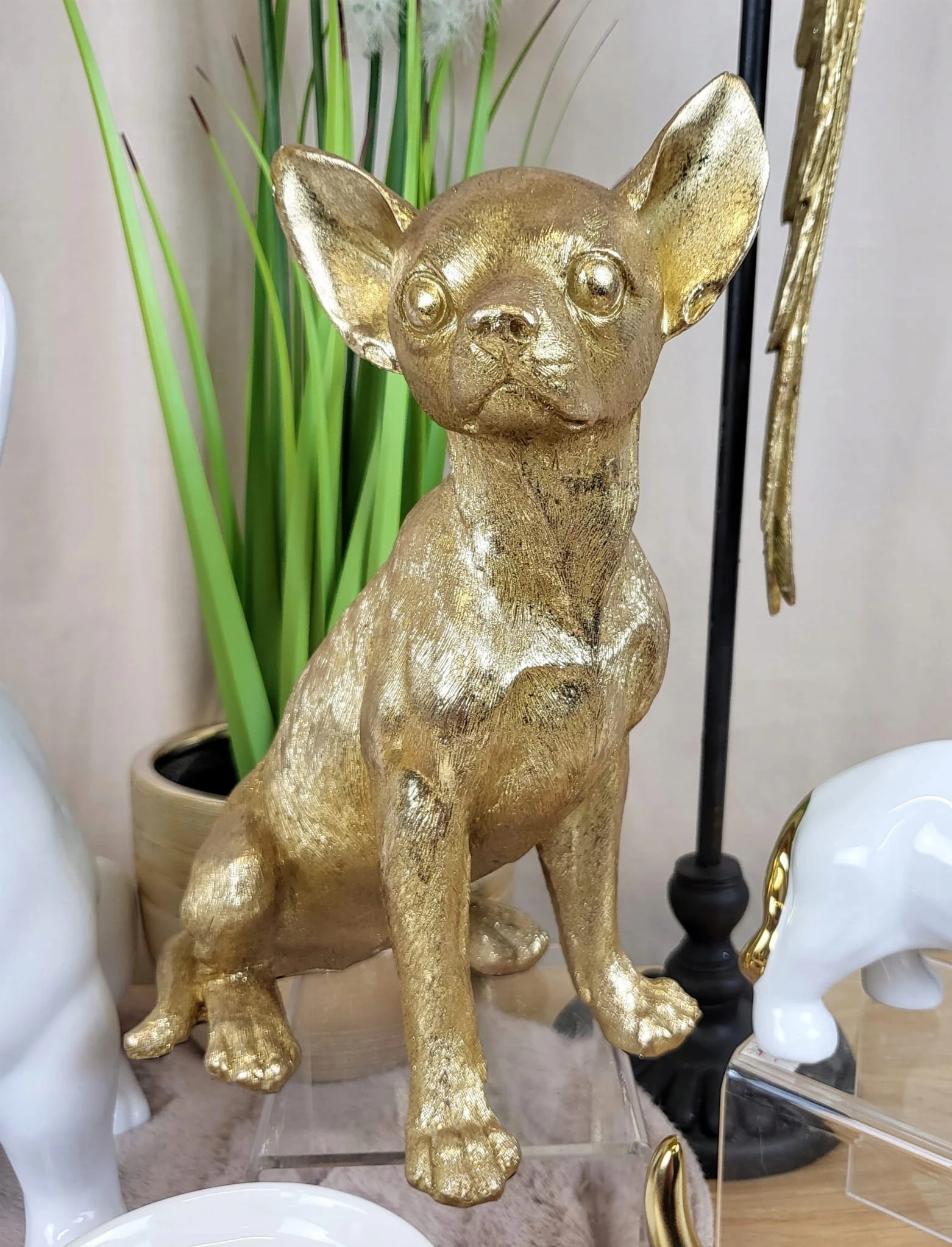 Złota figurka siedzącego pieska chihuahua