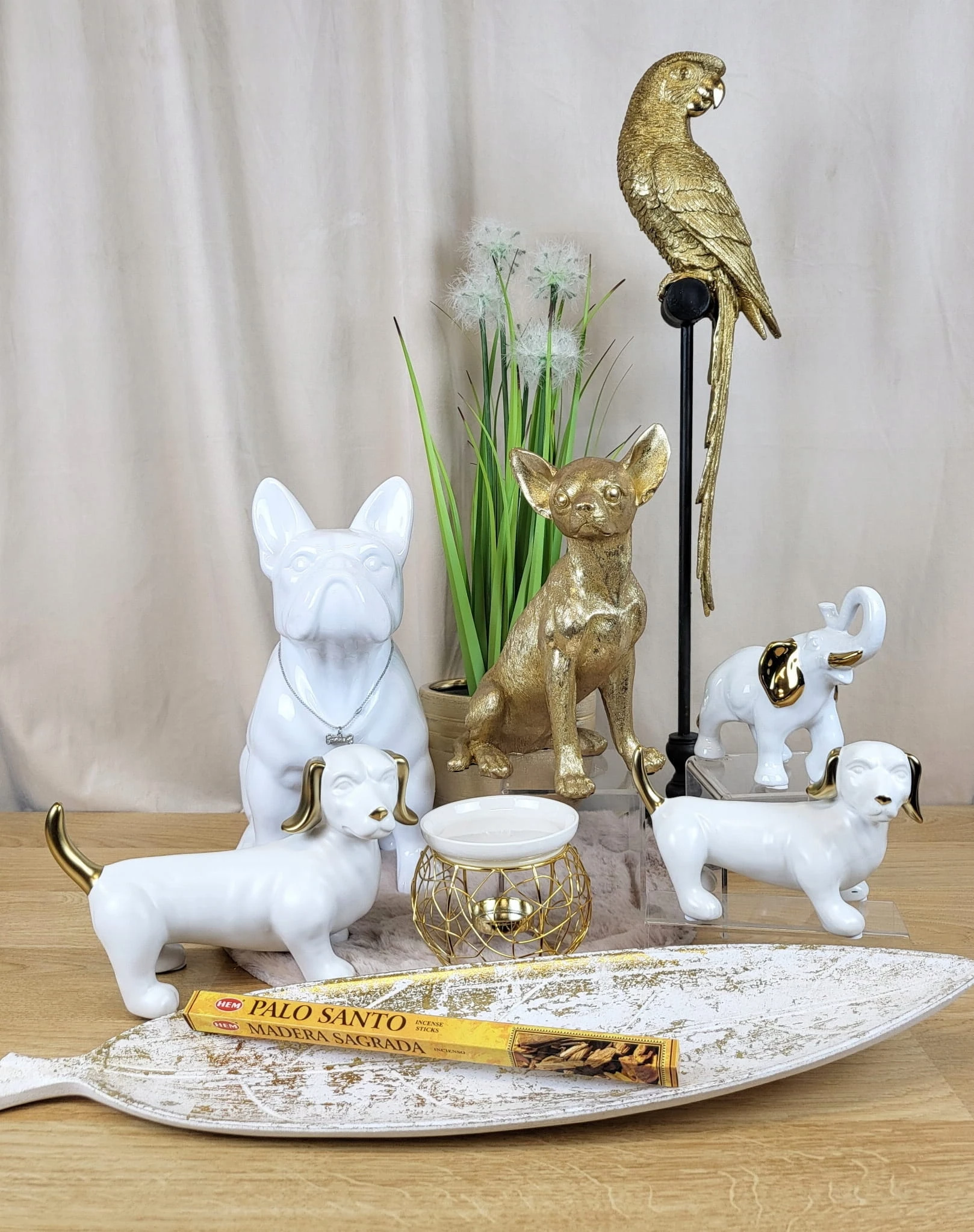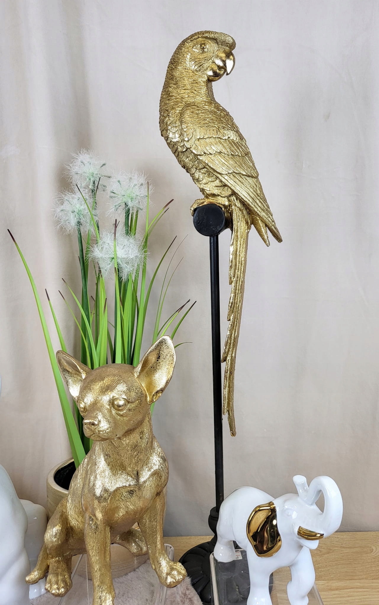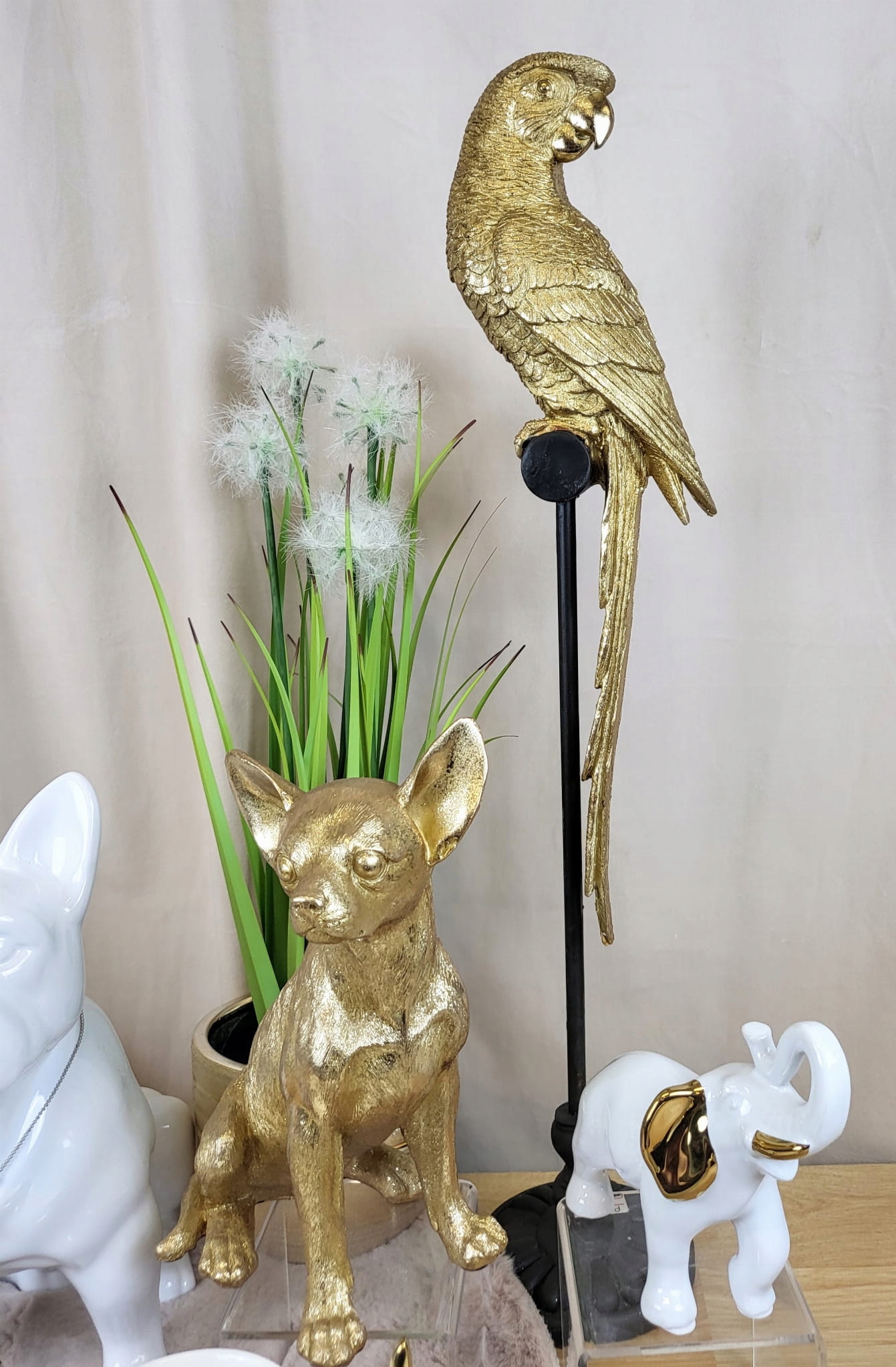 Złota figurka siedzącego pieska chihuahua