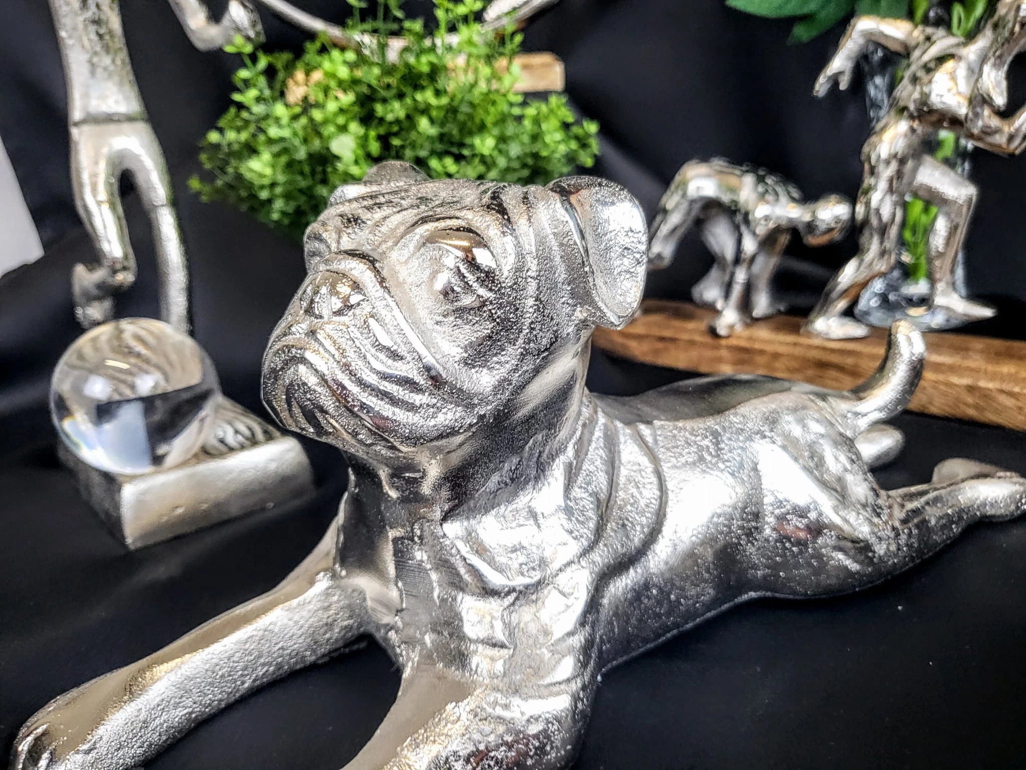 Imponująca figurka z postacią psa do dekoracji wszelkiego rodzaju pomieszczeń: salonu, przedpokoju, gabinetu, salonu piękności.