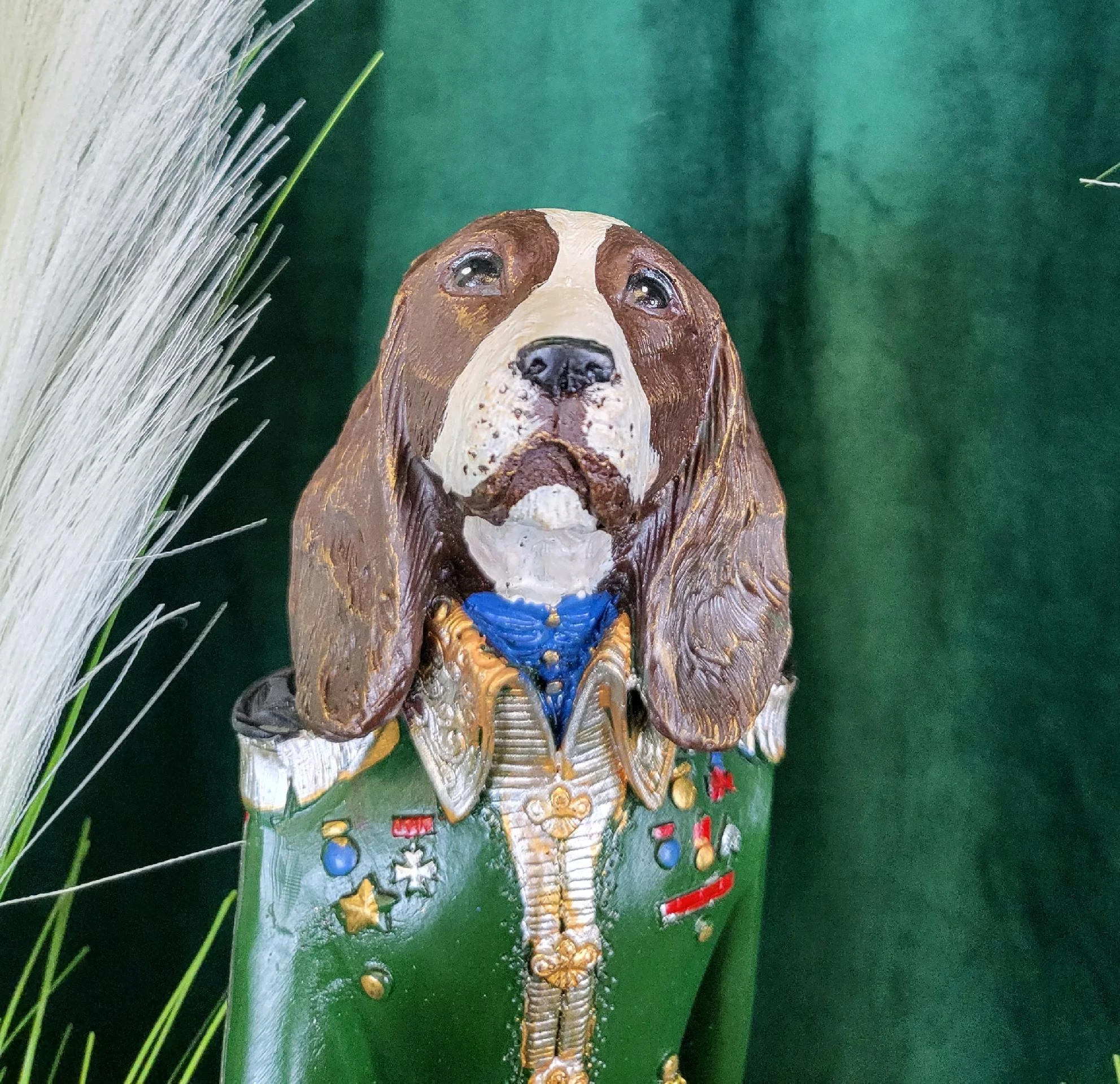 Wielkanocna jak i wiosenna dekoracja rodem z "Alicji w krainie czarów". Dzięki dostojnemu ubiorowi nadaje się idealnie do ekstrawaganckiego wystroju jak i do klasycznych wnętrz.