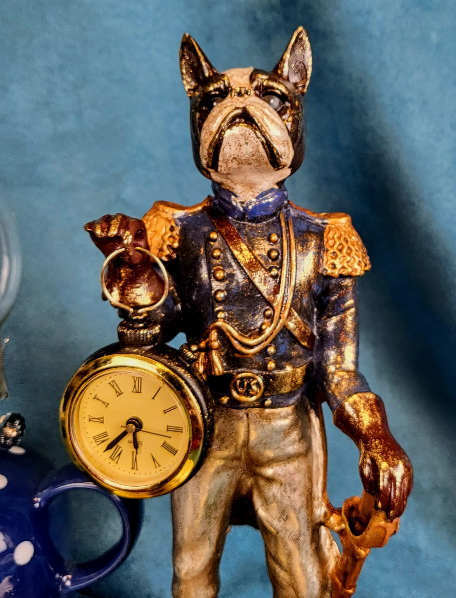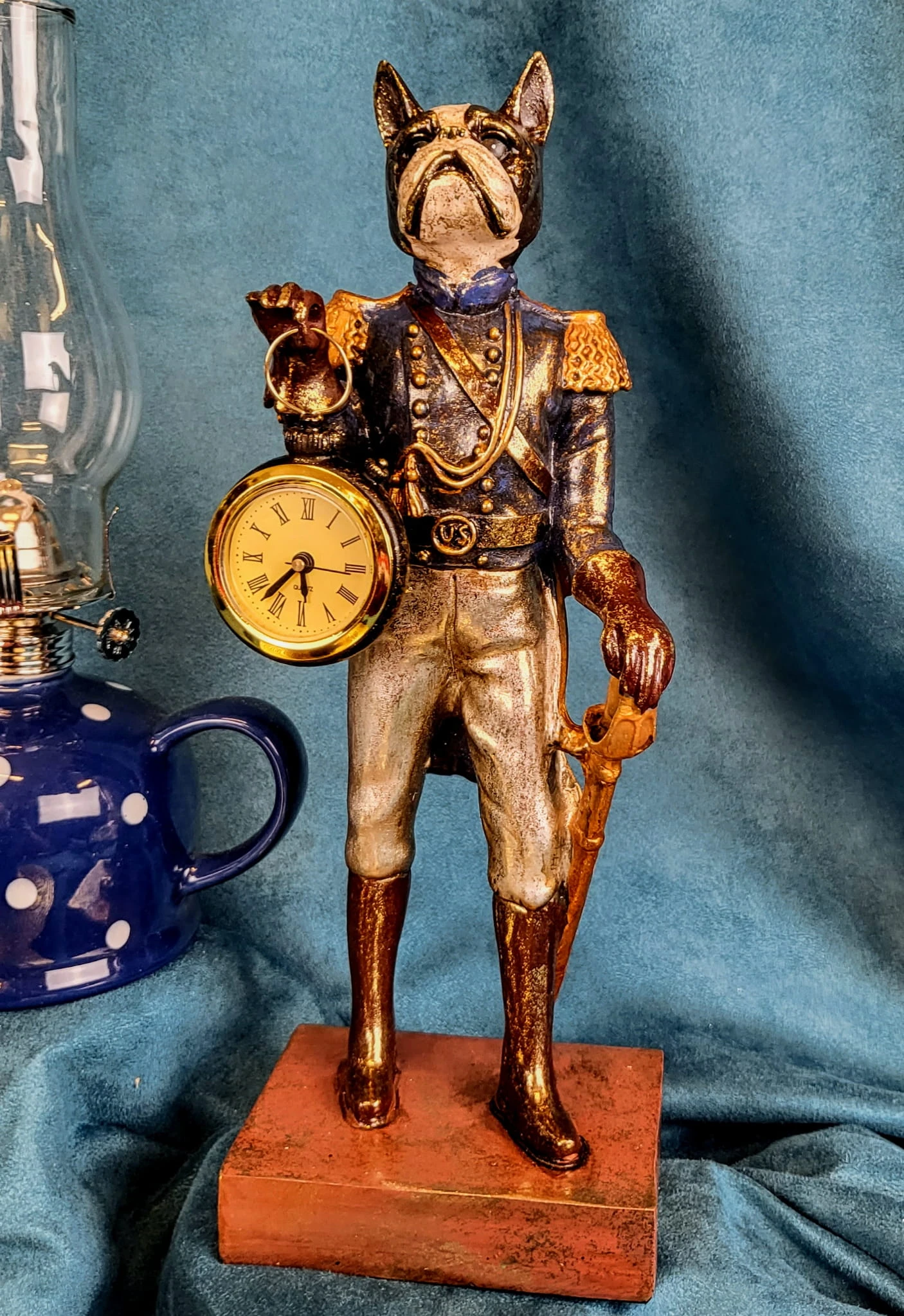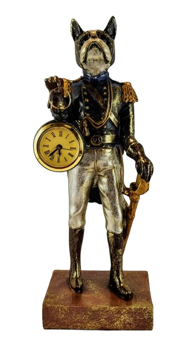 Piękna figurka z wizerunkiem psa trzymającego zegar wykonana z polyresinu. Sprawdzi się jako ozdoba mieszkania w stylu klasycznym, jak i nowoczesnym. Jej niepowtarzalny design sprawi że nikt nie przejdzie obok niej obojętnie.
