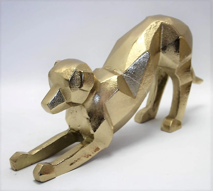FIGURKA PIES ZŁOTY GEOMETRYCZNY METAL 14,5X30CM