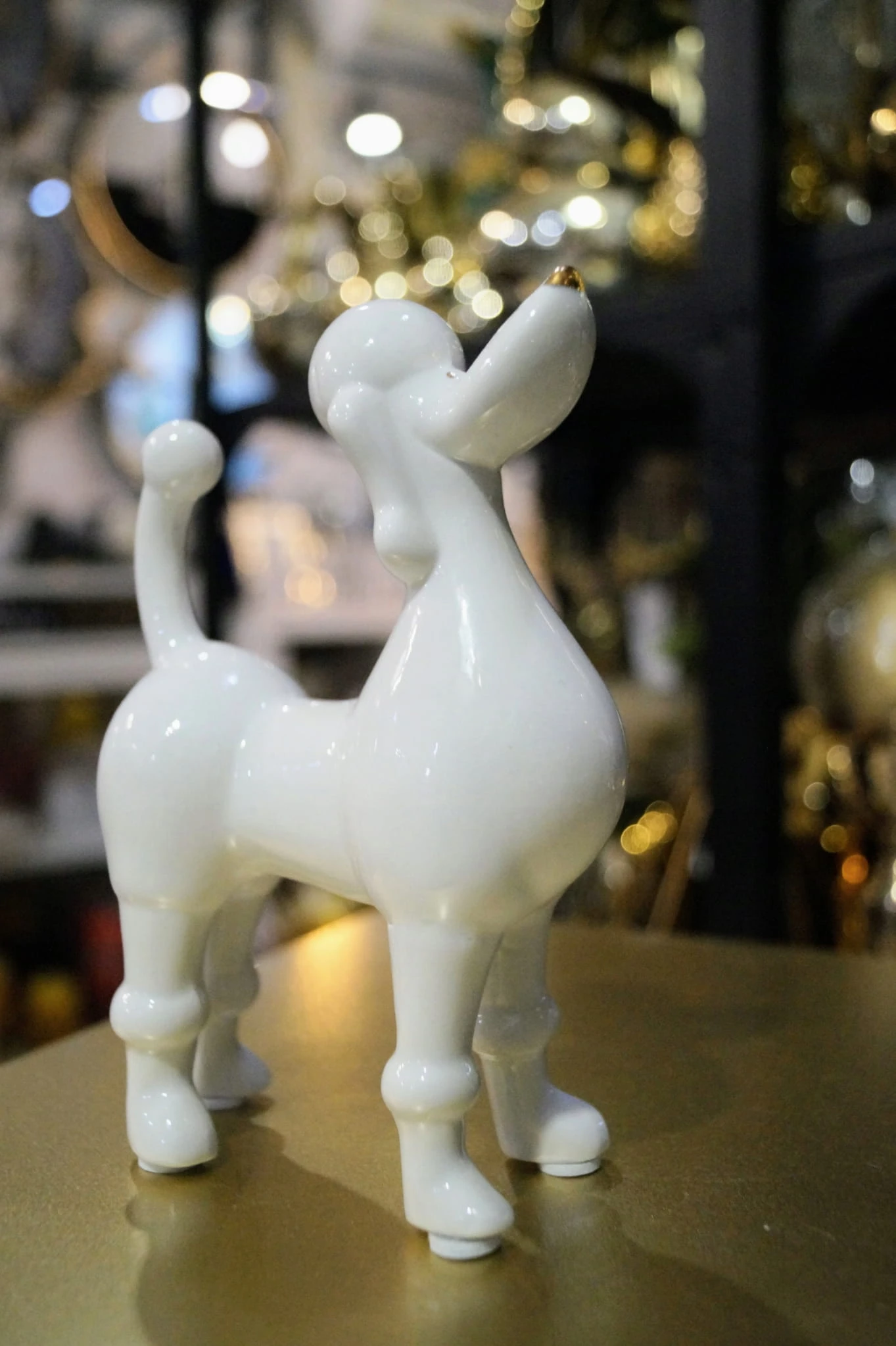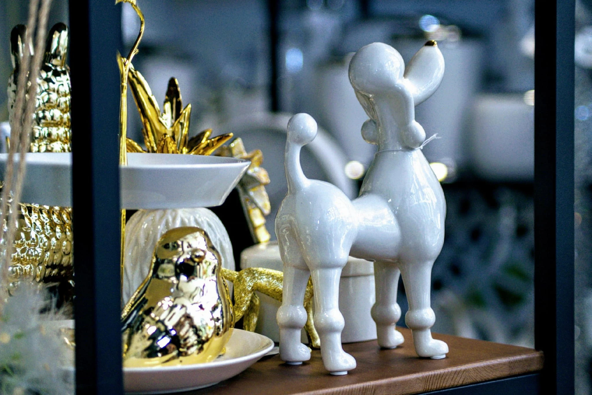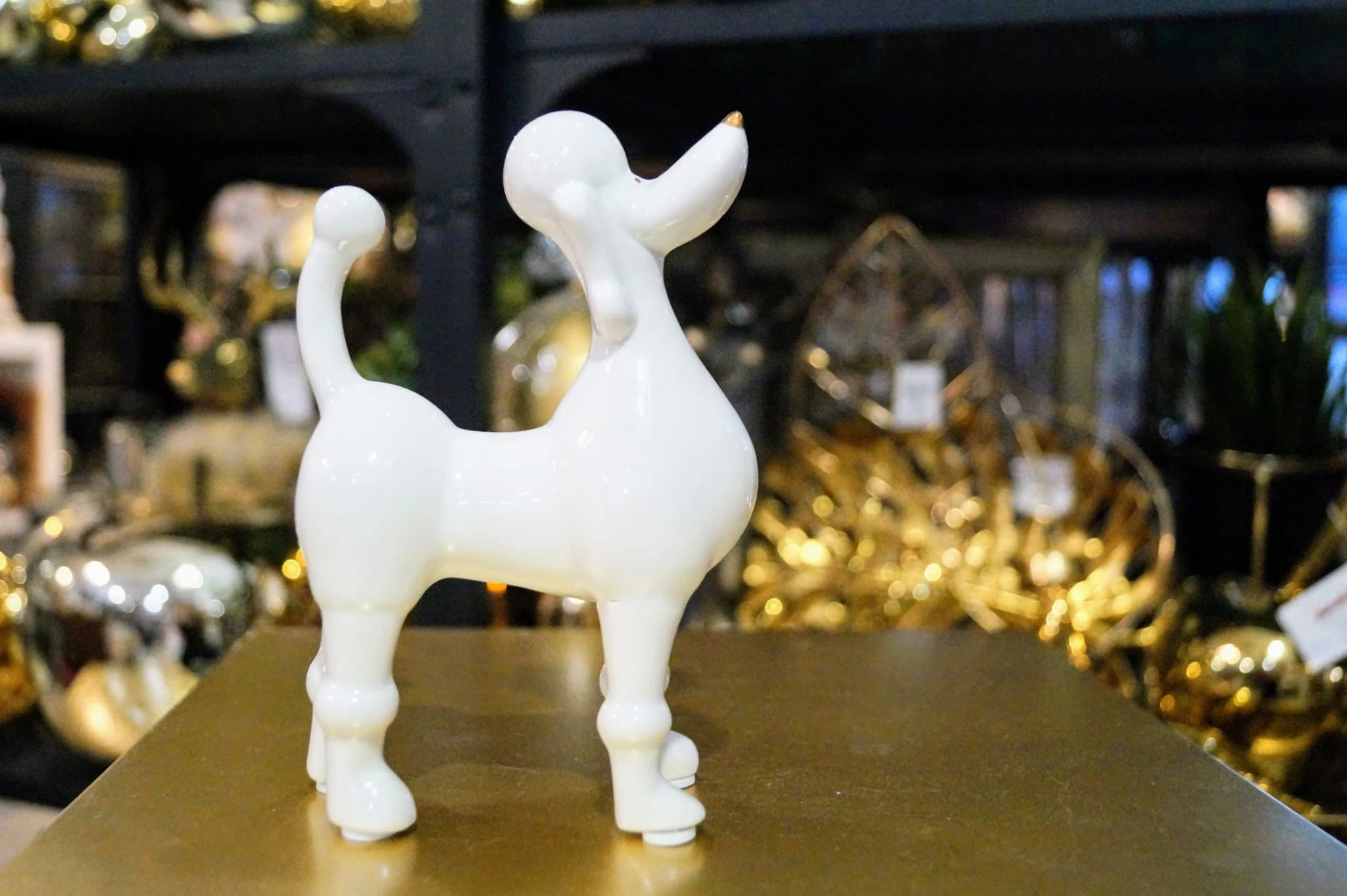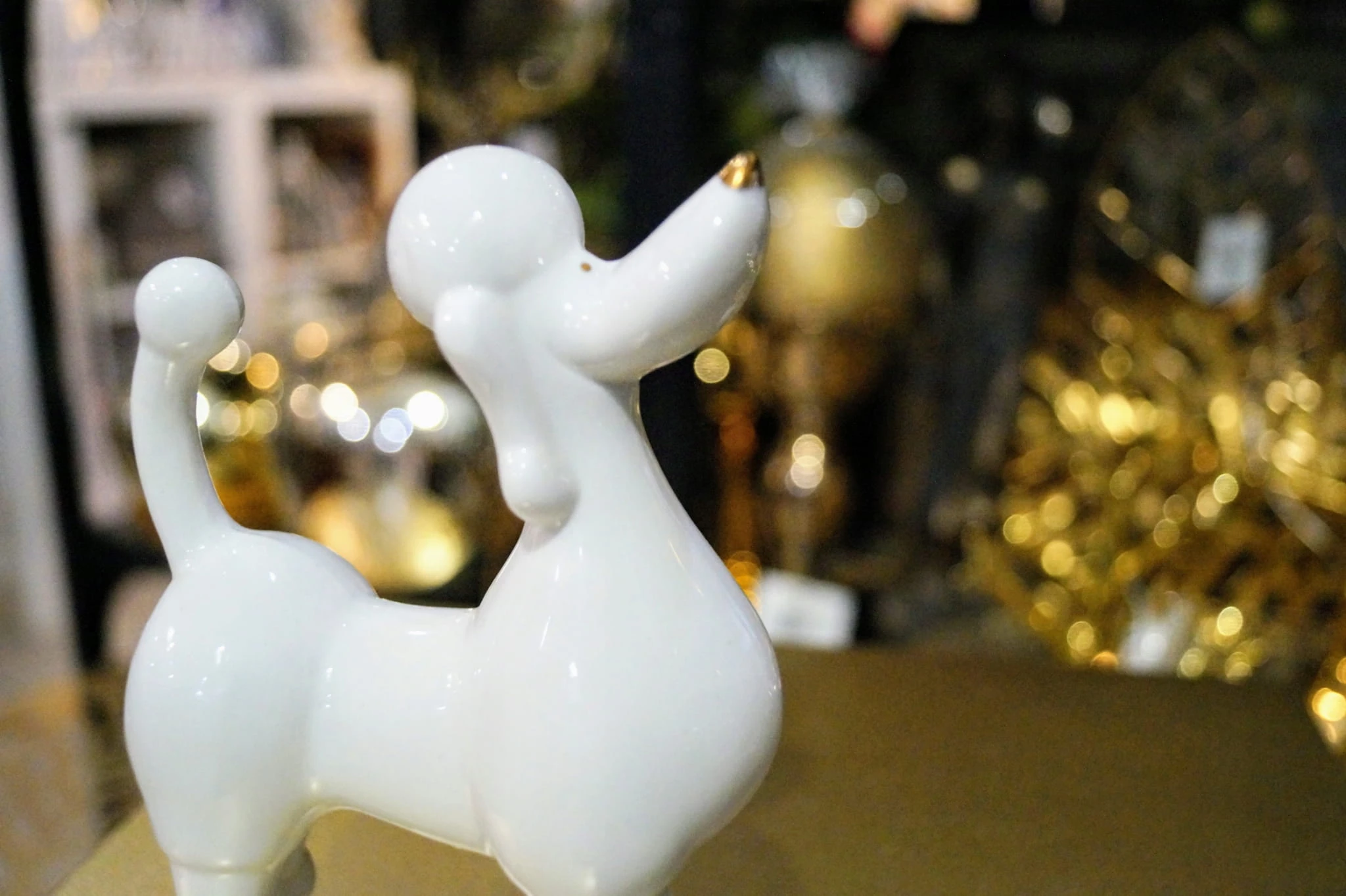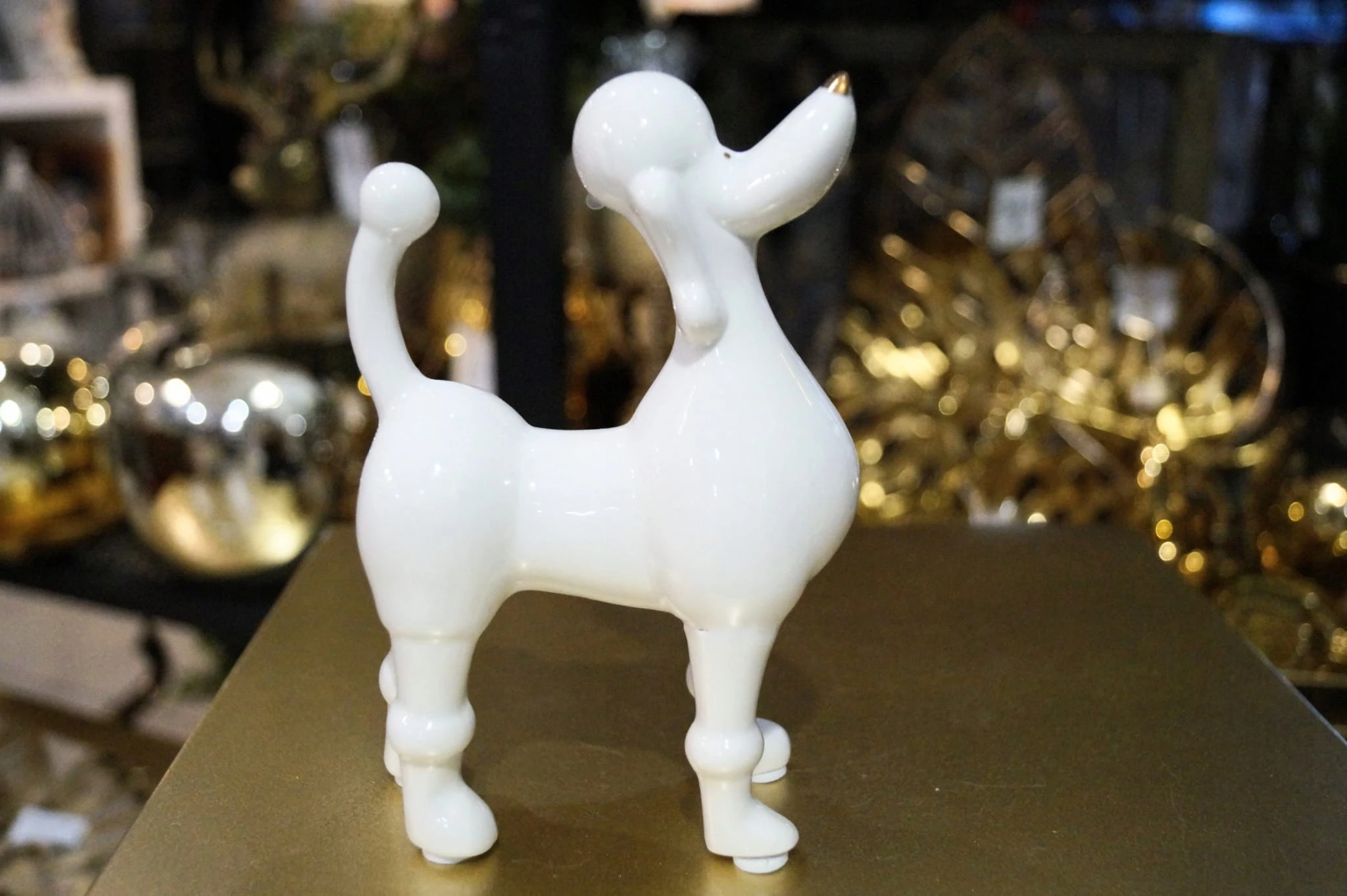 Figurka pies, to idealny przedmiot dla miłośników czworonożnych przyjaciół. Biały kolor wpasuje się w każdą aranżacje wnętrz, a złote wykończenie dodaje elegancji.