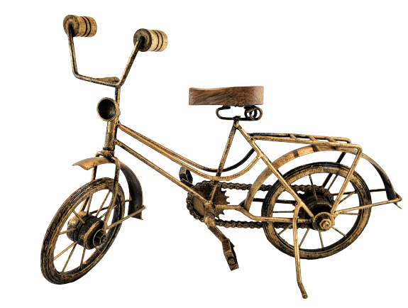 Model przedstawia rower miejski. Kierownica i przednie koło są ruchome. Figurka Rower retro wykonana jest z metalu. Rączki i siodełko są drewniane. Celowo postarzana figurka świetnie się sprawdzi jako element dekoracyjny pomieszczeń w stylu klasycznym i nowoczesnym.
