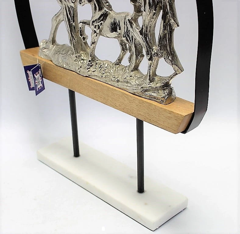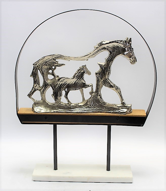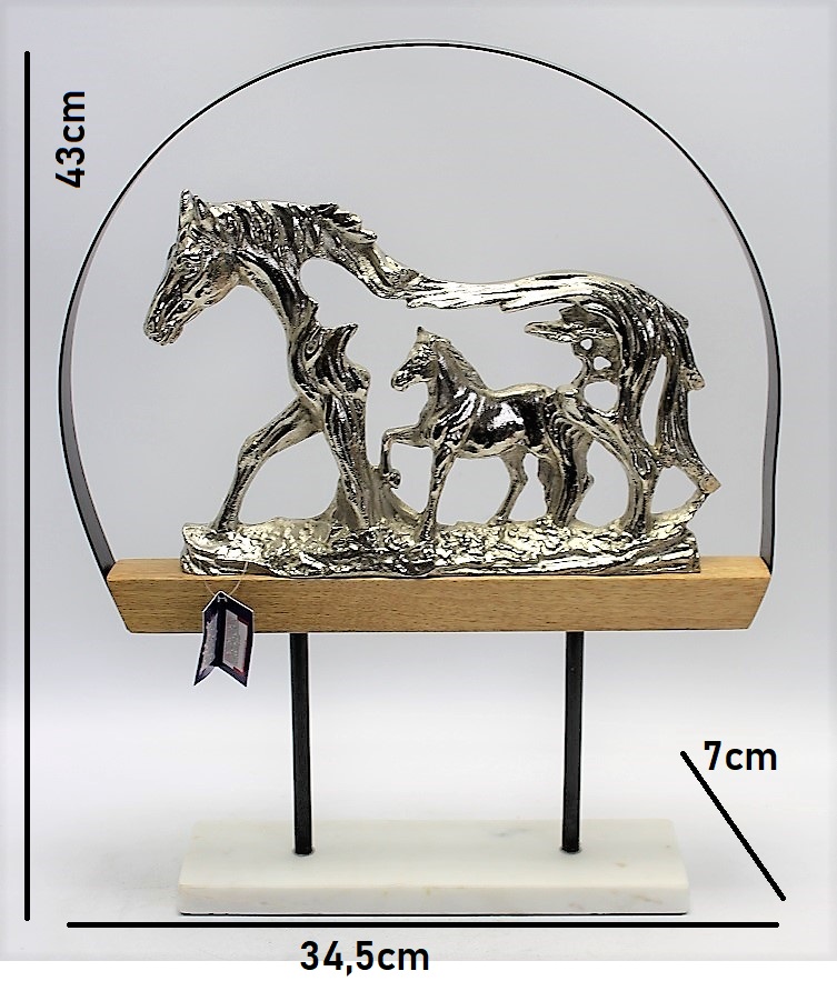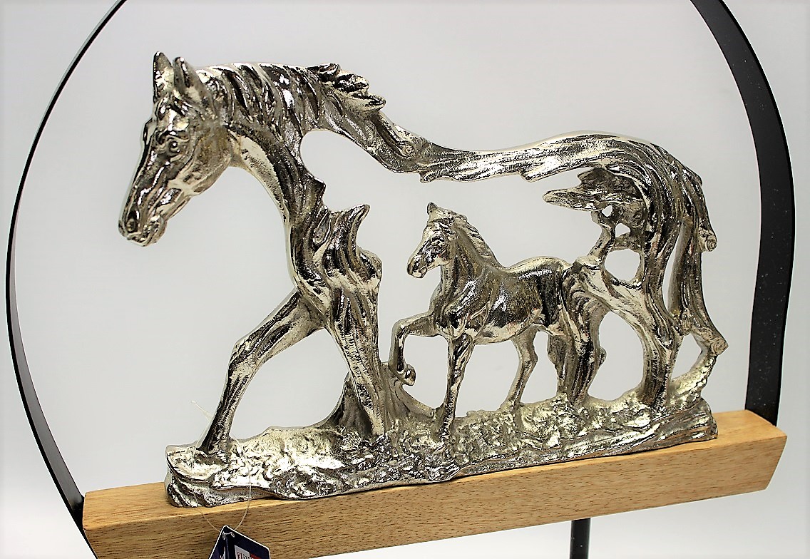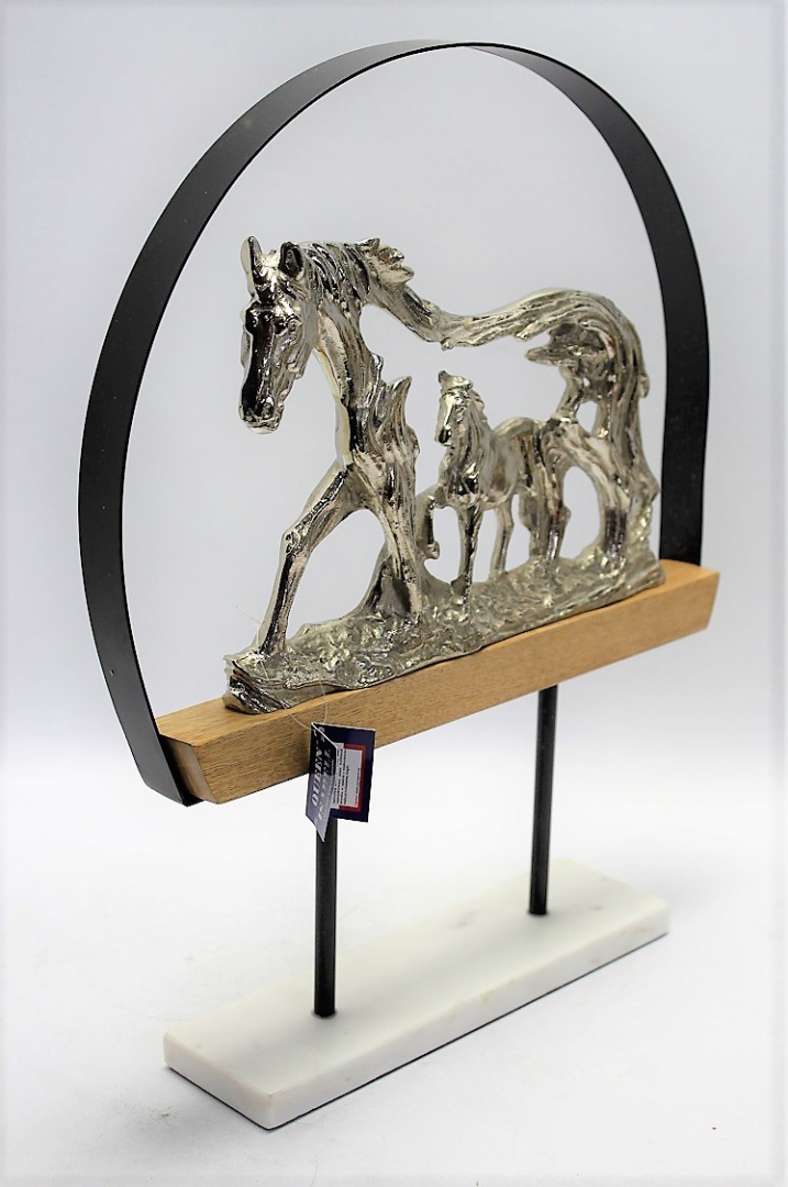 FIGURKA RZEŹBA KONIE METAL+DREWNO 43X34,5X7