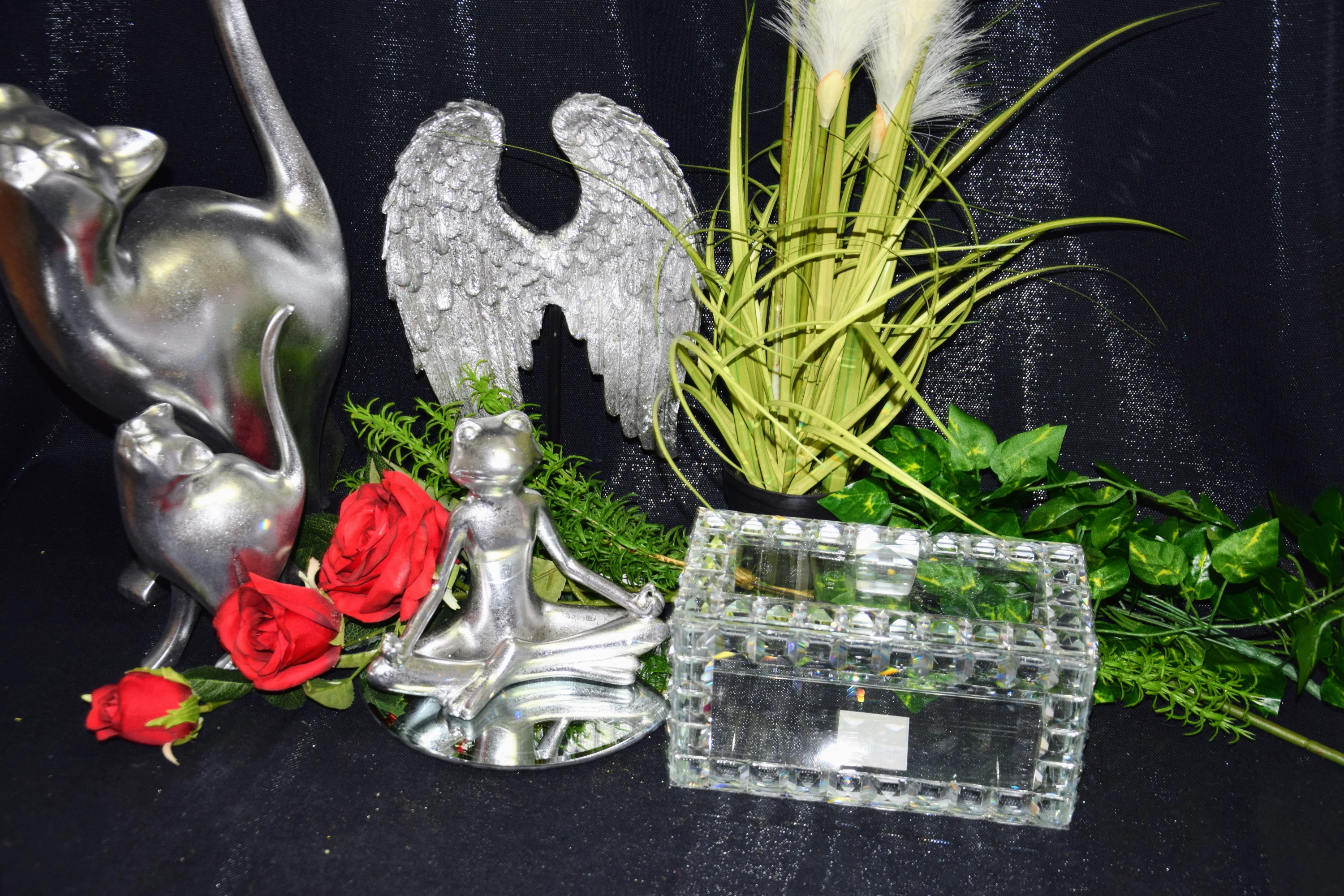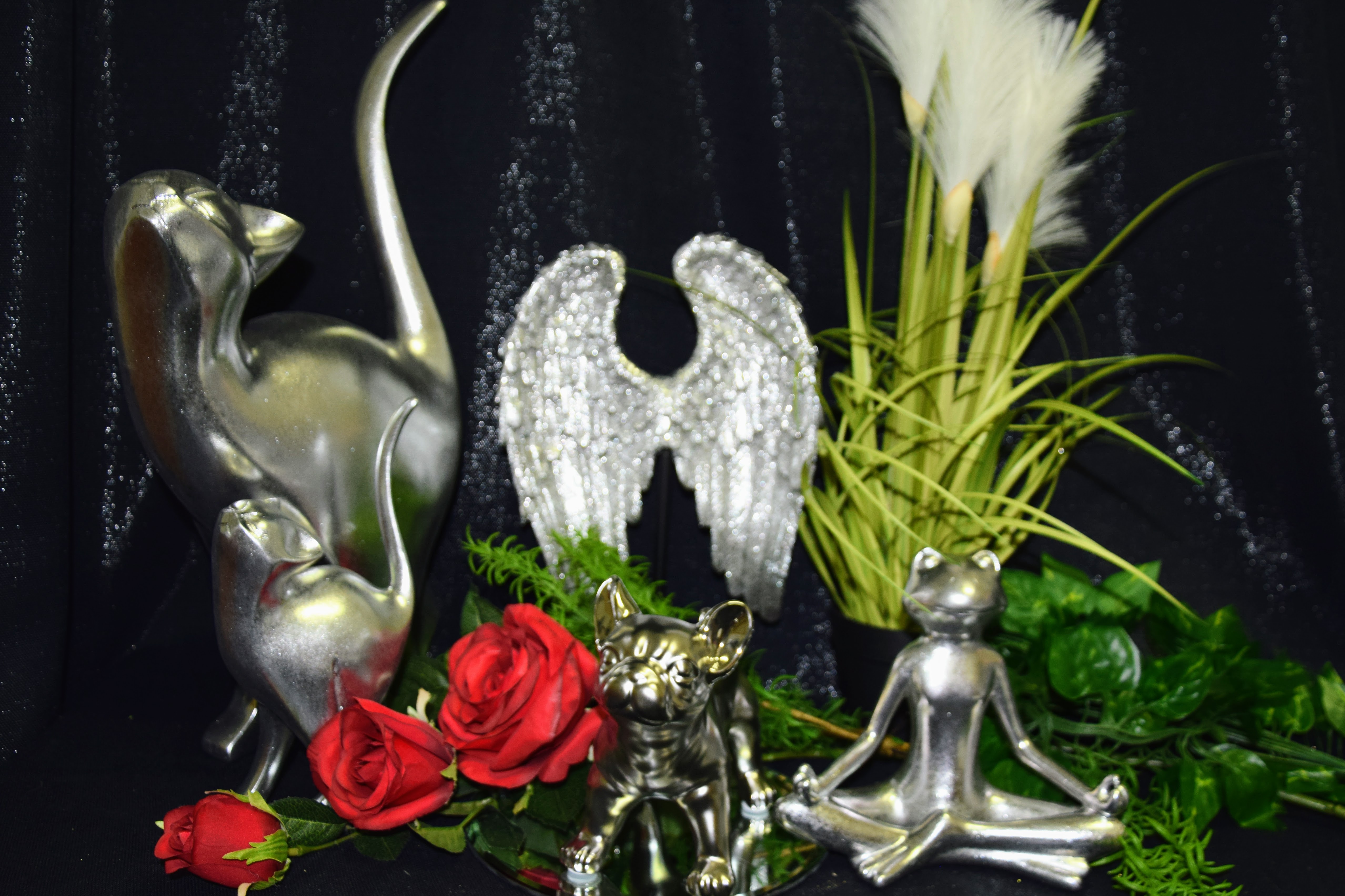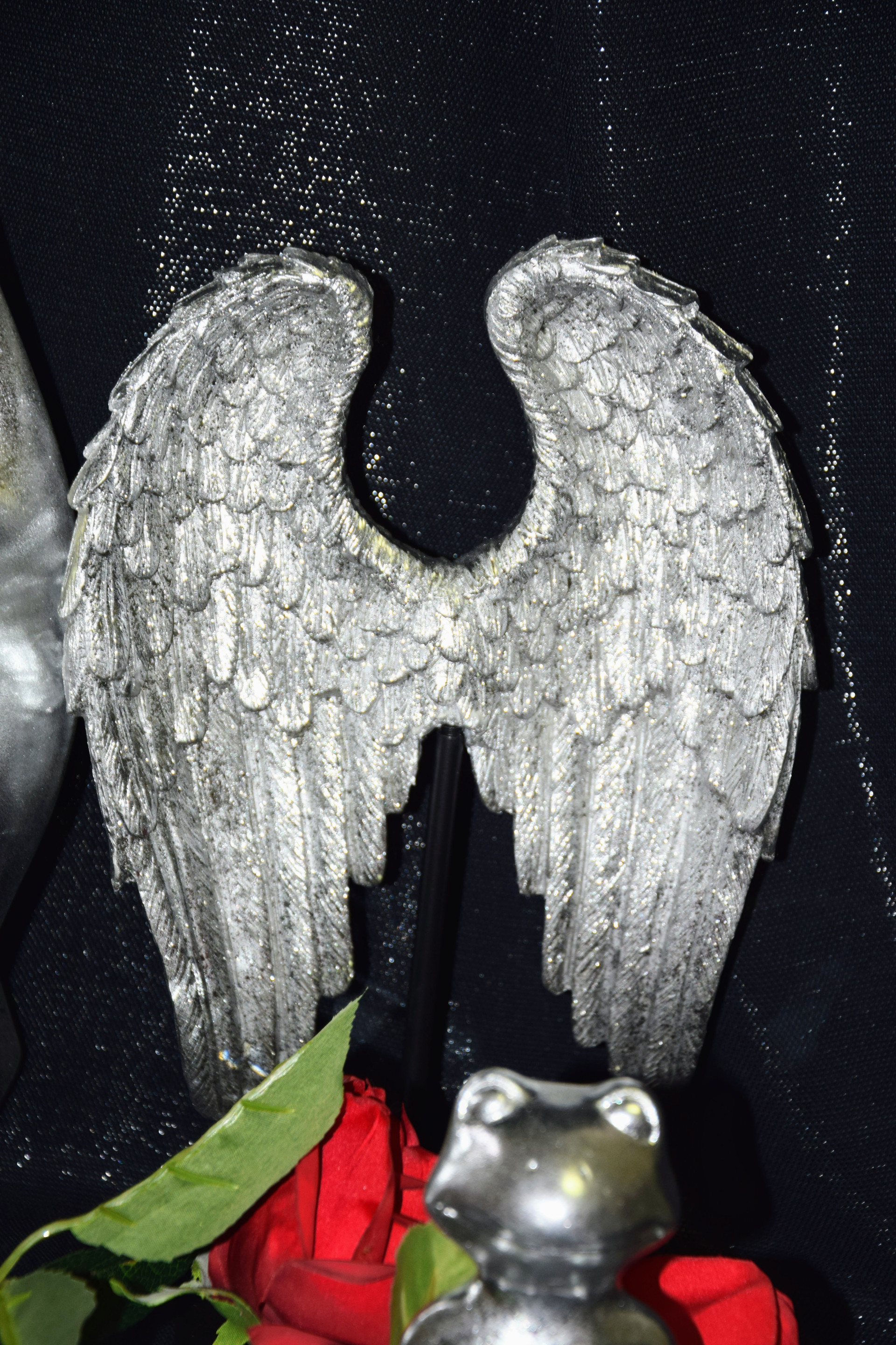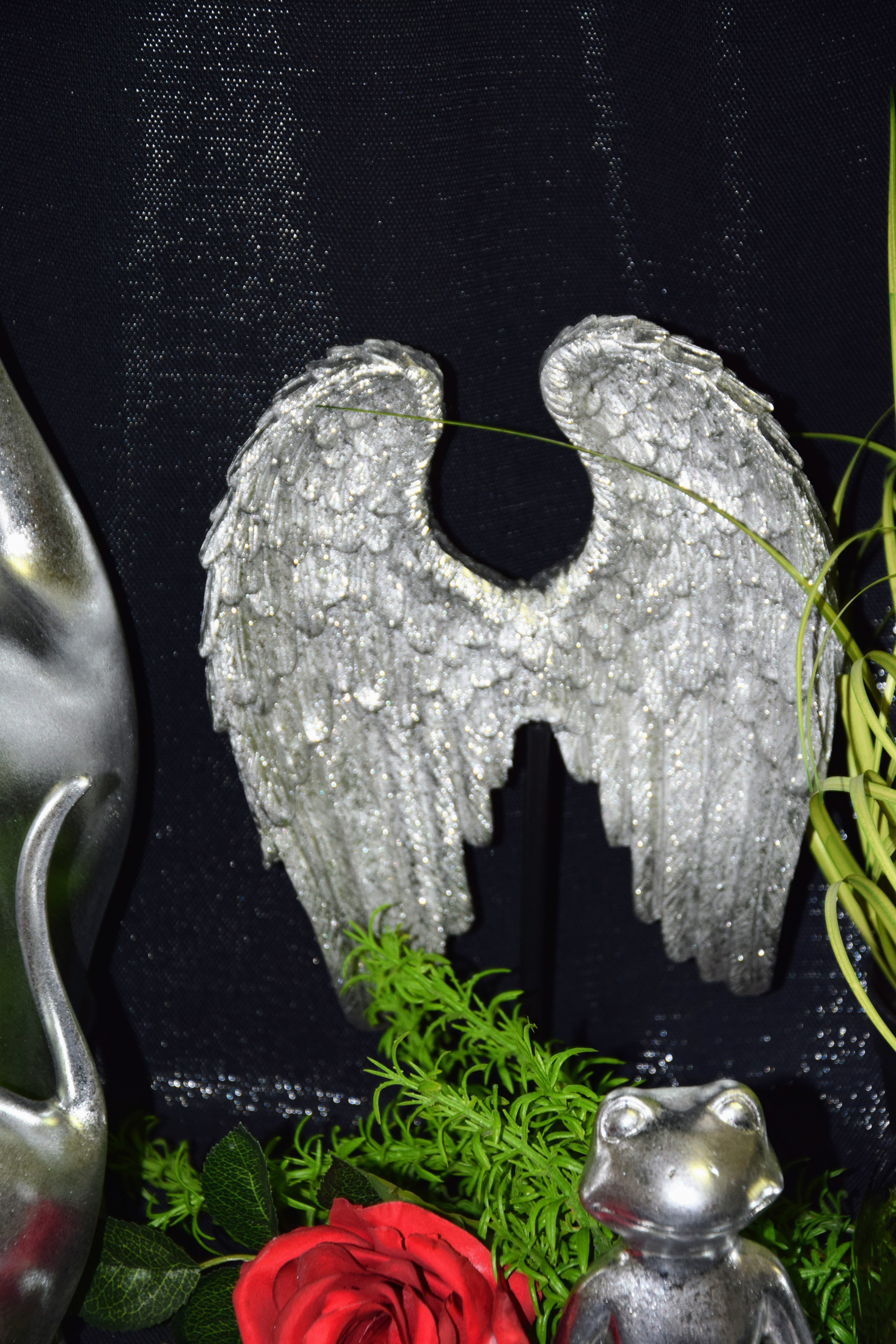 FIGURKA SKRZYDŁA SREBRNE NA PODSTAWIE 21X8X31CM