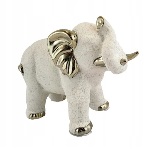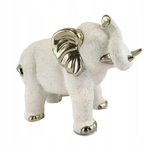 Piękna ceramiczna biało-złota, lekko nakrapiana figurka słonia.