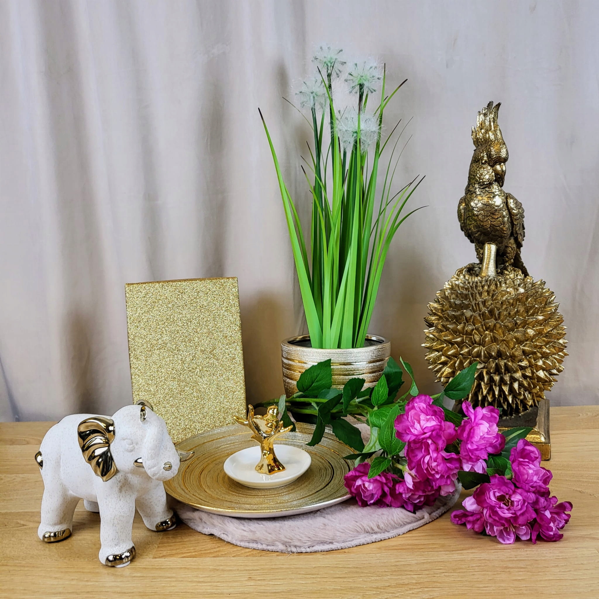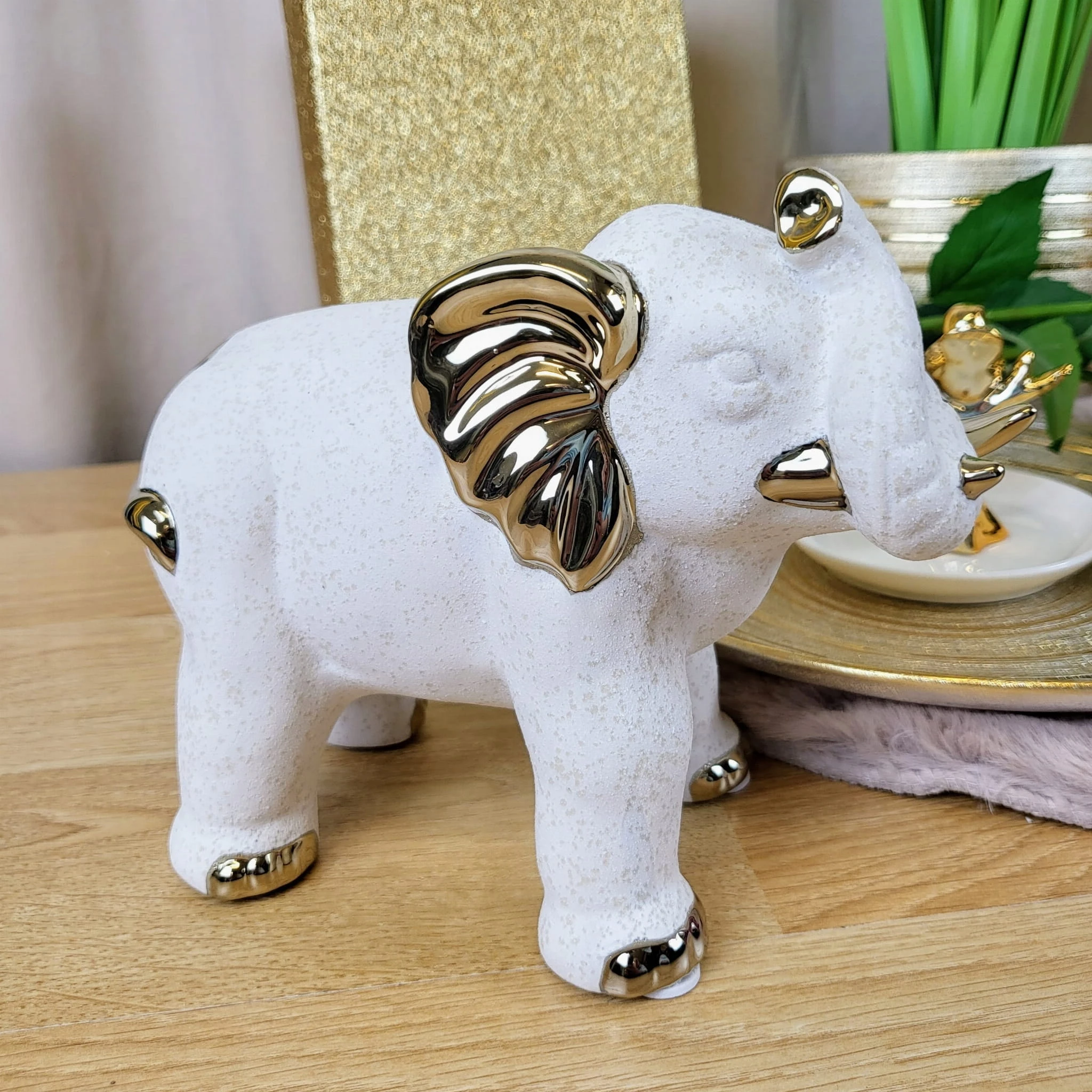 FIGURKA SŁOŃ BIAŁY ZE ZŁOTEM