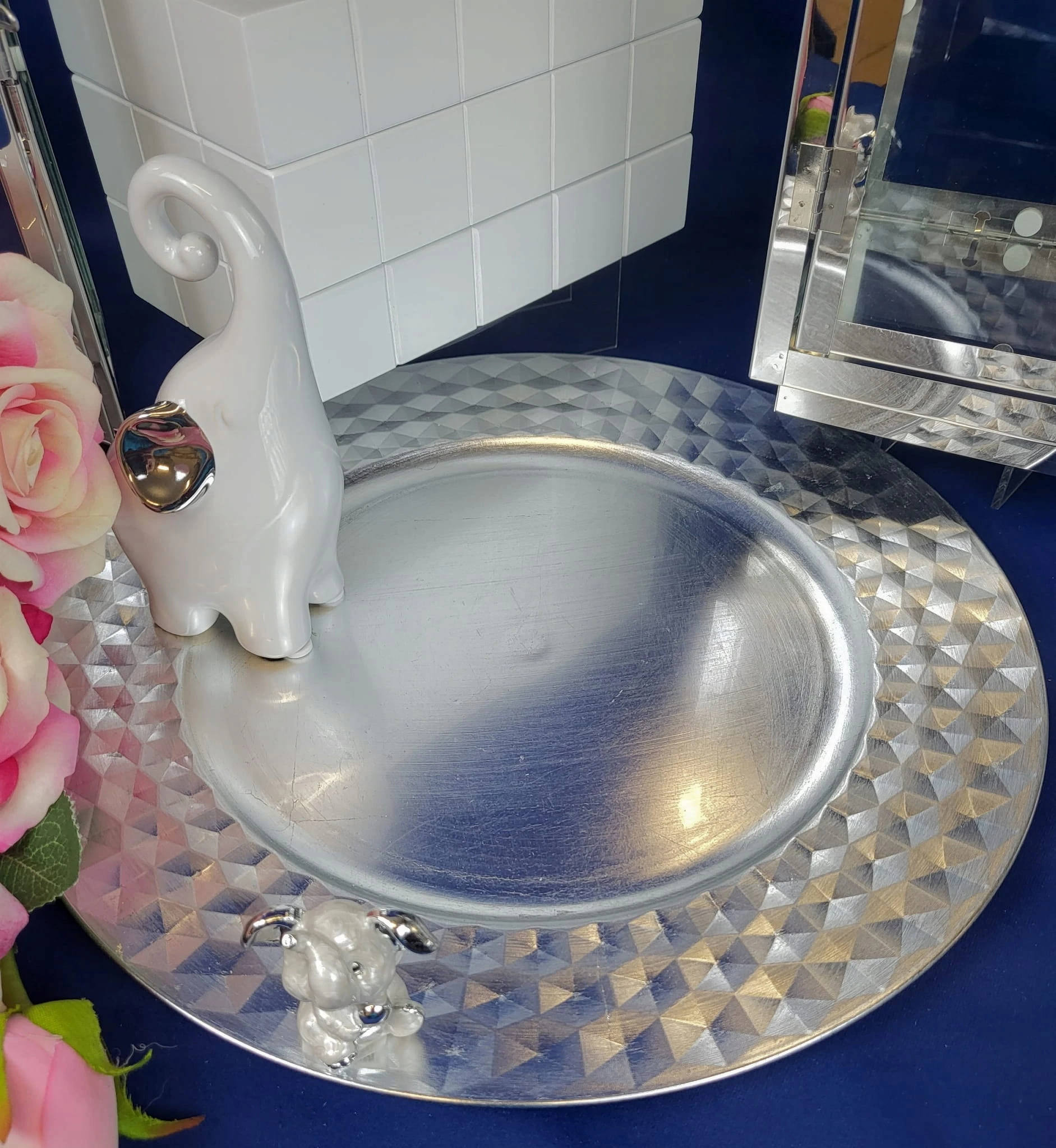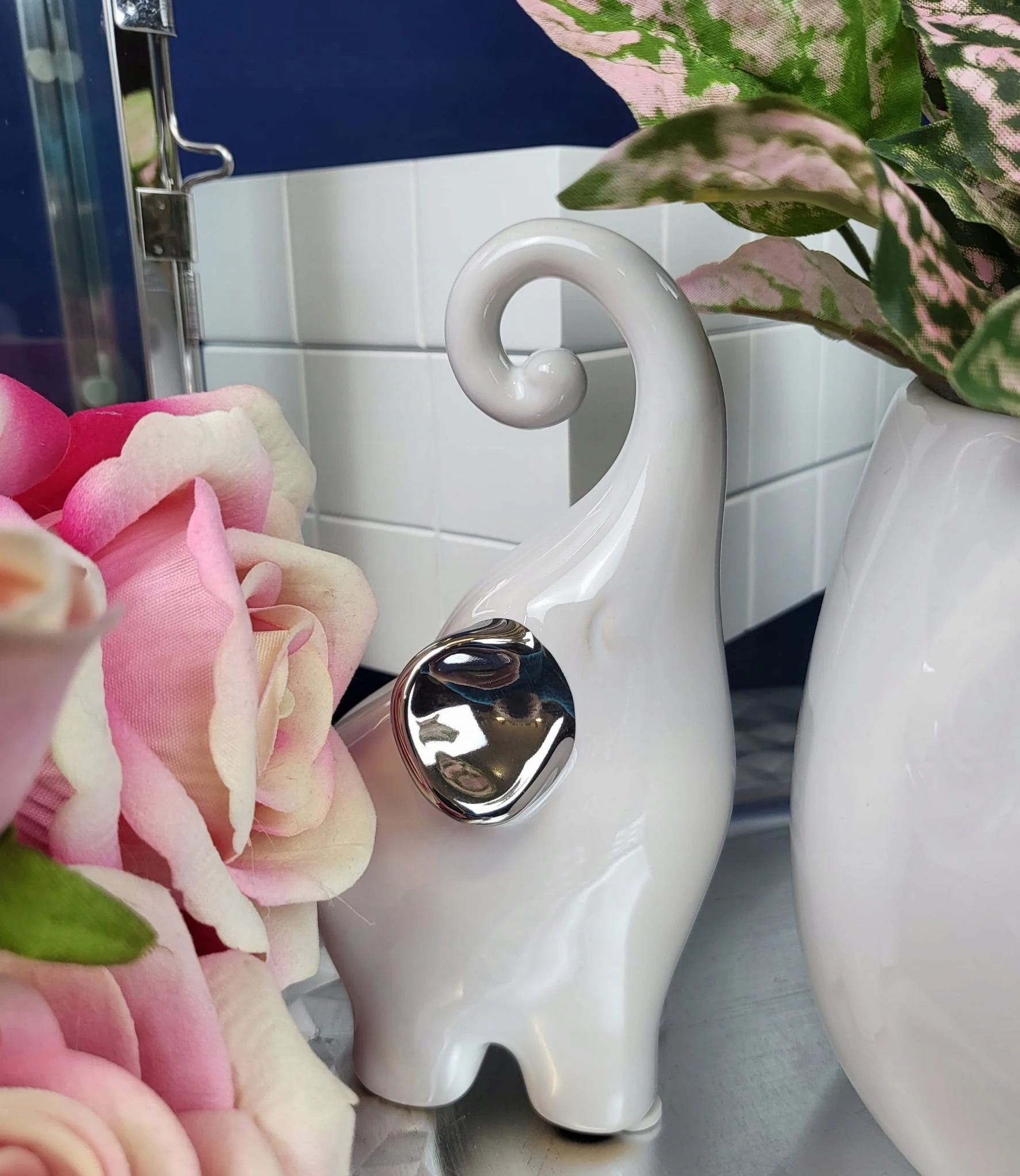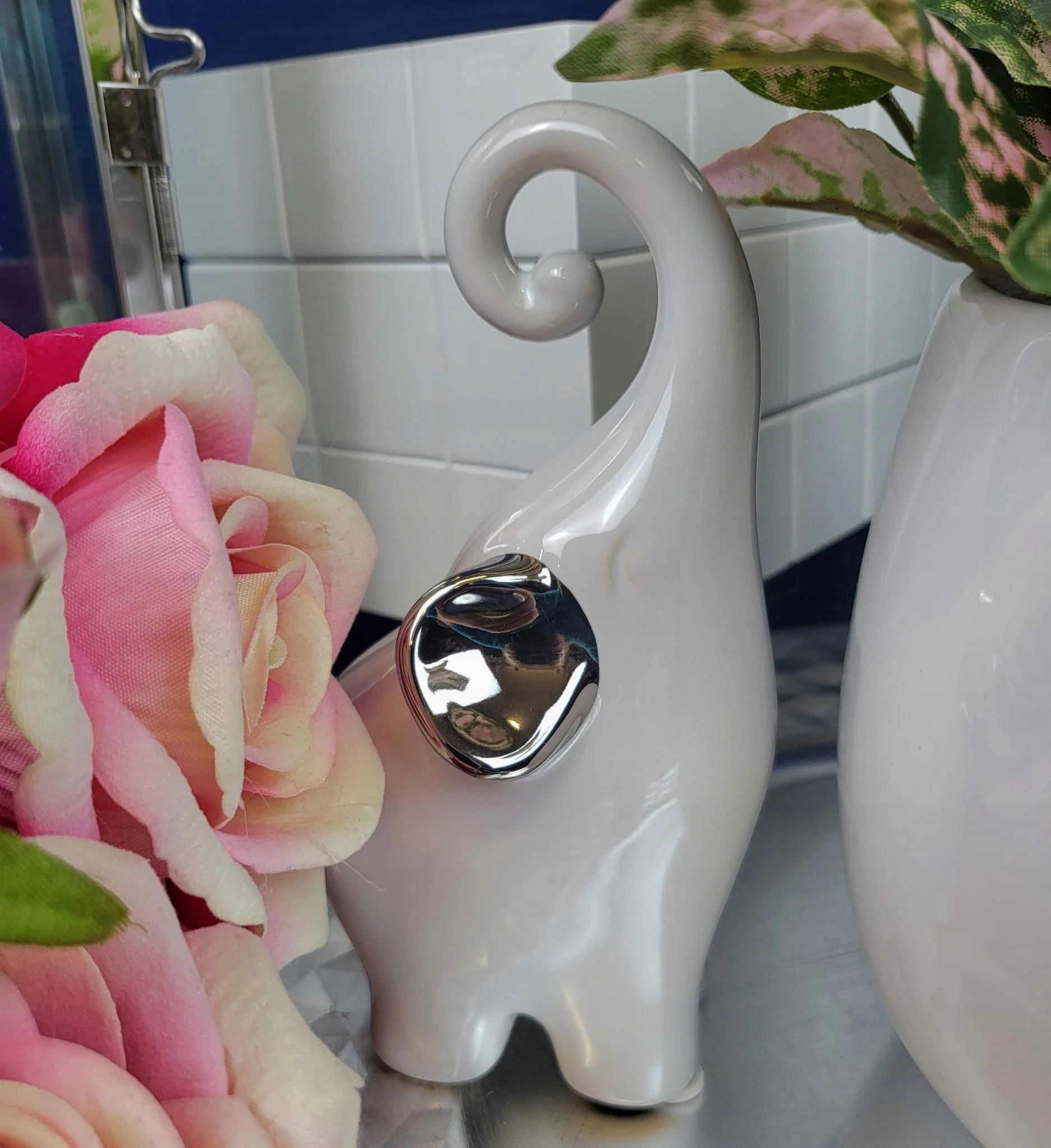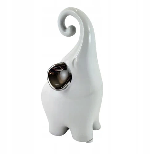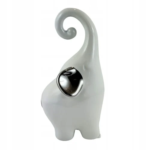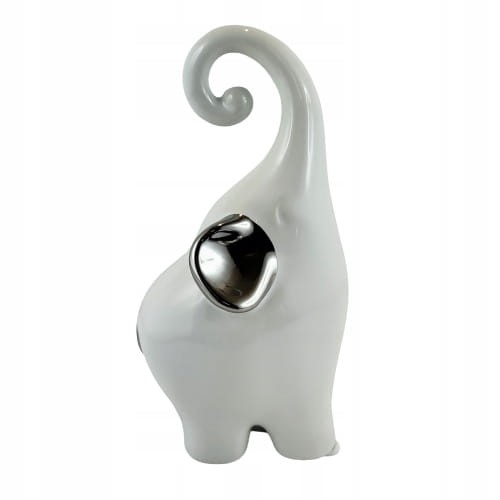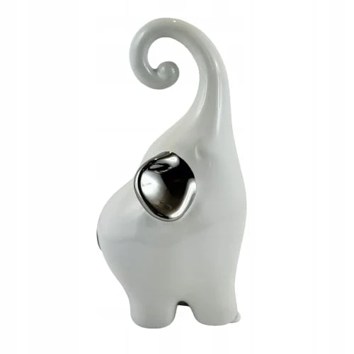 Piękna ceramiczna biało-srebrna figurka słonika.